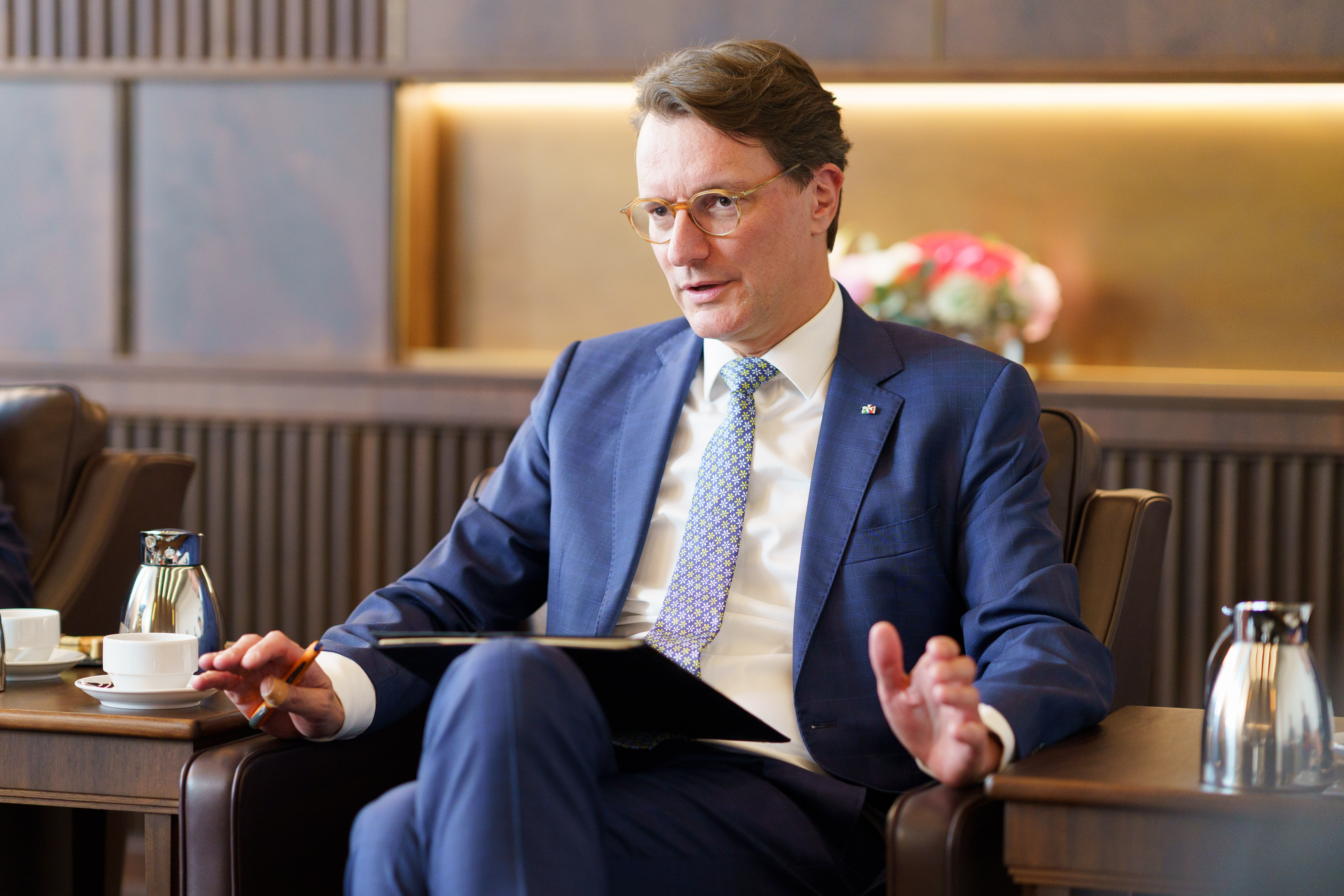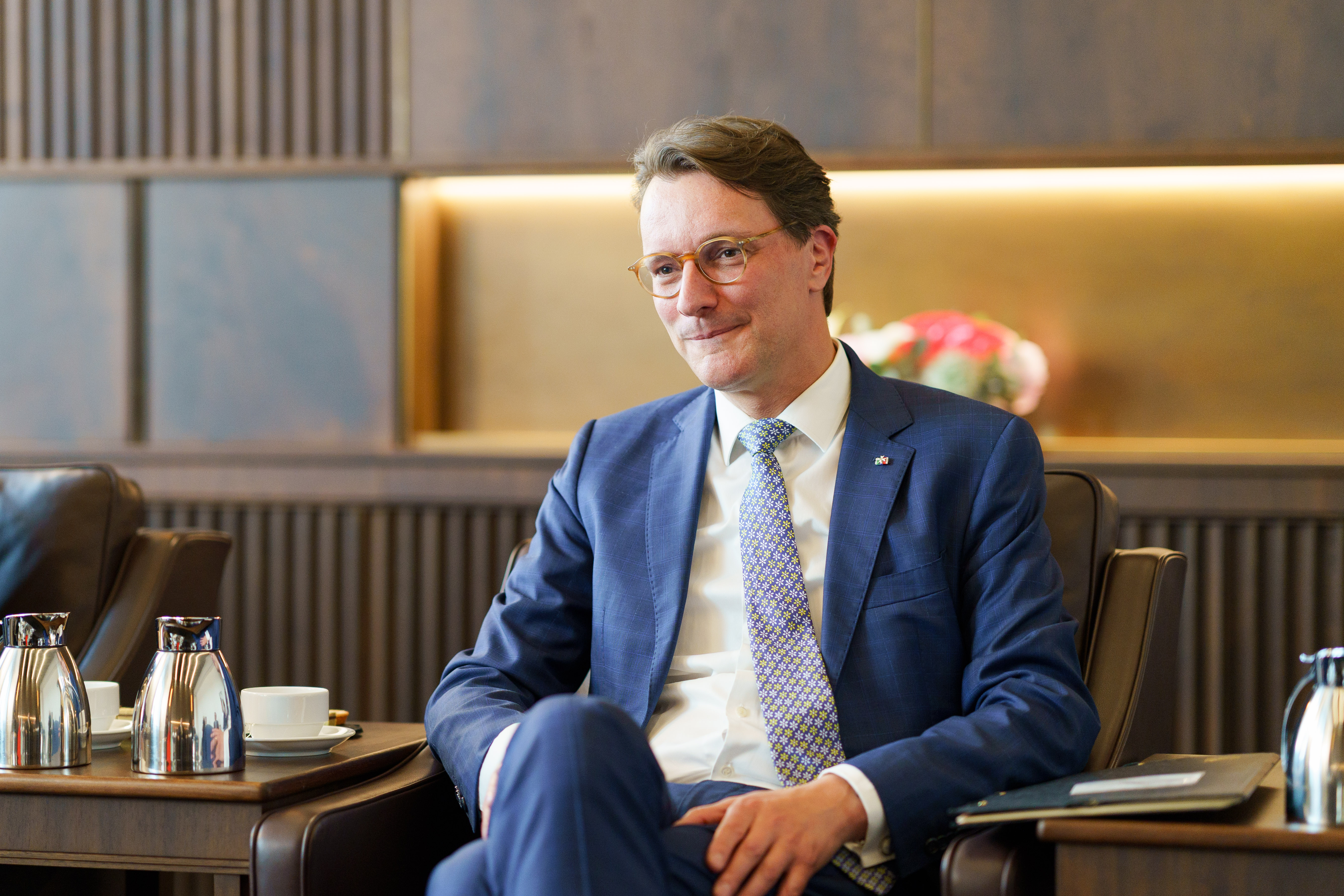 Ministerpräsident Hendrik Wüst hat am Montag, 26. Mai 2025, den Botschafter der Volksrepublik China in Deutschland, Deng Hongbo, zum Antrittsbesuch in der Staatskanzlei empfangen.