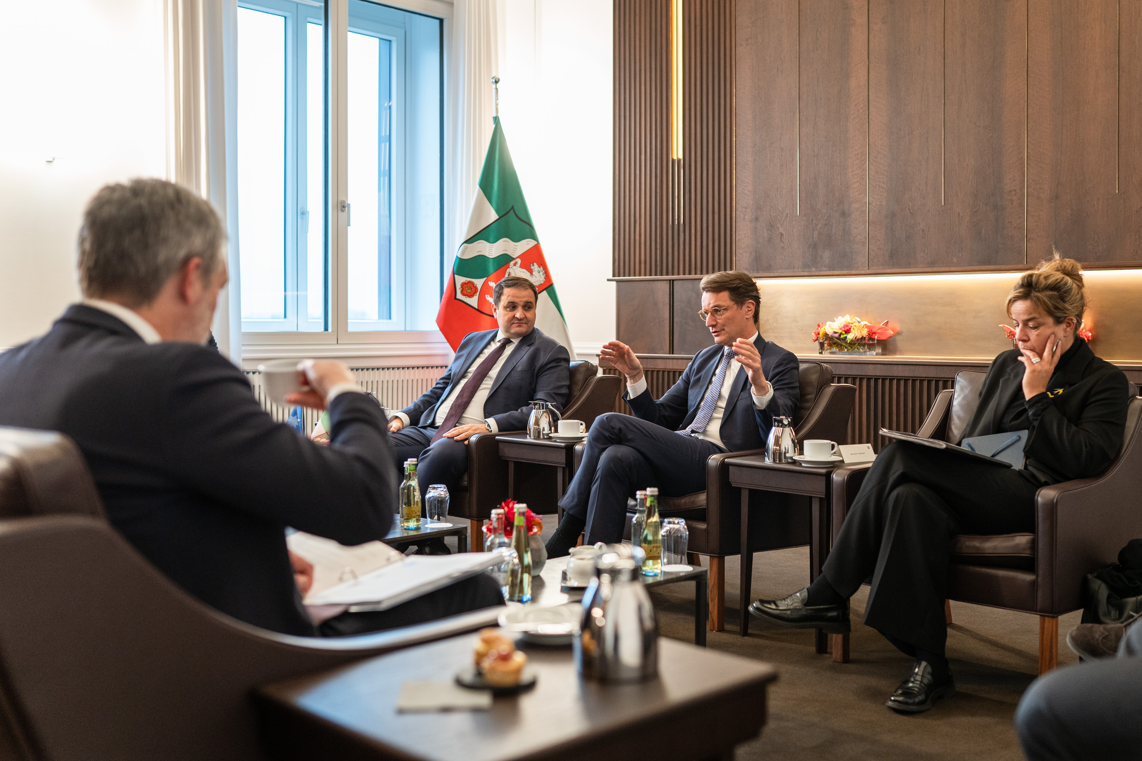 Themen des Gesprächs waren die Zusammenarbeit zwischen Minnesota und Nordrhein-Westfalen, die Rolle subnationaler Akteure sowie der Austausch von Erkenntnissen aus der Energiewende.