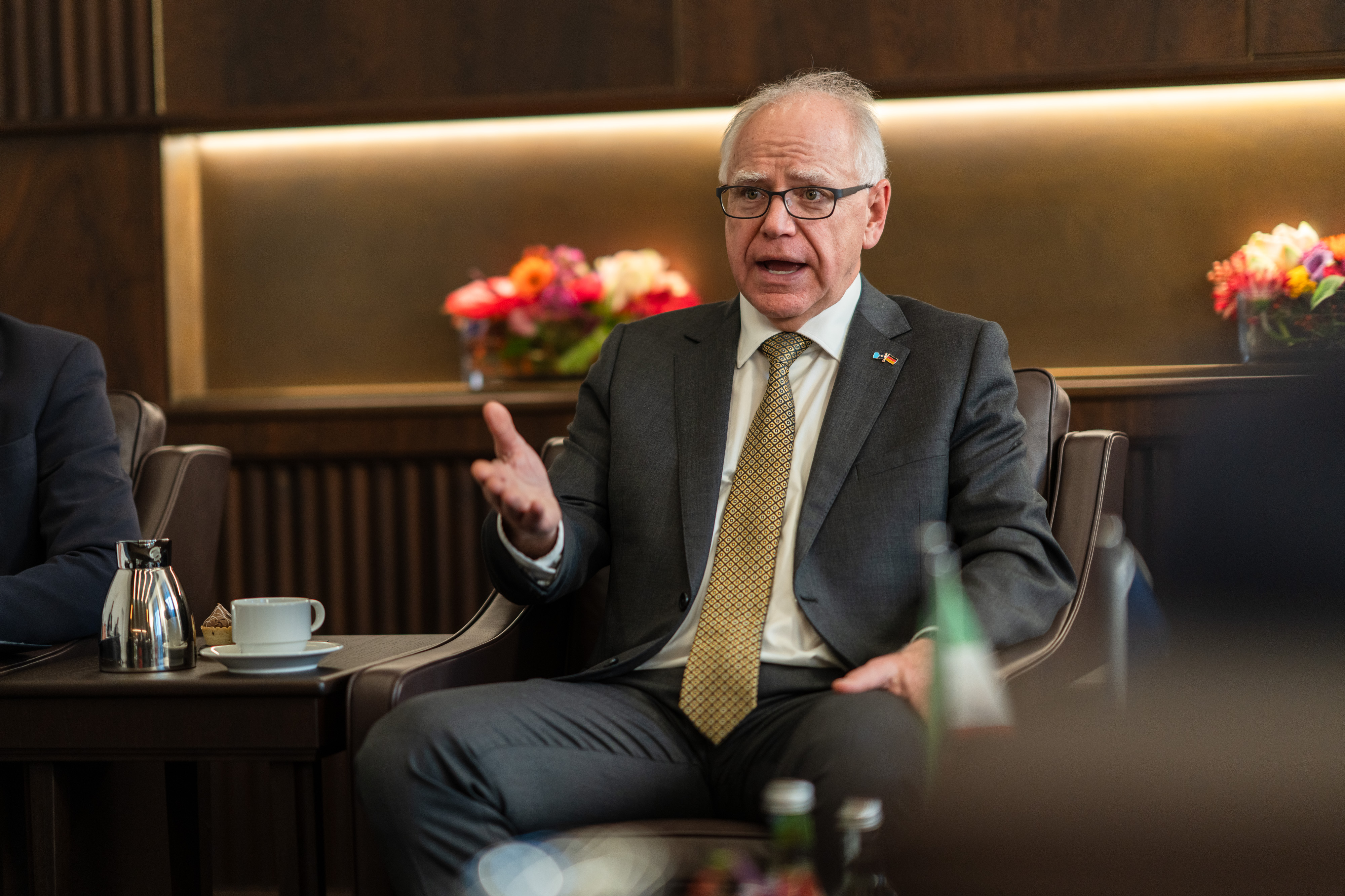 Gouverneur Tim Walz ist derzeit in Begleitung einer Delegation aus Regierungsmitgliedern sowie Vertreterinnen und Vertretern der Bereiche Umwelt- und Medizintechnologien sowie Landwirtschaft in Nordrhein-Westfalen zu Gast. Er besucht unter anderem die Medizintechnik-Messe MEDICA in Düsseldorf und den Deutschlandsitz des amerikanischen Multitechnologiekonzerns 3M aus Minnesota in Neuss. Tim Walz ist seit 2019 Gouverneur des Bundesstaates Minnesota und kandidierte im US-Wahlkampf 2024 als Vizepräsident für die Demokratische Partei an der Seite von Kamala Harris.
