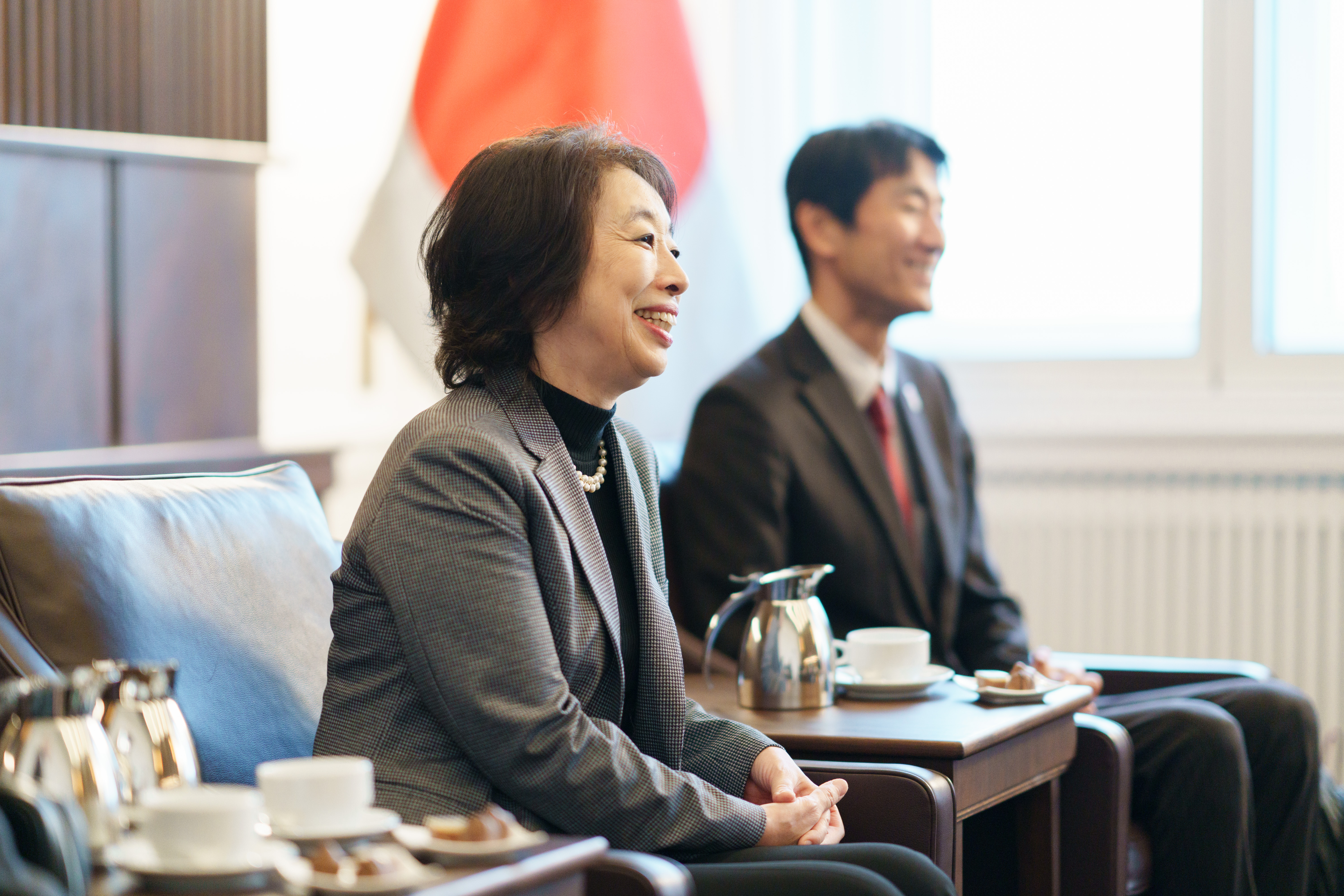 Im Mittelpunkt des Gesprächs standen die langjährigen bilateralen Beziehungen zwischen Nordrhein-Westfalen und Japan, die ausgeprägte Zusammenarbeit vor allem bei Zukunftsthemen sowie gemeinsame aktuelle politische und gesellschaftliche Herausforderungen.