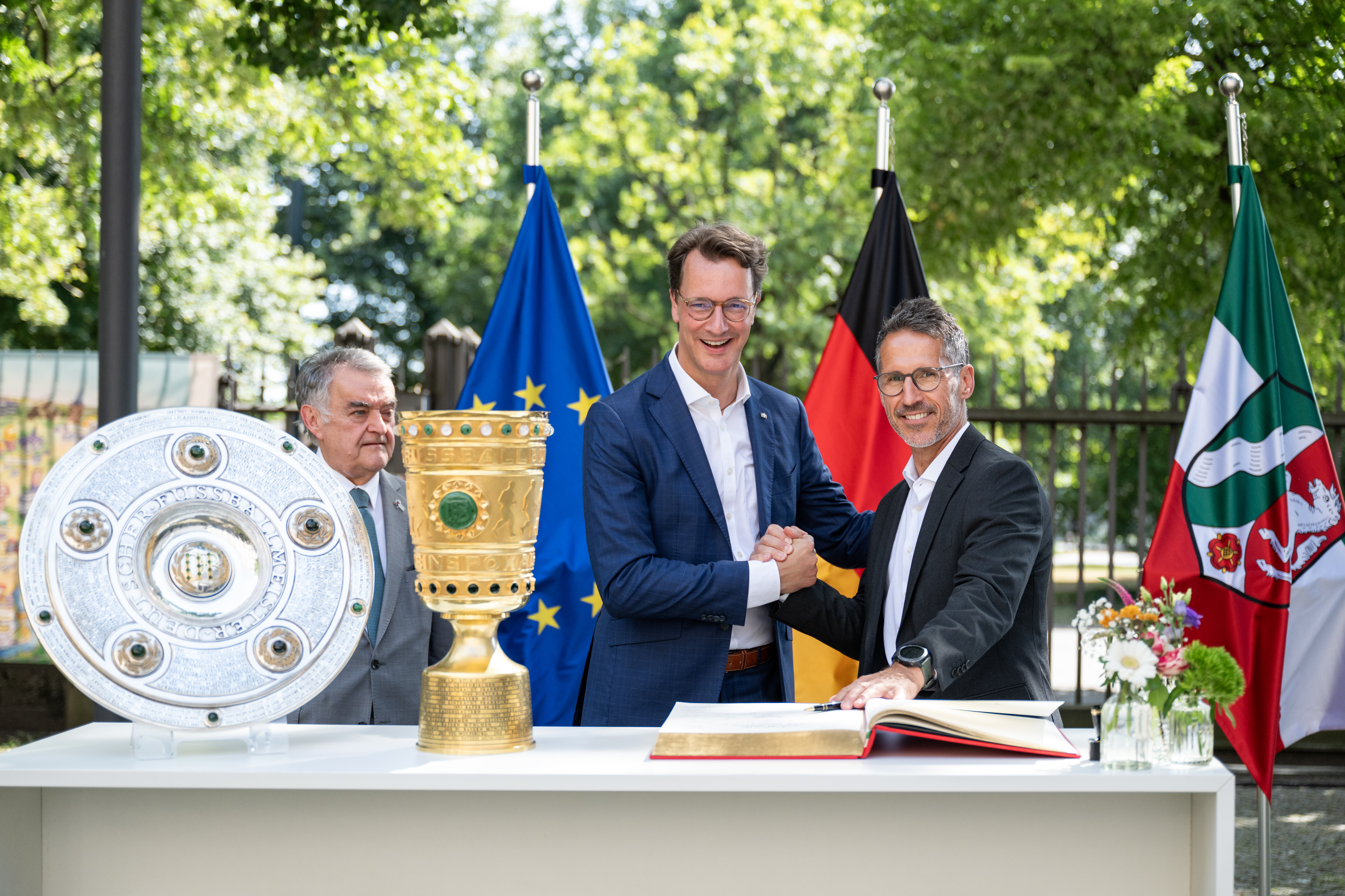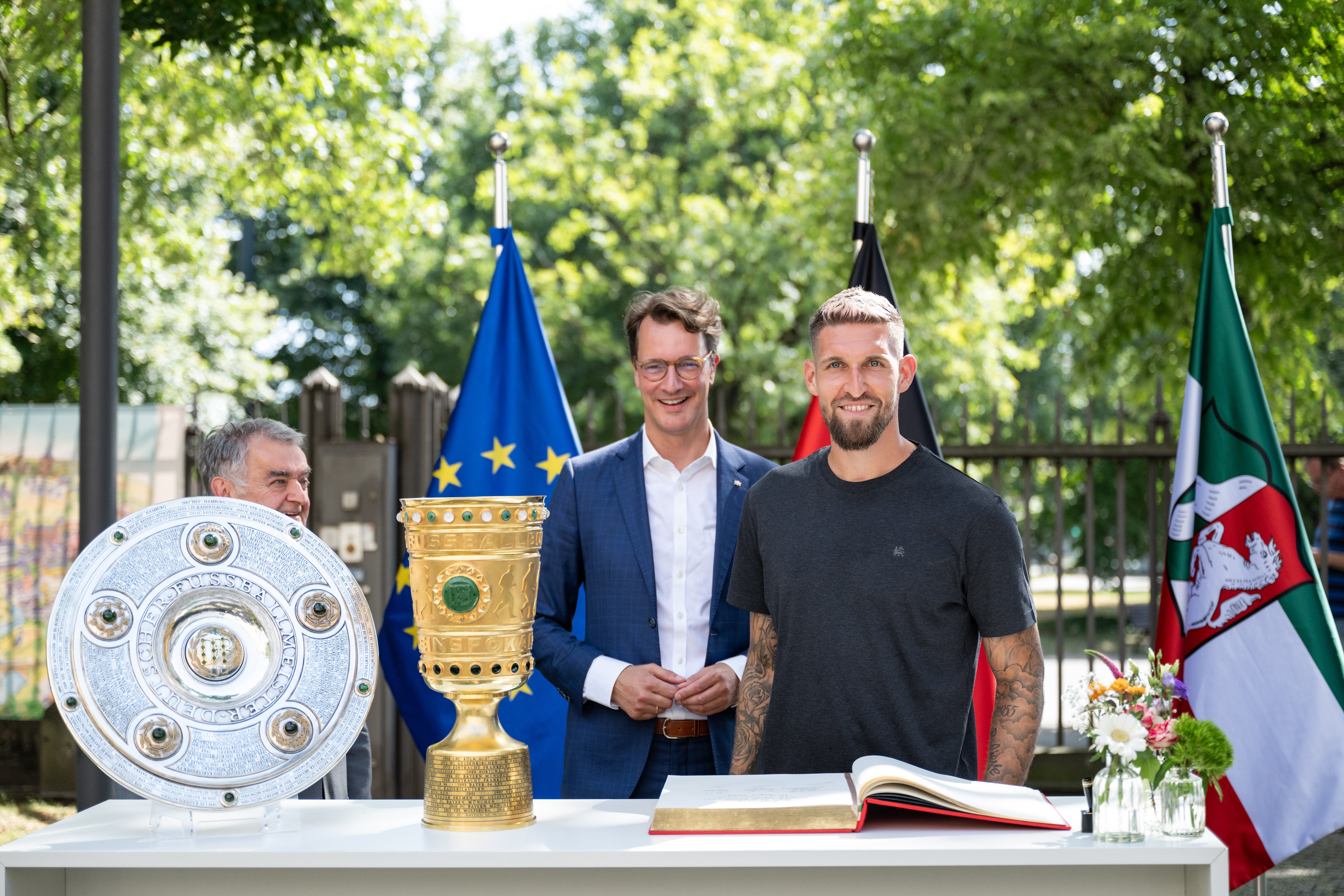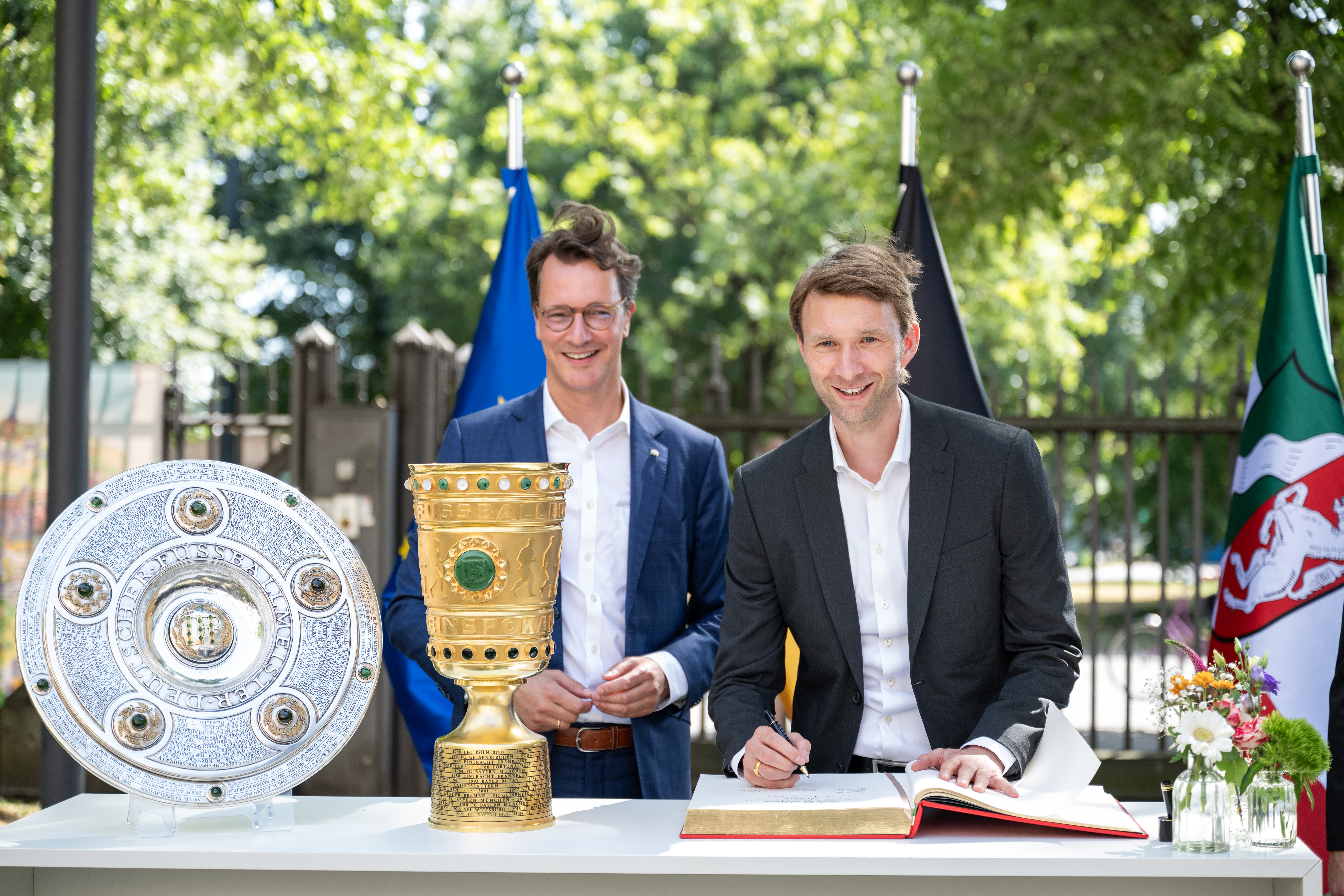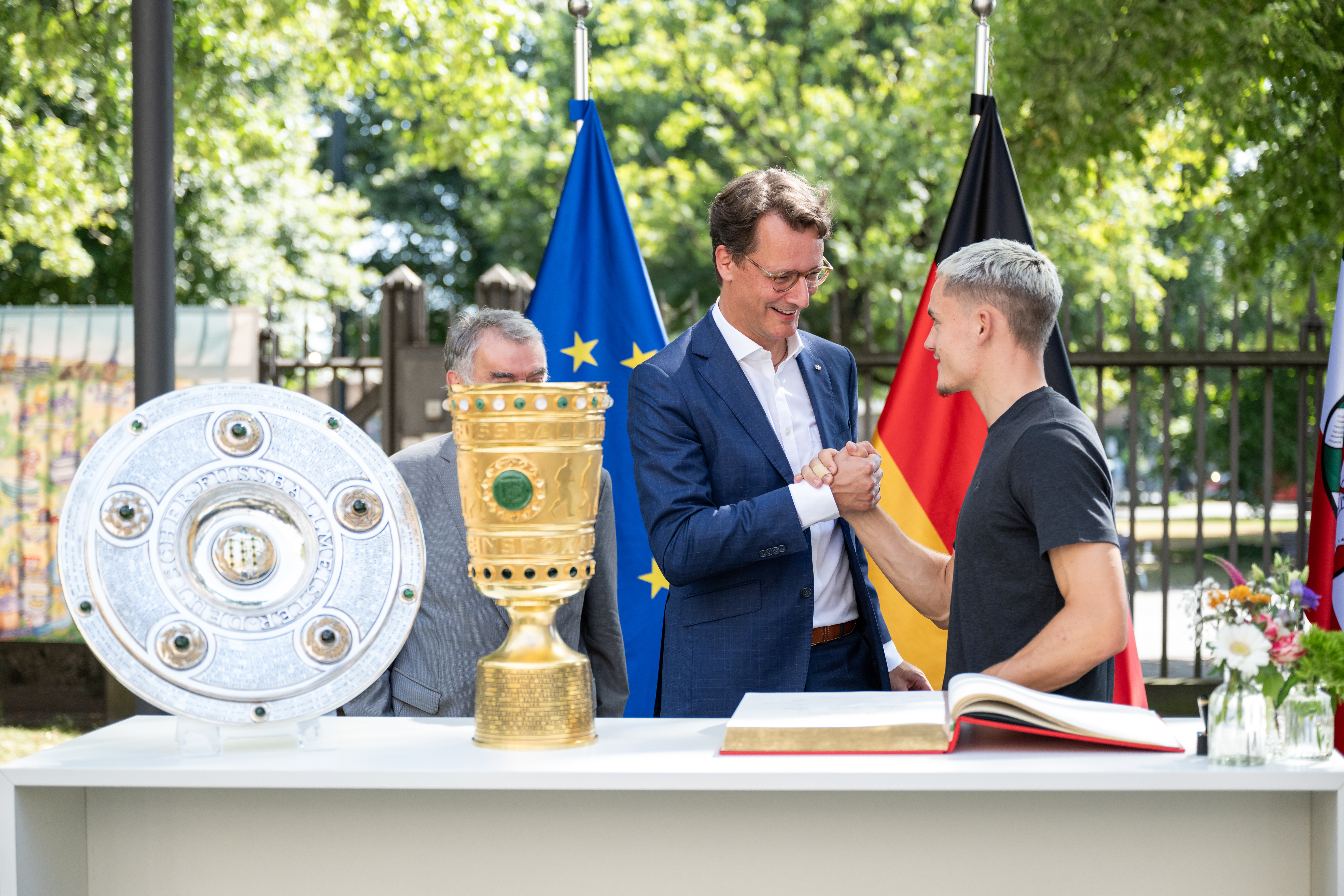 Im Rahmen des Empfangs trugen sich die Spieler zudem in das Goldene Buch des Landes Nordrhein-Westfalen ein – eine besondere Ehrung für ihren historischen Erfolg.