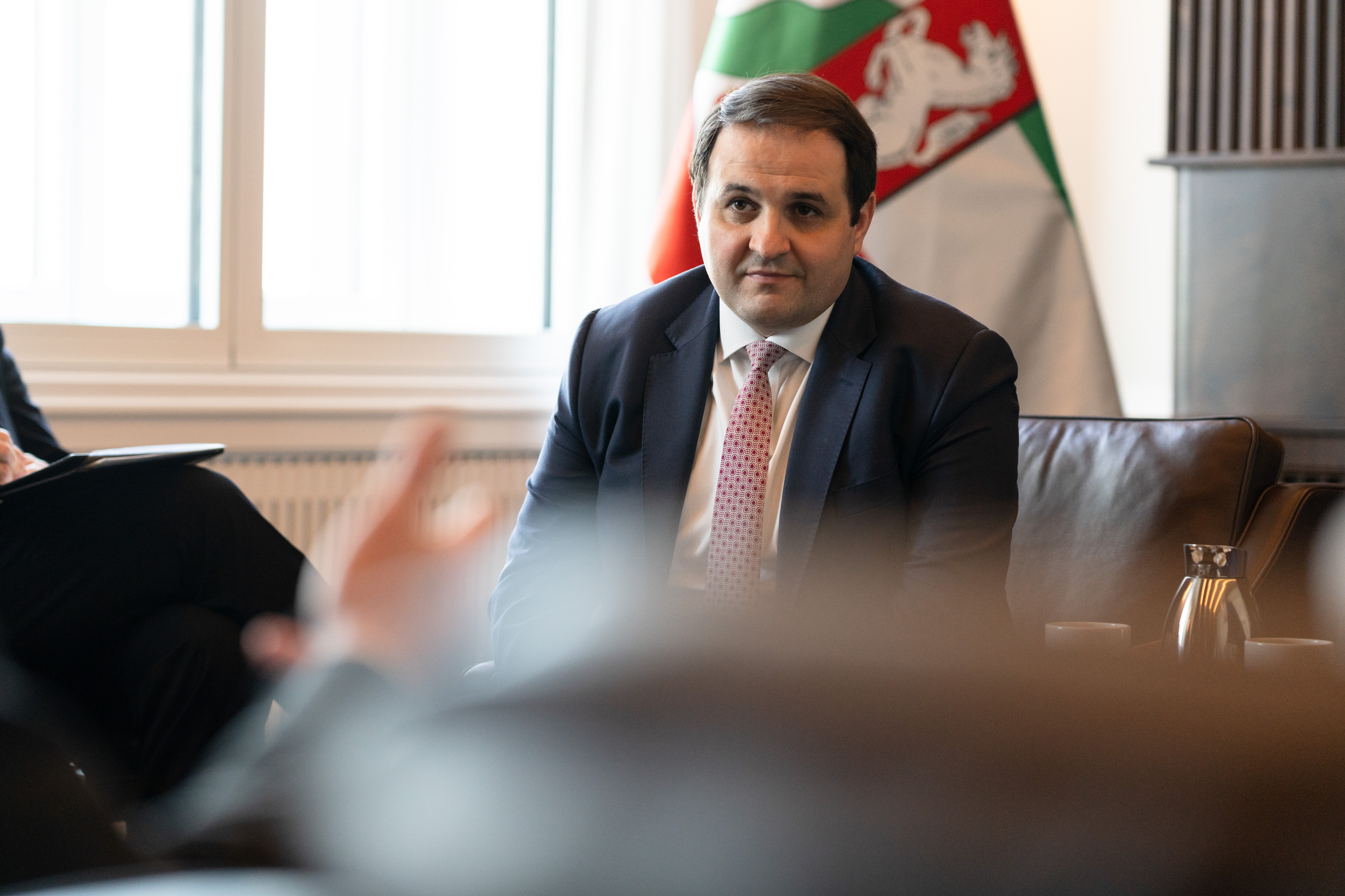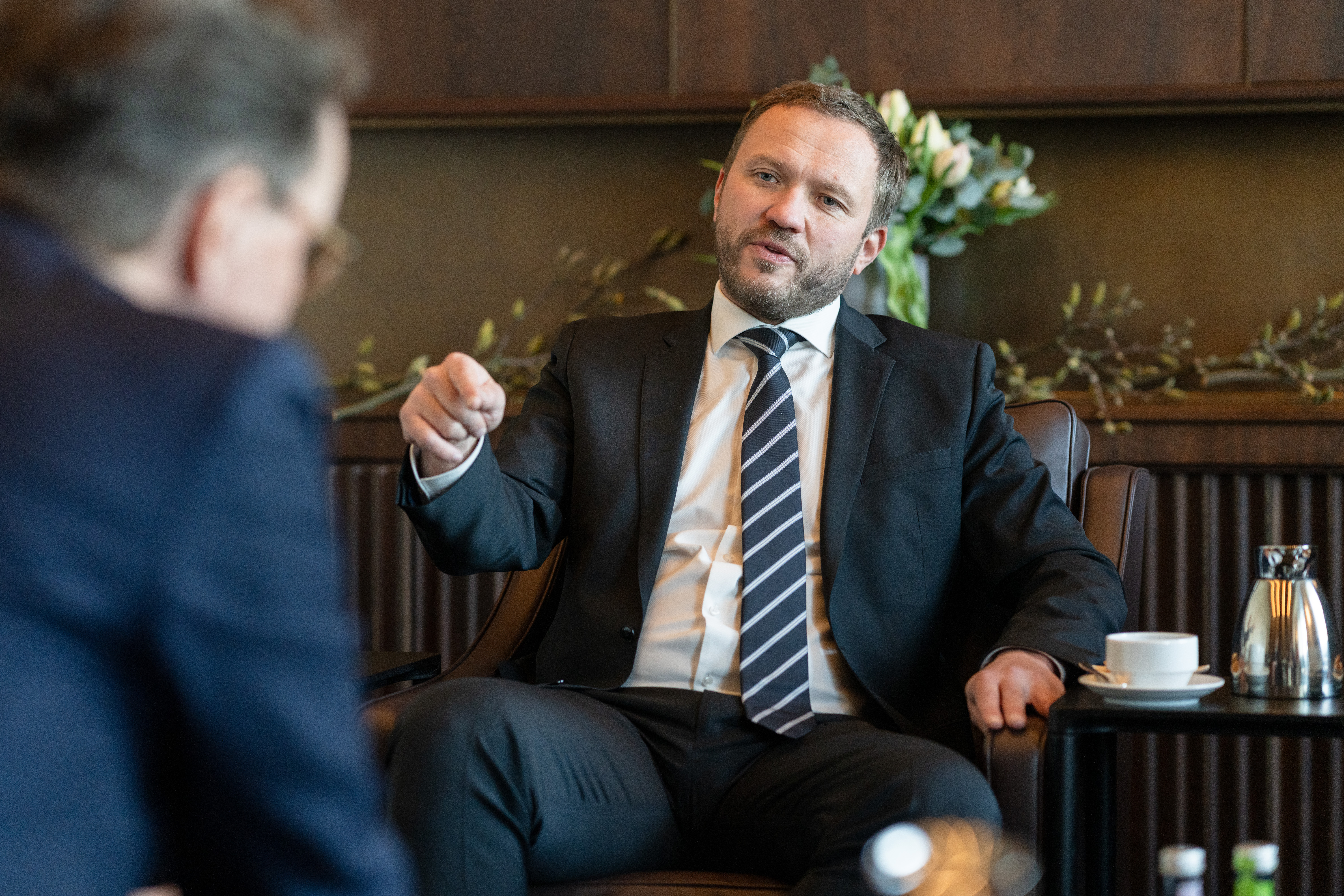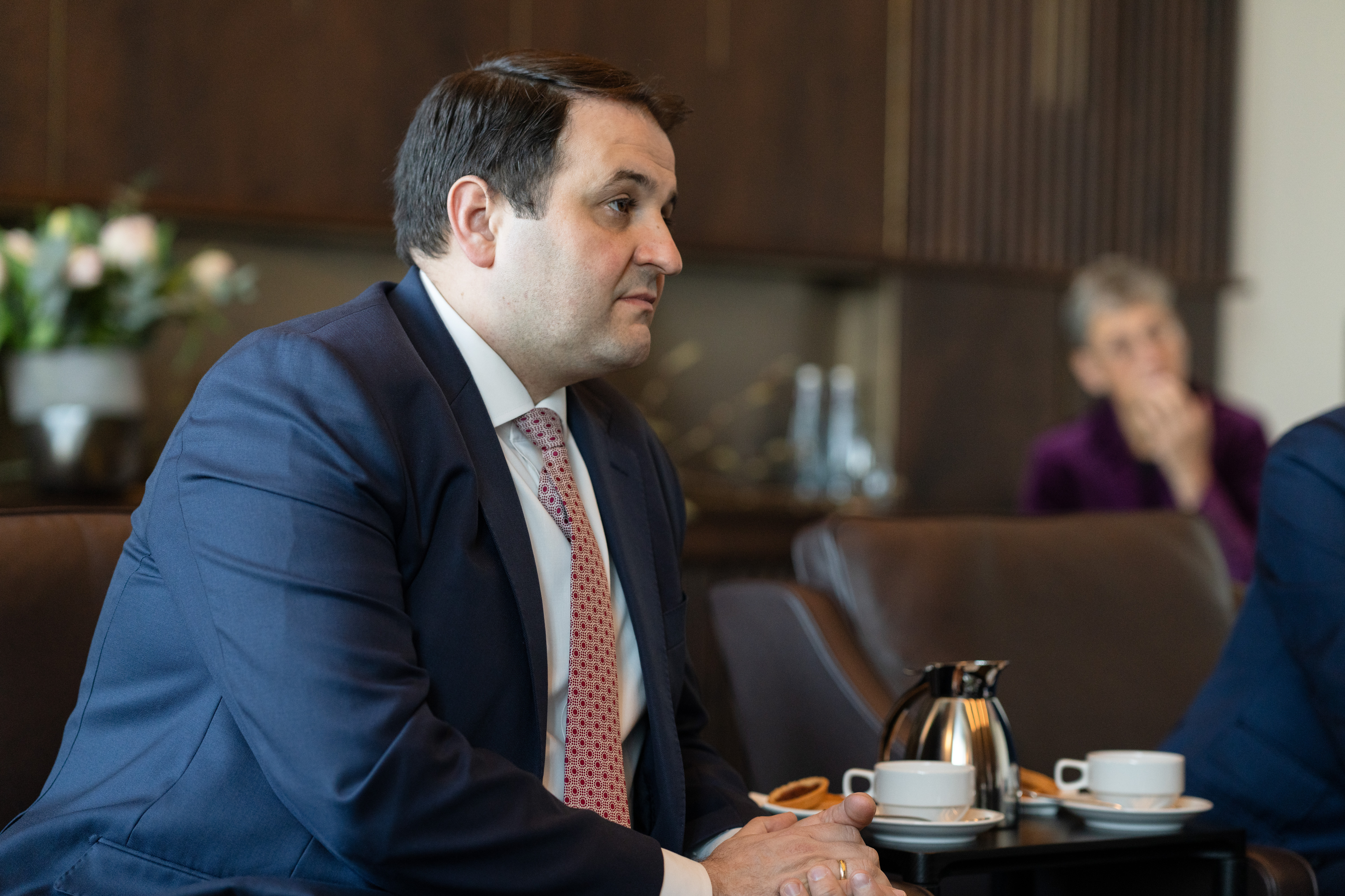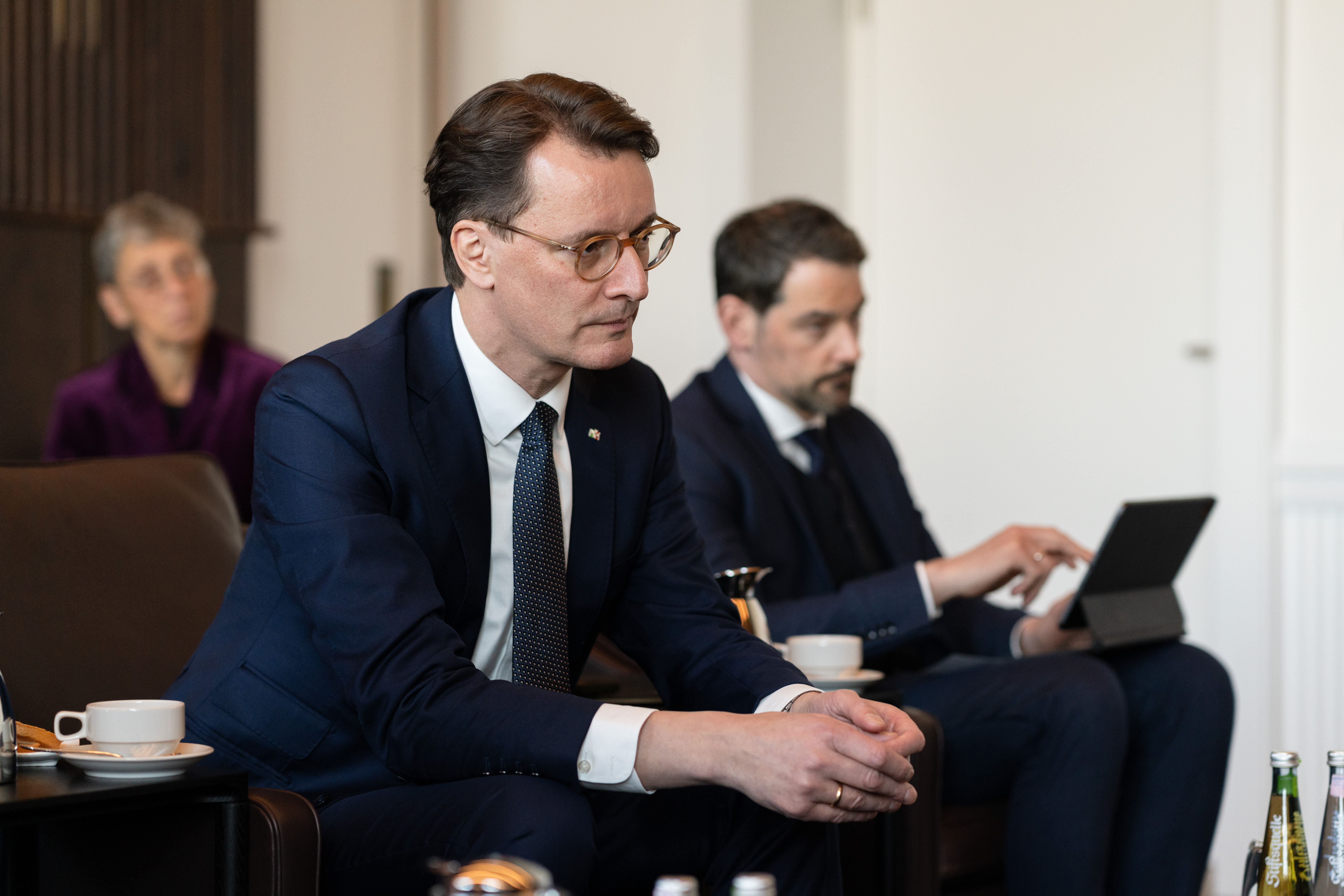 Ministerpräsident Hendrik Wüst hat am Dienstag, 18. Februar 2025, den estnischen Außenminister Margus Tsahkna und Botschafterin Marika Linntam in der Staatskanzlei empfangen.