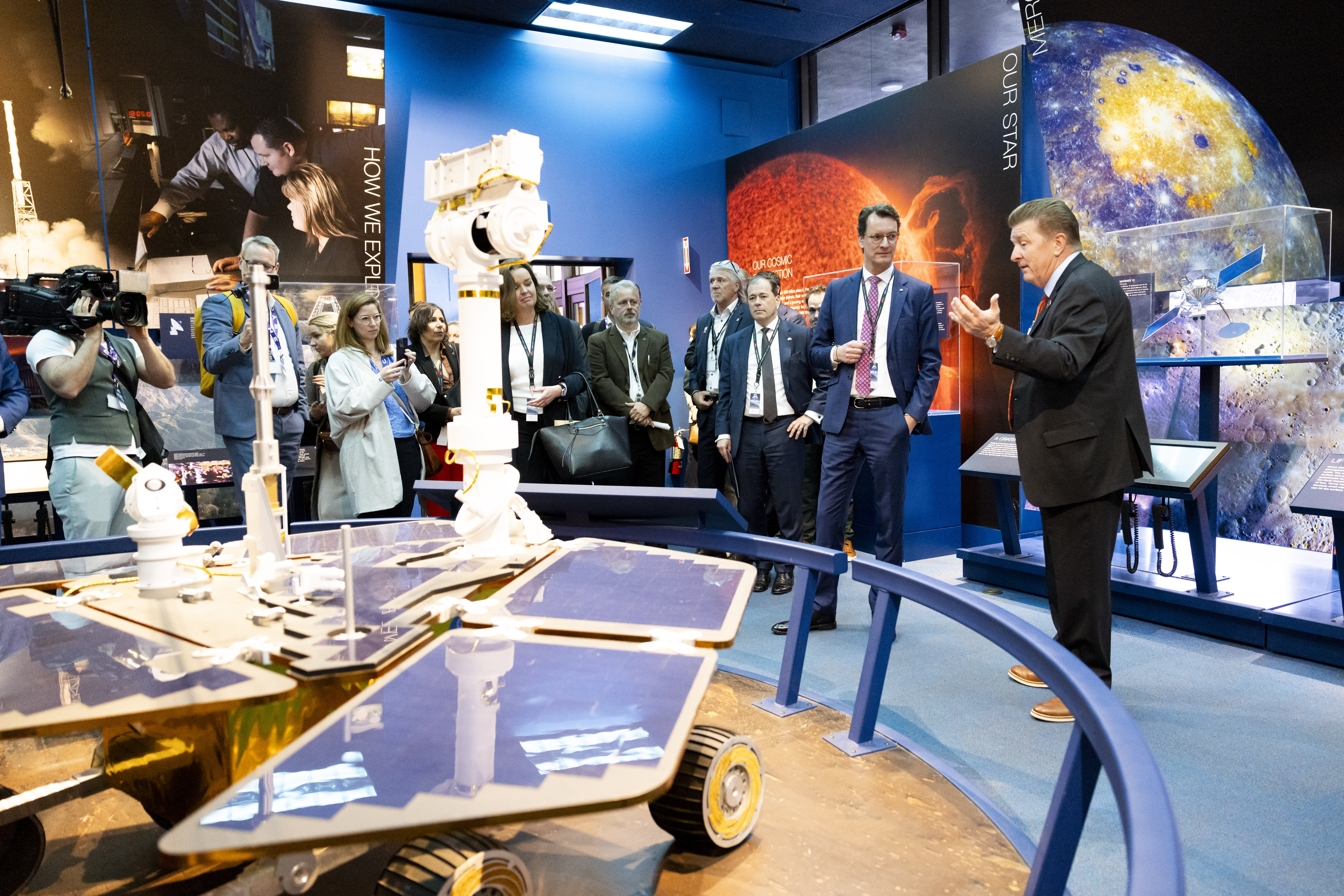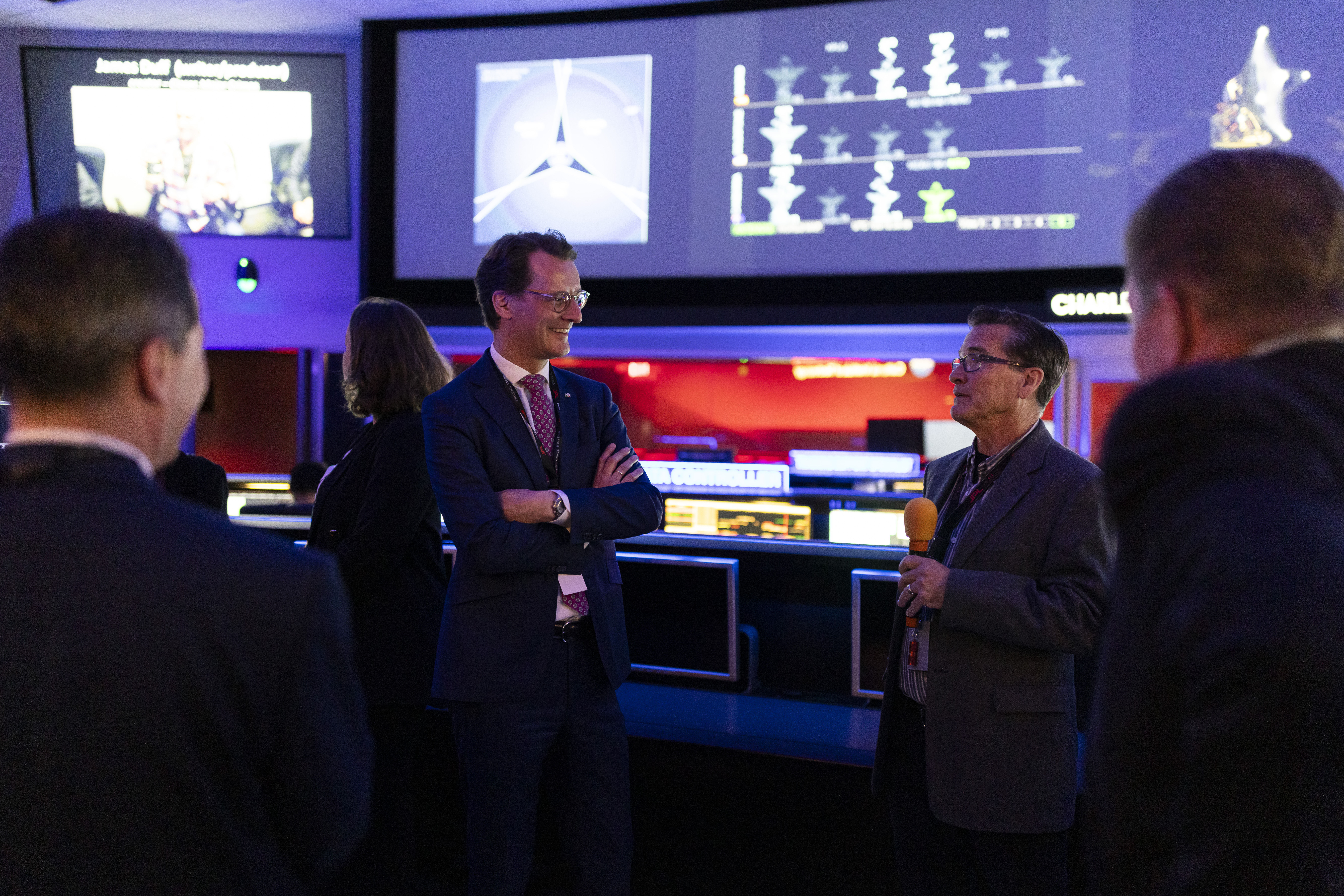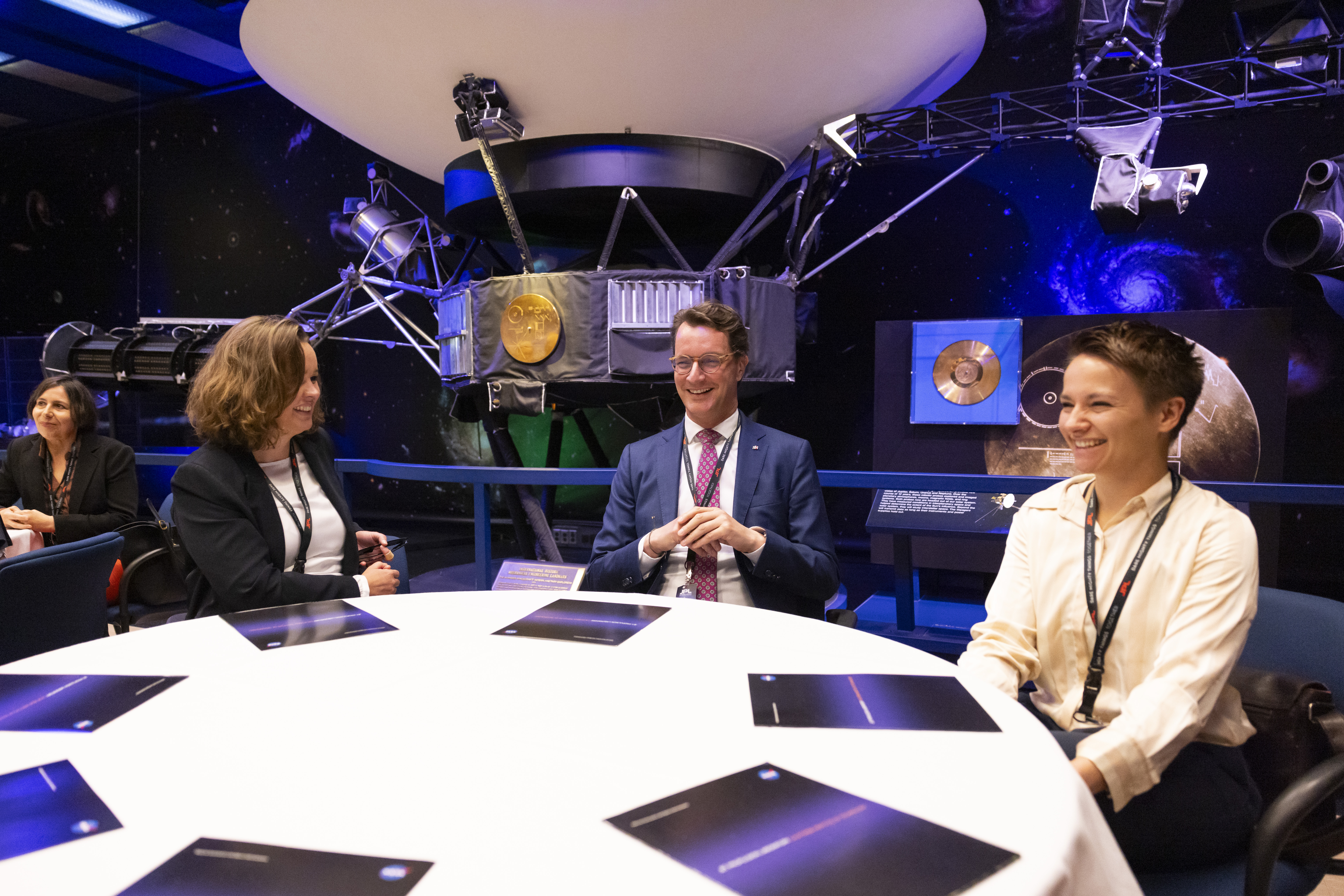Ministerpräsident Wüst will die transatlantische Partnerschaft in diesen Bereichen bekräftigen und tauschte sich vor Ort mit Wissenschaftlerinnen und Wissenschaftlern des JPL zu diesen Projekten aus. Zudem besichtigte er das Mission Control Center sowie das Earth Science Center, zentrale Kontrollzentren für Weltraum- und Erdbeobachtungsmissionen. Ministerpräsident Wüst wurde dabei von der Reserve-Astronautin der ESA Dr. Amelie Schoenenwald und dem Direktor für Anwendungen und Wissenschaft in der Deutschen Raumfahrtagentur Dr. Peter Gräf begleitet.
