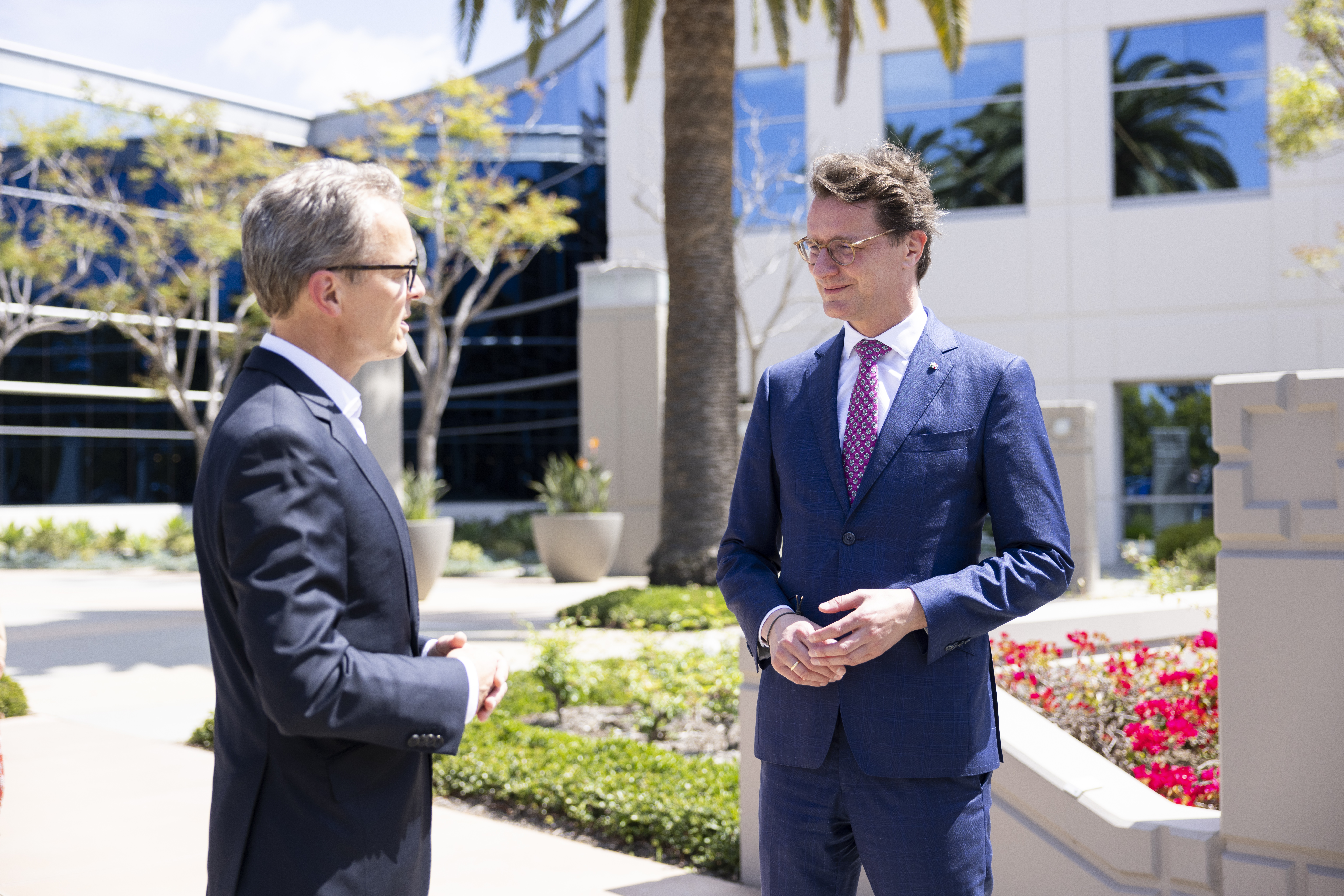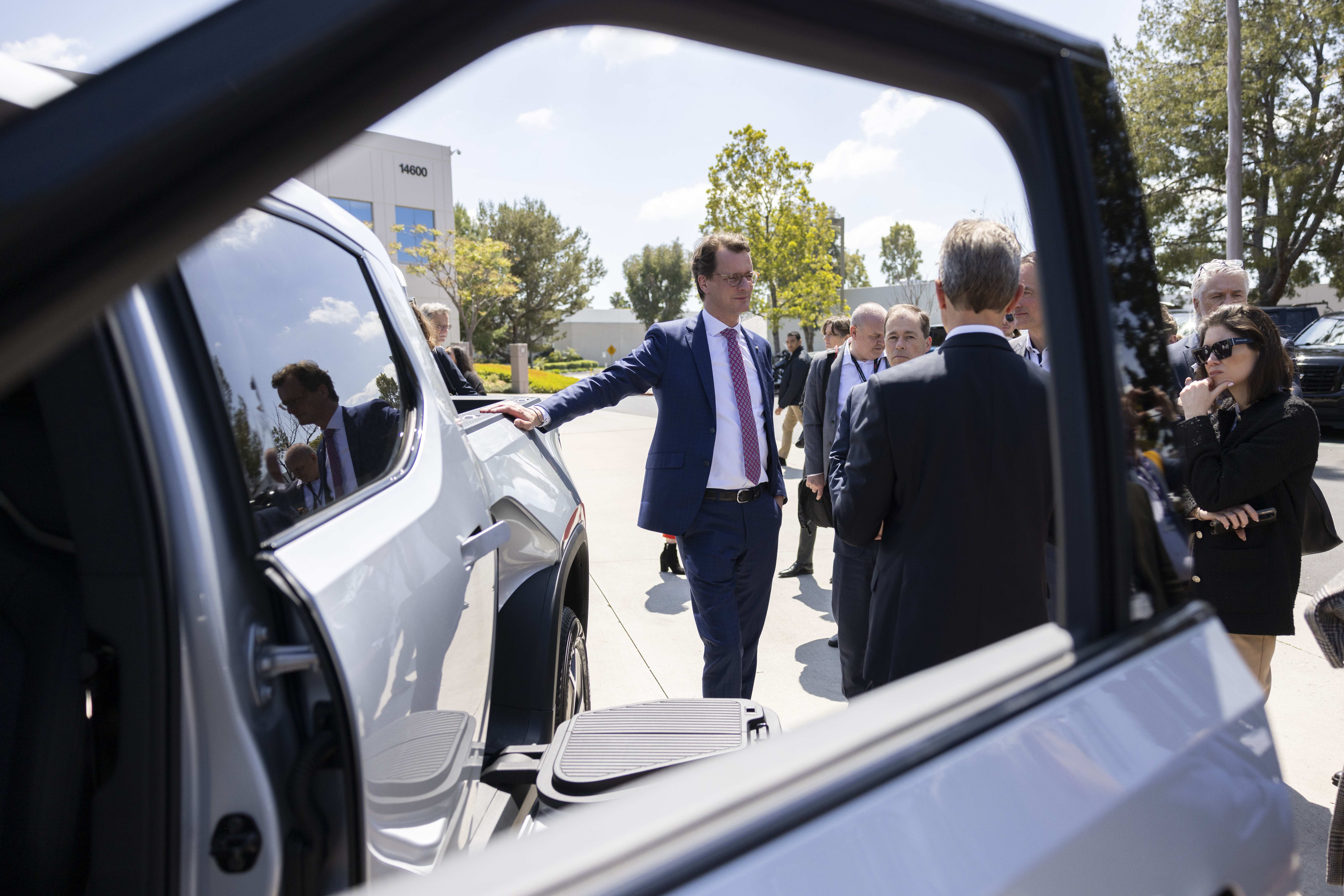 Am Montagnachmittag traf sich Ministerpräsident Wüst mit Dr. Kjell Gruner, CCO (Chief Commercial Officer) des E-Autoherstellers Rivian in deren Firmensitz im Süden von Los Angeles. Rivian hat für Amazon ein elektrisches Lieferfahrzeug entwickelt, das bereits in Nordrhein-Westfalen eingesetzt wird: In Neuss ist die erste deutsche Wartungsstation, ein Service Hub, entstanden. Neuss ist dabei der erste permanente Standort und fungiert als Hauptbasis mit der möglichen Perspektive, Deutschlandzentrale zu werden. Ministerpräsident Wüst nutzte den Besuch vor Ort, um für den E-Mobilitätsstandort Nordrhein-Westfalen zu werben und sich über aktuelle Perspektiven von Rivian und Trends in der E-Automobilbranche allgemein auszutauschen.