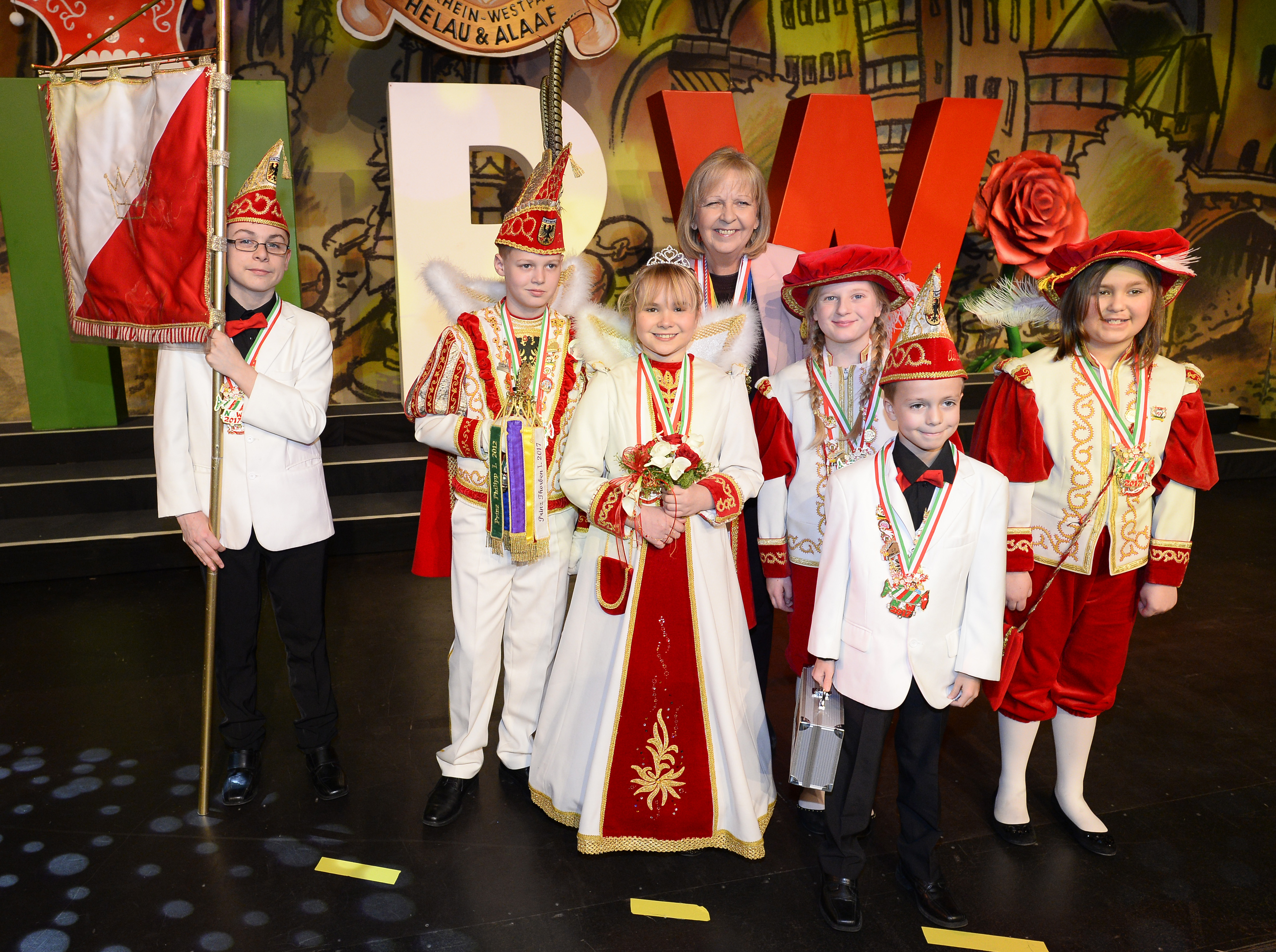 Ministerpräsidentin Hannelore Kraft hat am Mittwoch, 1. Februar 2017, die Kinderprinzenpaare und die Kinderdreigestirne aus Nordrhein-Westfalen auch in diesem Jahr wieder zu einem großen Empfang eingeladen. Die Kinderprinzenpaare und Kinderdreigestirne kommen aus folgenden Städten und Kommunen NRWs: Bergisch Gladbach, Bonn, Dortmund, Duisburg, Düsseldorf, Heimbach, Heinsberg, Köln, Krefeld, Leverkusen, Manheim, Münster, Mülheim, Mönchengladbach, Oer-Erkenschwick, Pulheim, Ratingen, Rietberg, Stolberg, Suttrop, Velbert, Viersen, Werne, Wuppertal und Würselen.