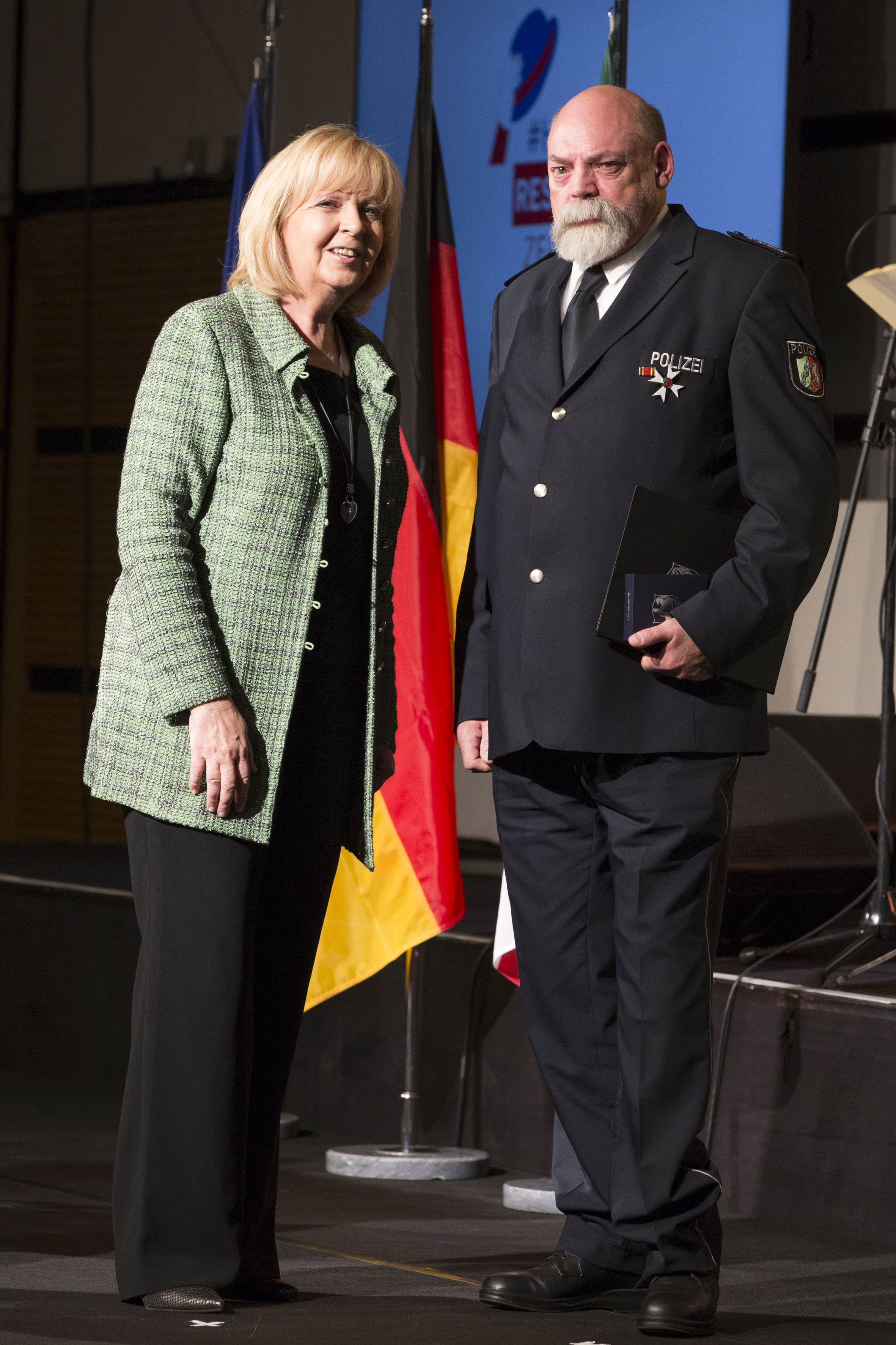 Sie liebe Sabine Rau, haben angesichts dieses Leids professionell und warmherzig reagiert. Sie sind den Angehörigen so begegnet, dass die Folgen des Unglücks nicht noch weiteres Leid bei ihnen verursacht haben. Dieses „Auffangen“ in einer emotionalen Ausnahmesituation war und ist unendlich wichtig. Und dafür sind wir alle Ihnen zu Dank verpflichtet. Als zuständige Einsatzleiterin waren Sie dabei einer Fülle von neuen Anforderungen ausgesetzt, zum Beispiel an Ihre Präsenz in den Medien, die ja eigentlich nicht zu Ihren Kernaufgaben gehört. Sie haben auch in diesem Bereich Sicherheit und Empathie ausgestrahlt. Auch die Angehörigen haben das als wertvolle Hilfe empfunden. Dabei lassen Sie nie die gemeinsame Leistung Ihres Teams außer Acht. Auch das ist eine Eigenschaft, die Sie, liebe Frau Rau, besonders ehrt. Sie haben sich mit Ihrer Arbeit, Ihren Einsätzen und Ihrem Engagement große Verdienste um unser Land erworben. Und als Anerkennung dafür verleihe ich Ihnen heute den Verdienstorden unseres Landes Nordrhein-Westfalen.