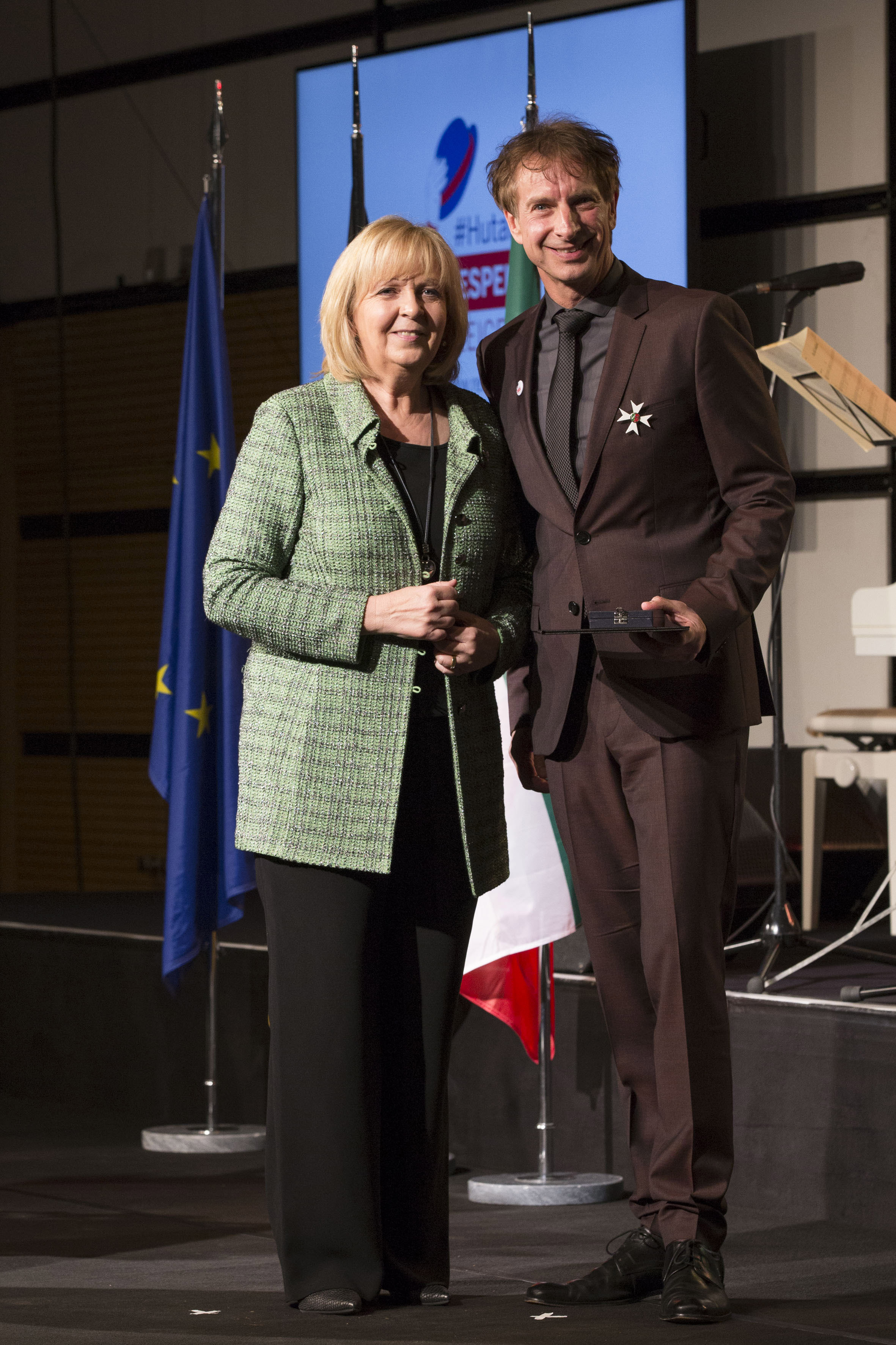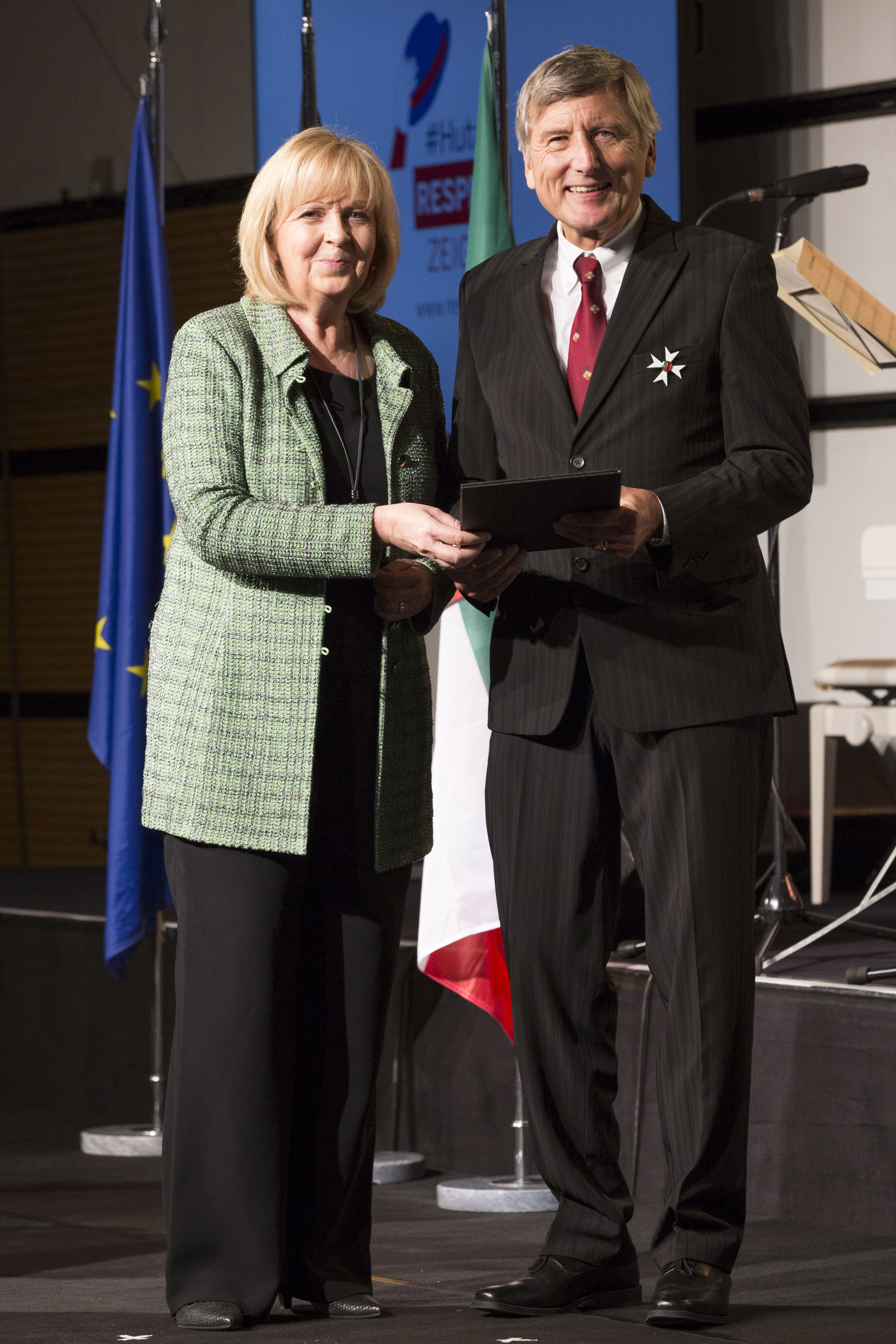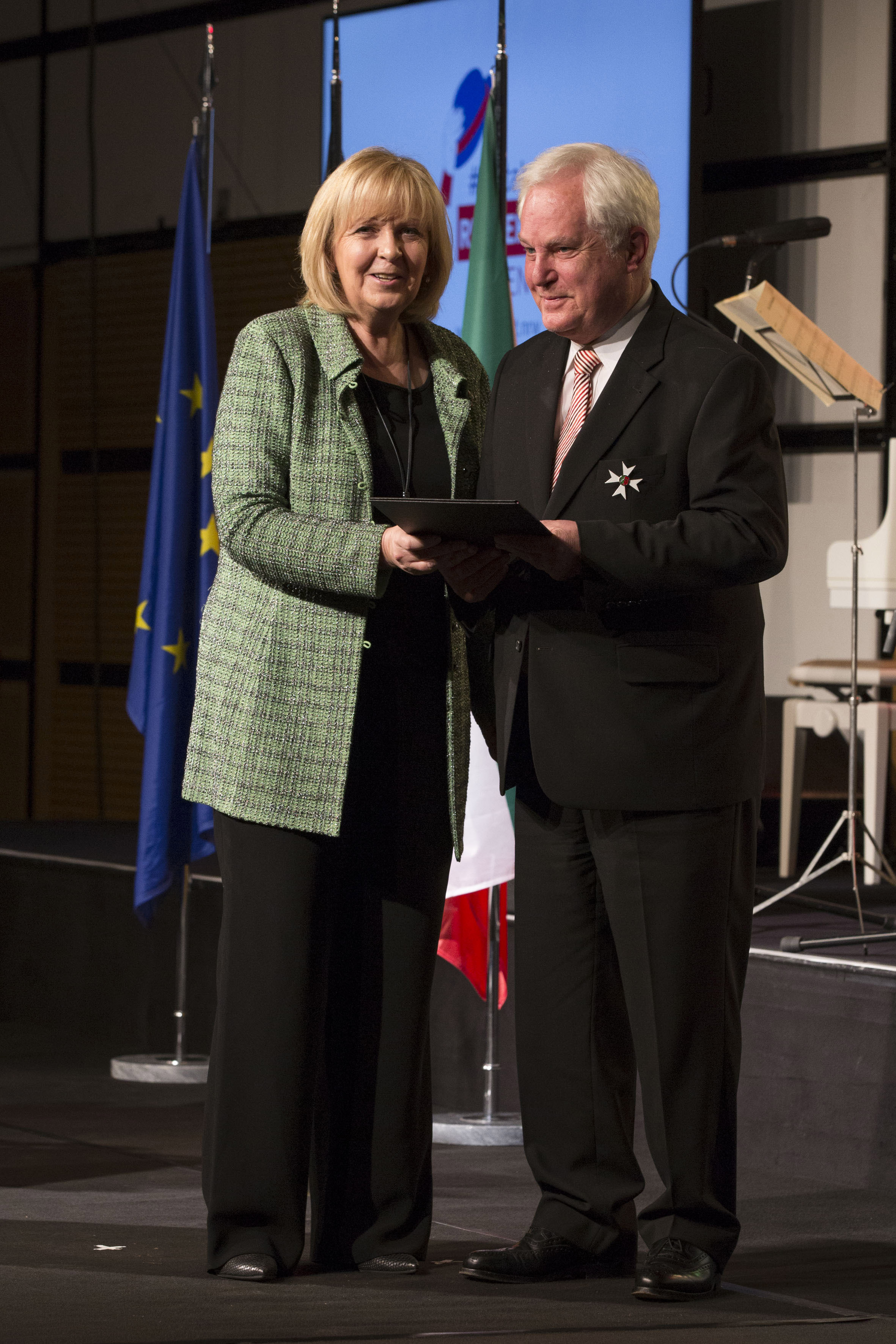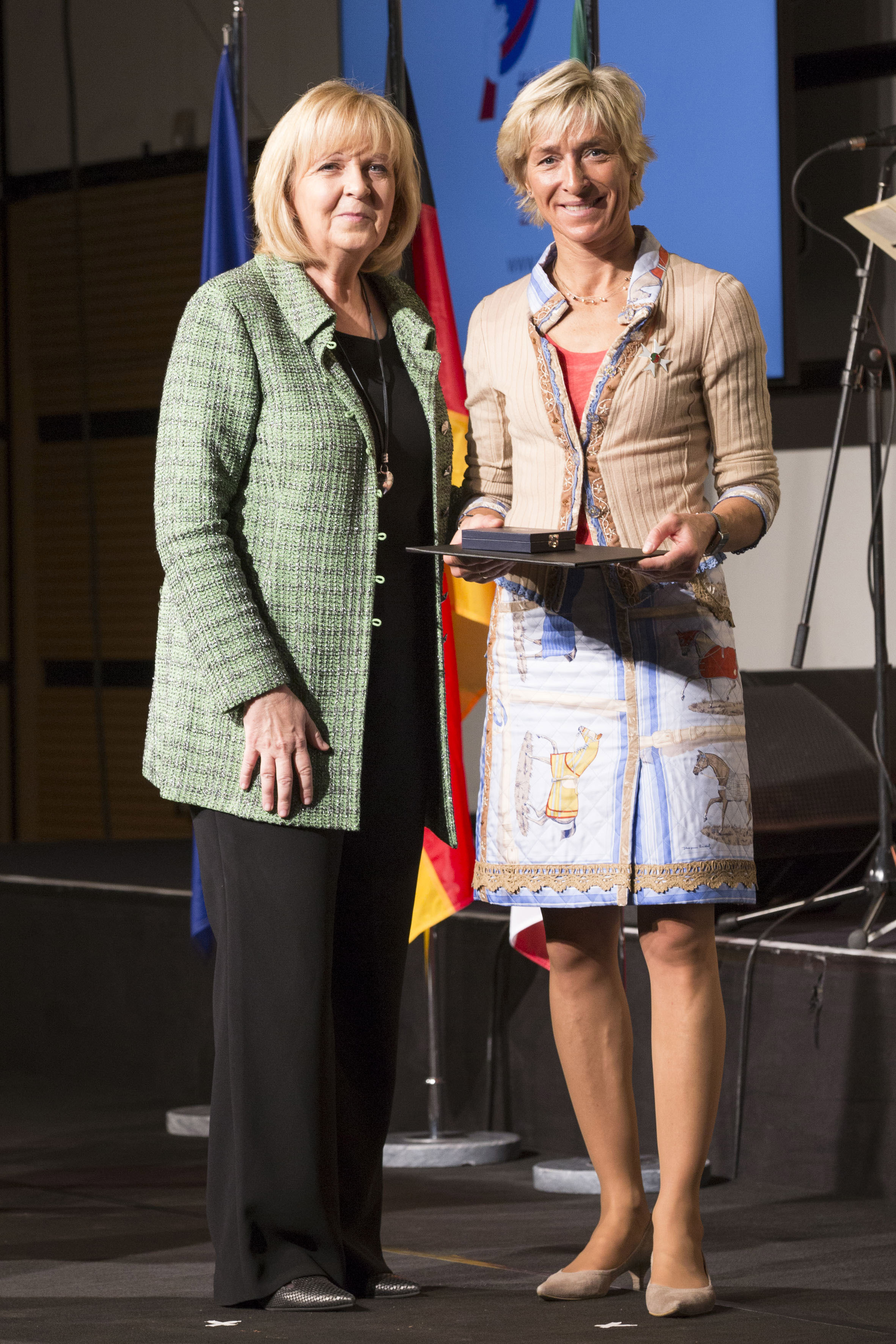 Liebe Ingrid Klimke, nicht nur als erfolgreiche Sportlerin, sondern auch als tatkräftige Frau mit einem großen Herzen für Kinder sind Sie eine herausragende Persönlichkeit in unserem Land. Als Zeichen unserer besonderen Wertschätzung überreiche ich Ihnen heute gerne den Verdienstorden des Landes Nordrhein-Westfalen.