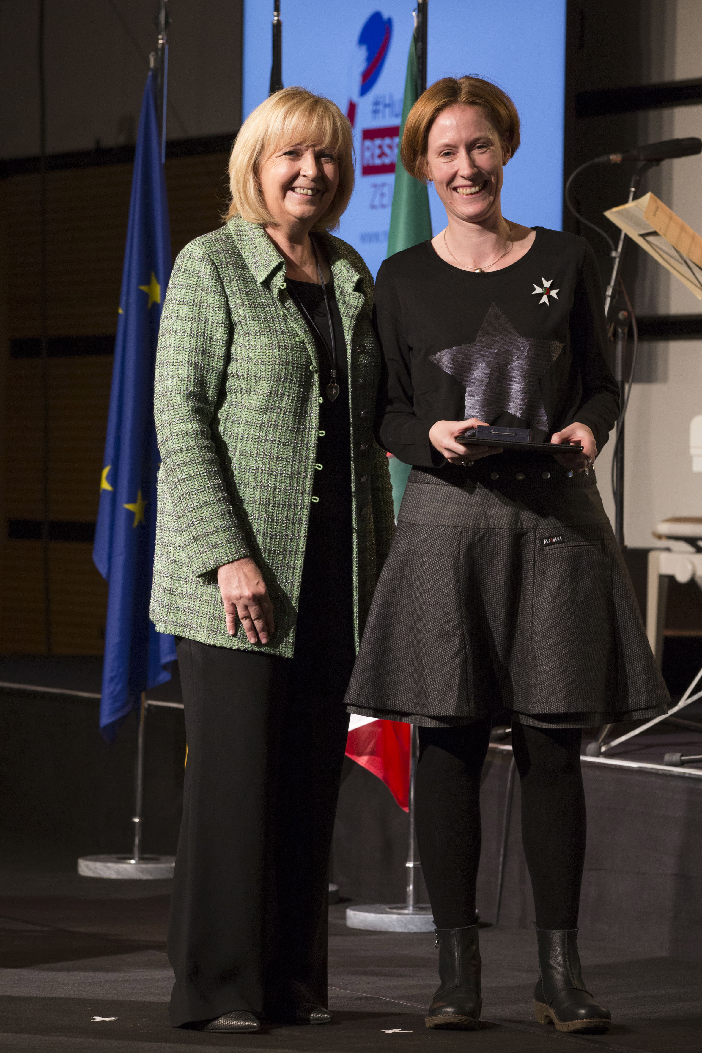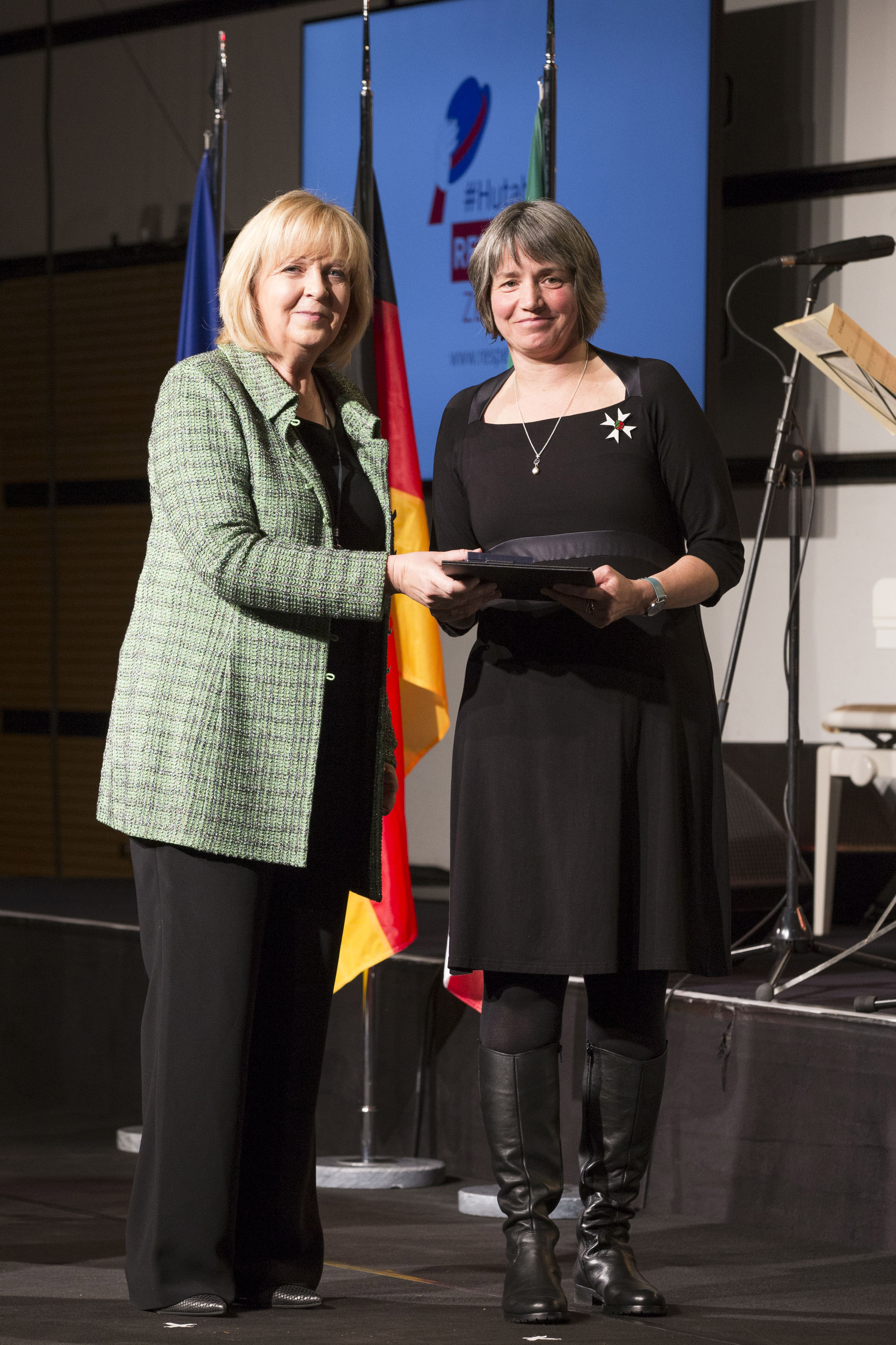 Sie gehen im Rahmen des Projekts „Störungsmelder“ bundesweit an Schulen und setzen sich dort gegen Rechtsextremismus, Rassismus und Diskriminierung ein. Dabei ist jeder Besuch vor Ort anders, immer wieder eine Premiere, denn niemand weiß, wie das Gespräch mit Jugendlichen verläuft. Da kann ein Einsatz auch schon mal vier Stunden dauern und diese Zeit nehmen Sie sich dann auch, liebe Frau Hayali. Sie reagieren auch immer wieder auf das aktuelle Geschehen: zum Beispiel haben Sie nach den Angriffen auf eine Flüchtlingsunterkunft gemeinsam mit Bundesjustizminister Heiko Maas das sächsische Heidenau besucht. Sie stellen sich Fremdenfeindlichkeit und Hassparolen in den sozialen Netzwerken entgegen, denen Sie immer wieder ausgesetzt sind. Unermüdlich und unerschrocken suchen Sie, trotz Anfeindungen, das persönliche Gespräch, ob bei Demonstrationen von Rechtspopulisten oder in Flüchtlingsunterkünften.