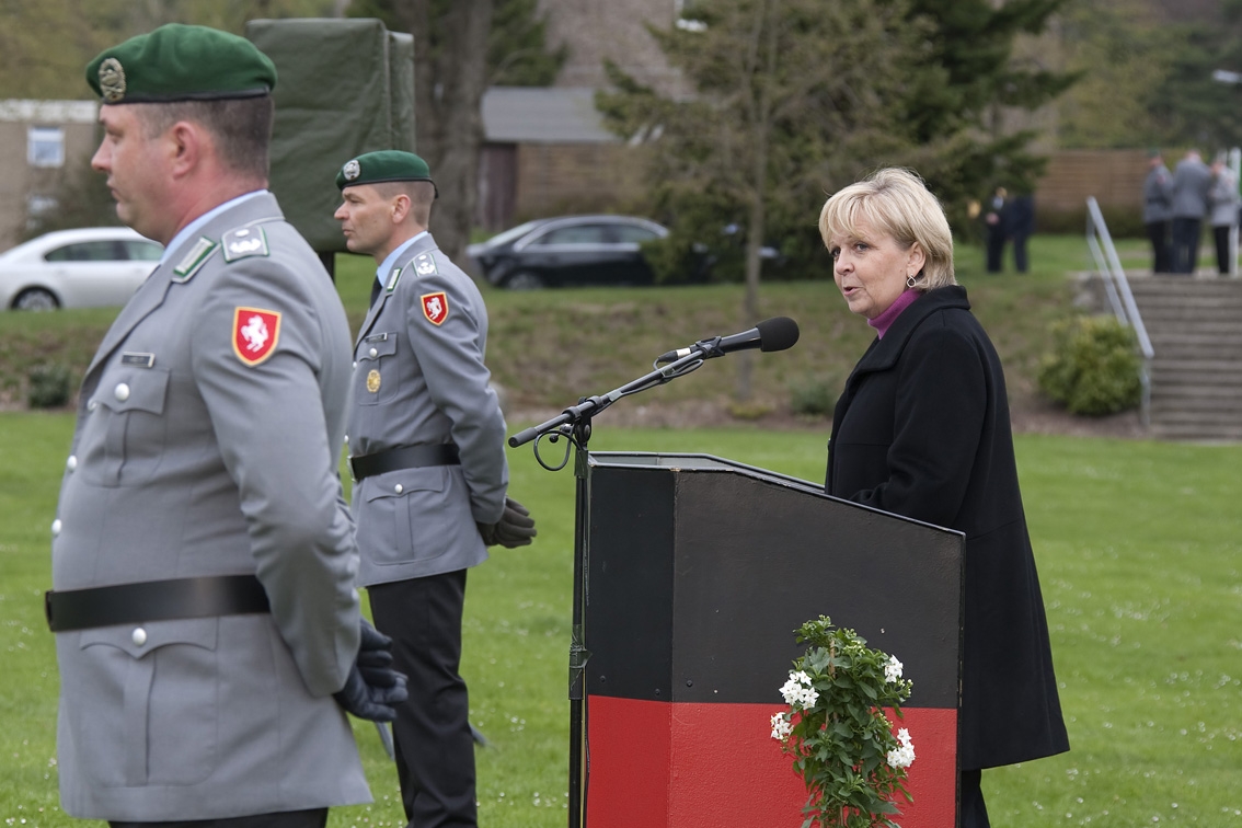 „Mit dieser Auszeichnung möchte die Landesregierung ihre Verbundenheit zum Bataillon und zur Bundeswehr insgesamt zum Ausdruck bringen“, sagte Ministerpräsidentin Kraft in ihrer Rede in Augustdorf.