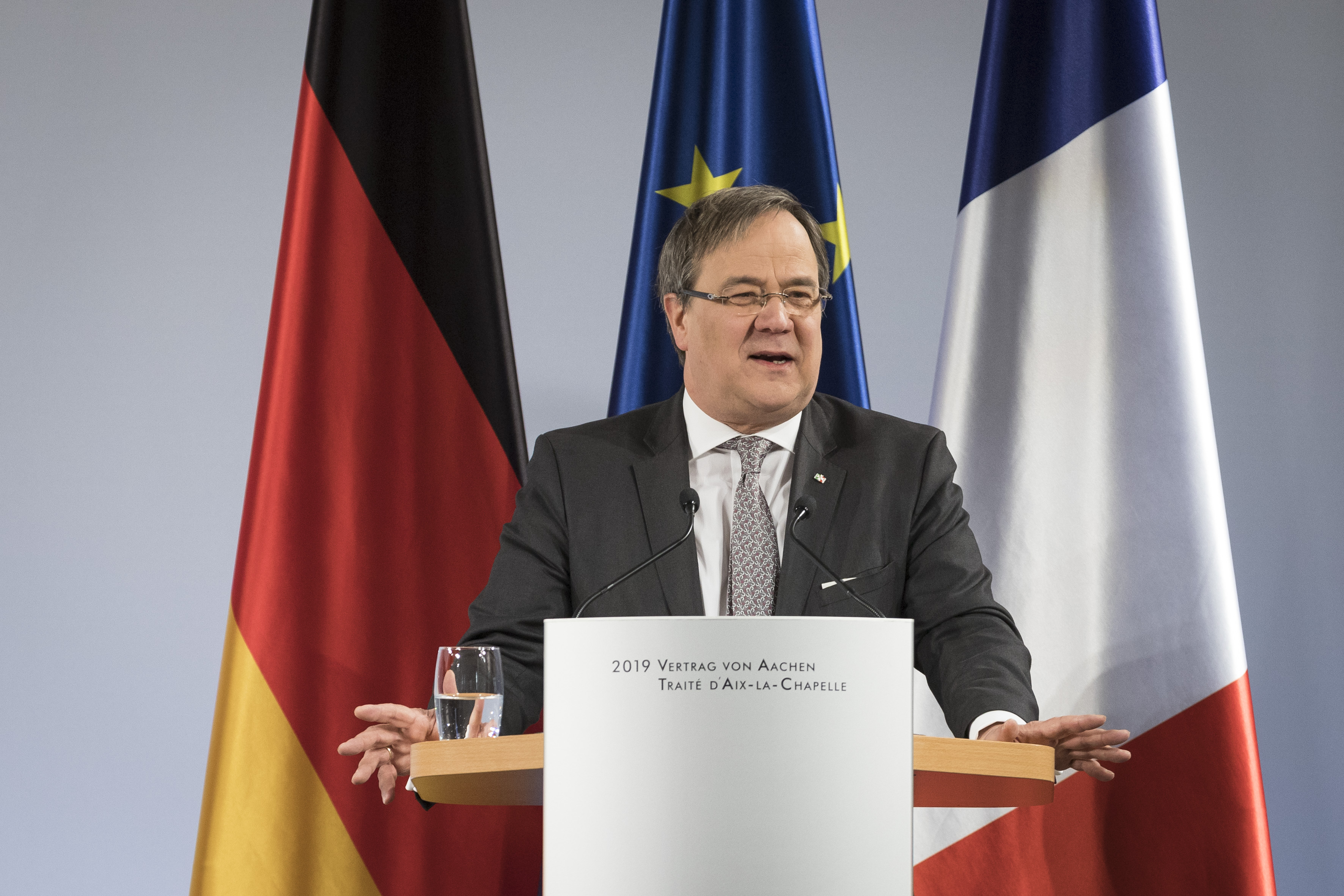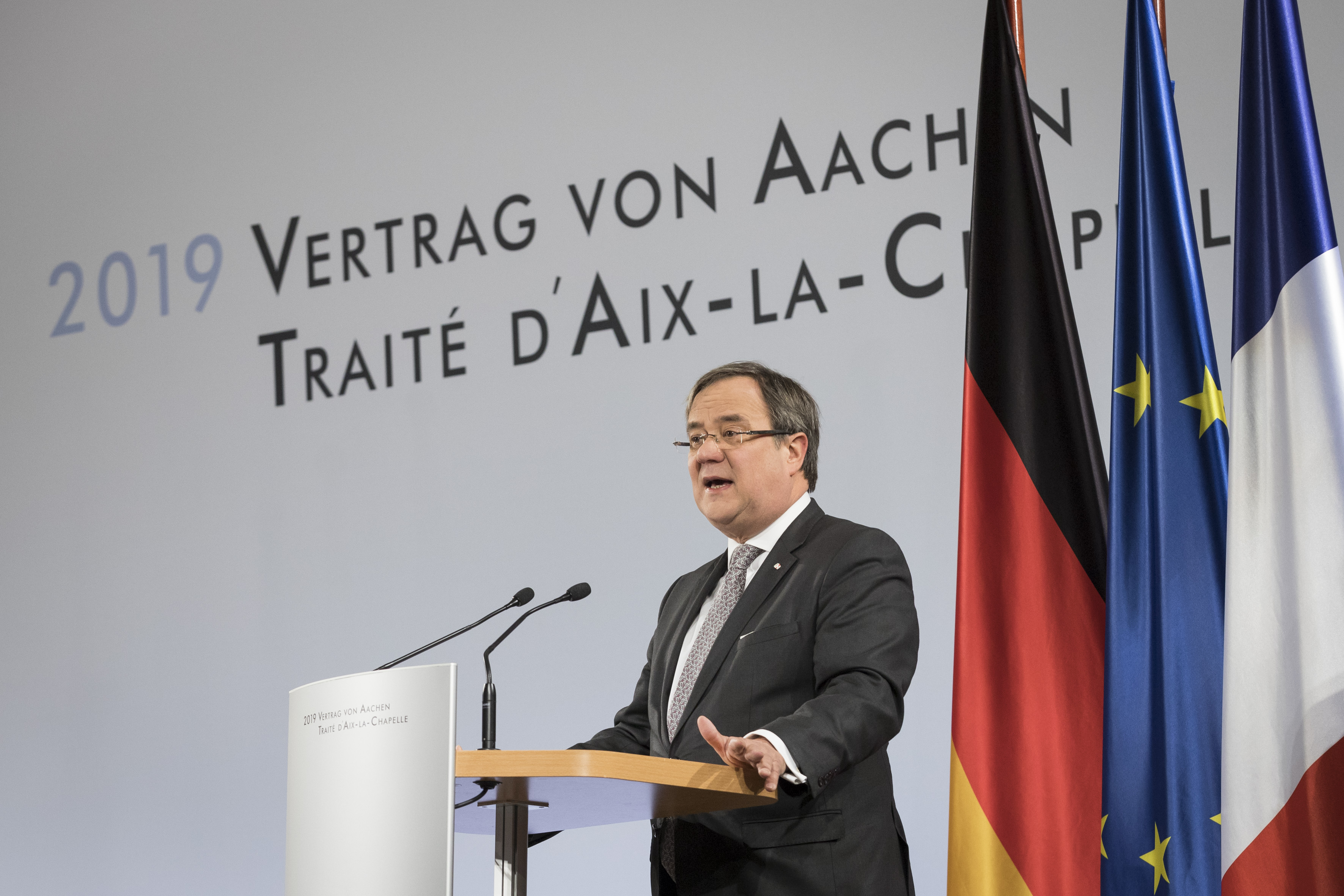 „Aus dem Élysée-Vertrag wird der Aachener Vertrag – exakt 56 Jahre nach der Unterzeichnung des ersten Freundschaftsvertrags. Damit geht von diesem Ort, von diesem Tag eine Botschaft der Freundschaft aus, die die Menschen in Deutschland und Frankreich zusammenbringt. Der Aachener Vertrag wird der europäischen Einigung einen großen Schub geben“, sagte Ministerpräsident Armin Laschet bei der feierlichen Unterzeichnungszeremonie in Aachen. „Es gab in der Geschichte der Europäischen Union wohl kaum einen Moment, in dem es mehr darauf ankam, dass das deutsch-französische Tandem läuft. Gerade jetzt ist dieser neue Vertrag wichtig. Deutschland und Frankreich zeigen damit Handlungsfähigkeit. Er ist das Gegenmodell zu „mein Land first“. Er zeigt, wie die großen Herausforderungen gemeinsam gelöst werden können. Mehr Gemeinsamkeit, mehr Austausch, mehr Europa.“