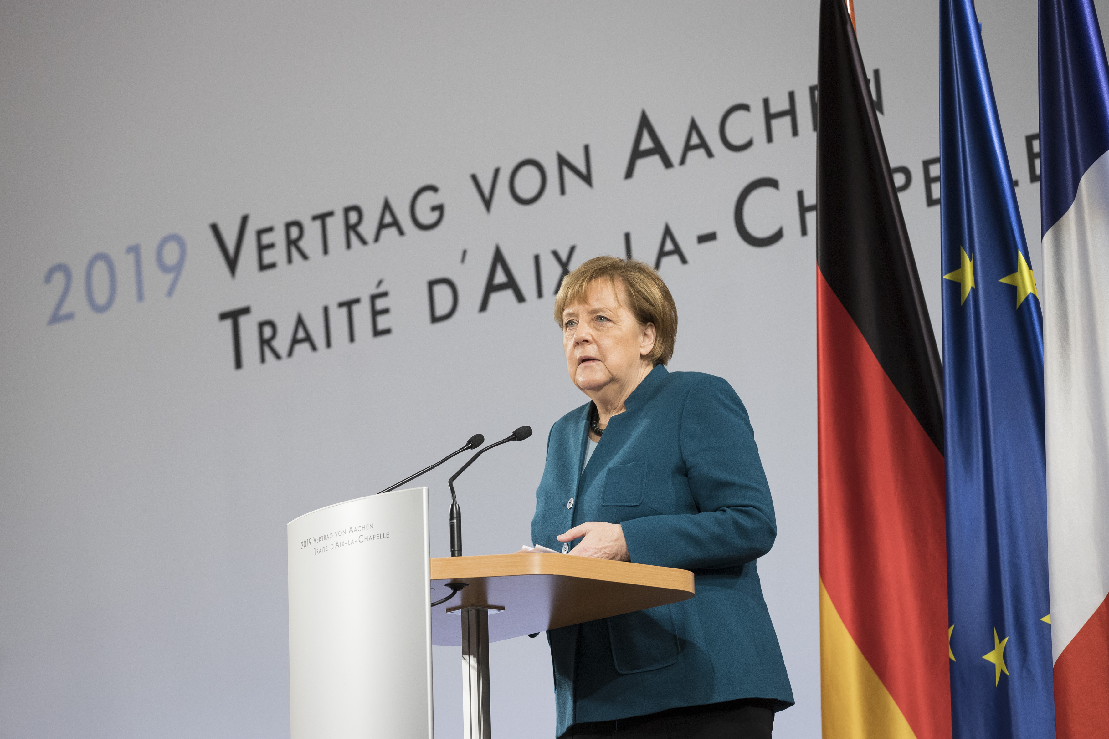 Bundeskanzlerin Angela Merkel und der französische Staatspräsident Emmanuel Macron haben den Deutsch-Französischen Freundschaftsvertrag in Aachen erneuert. In einer Feierstunde im Krönungssaal des Rathauses unterzeichneten beide den Aachener Vertrag, der in Anknüpfung an den Élysée-Vertrag von 1963 die Zusammenarbeit und Integration zwischen Deutschland und Frankreich weiter verstärkt und die engen Beziehungen auf eine neue Stufe hebt.