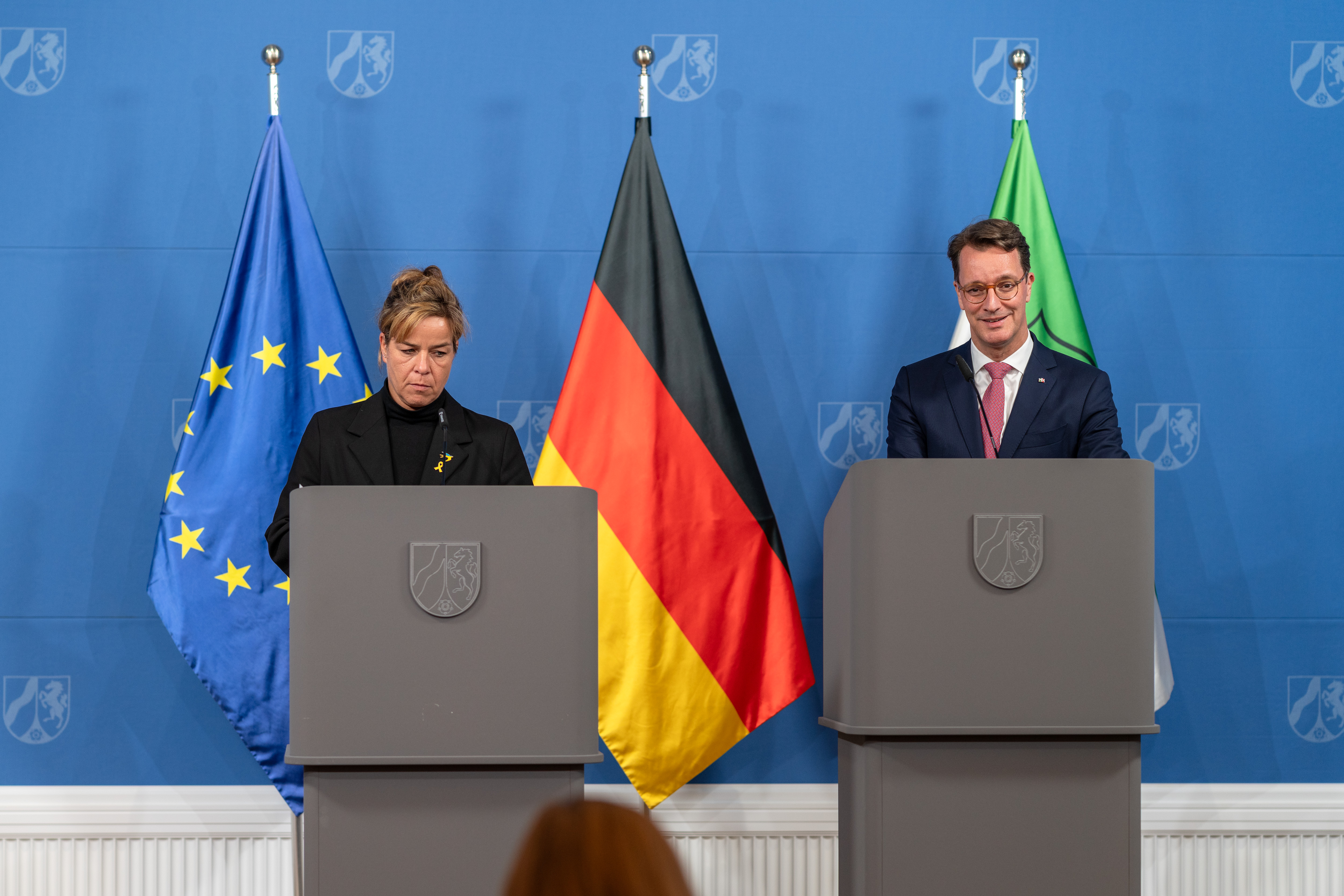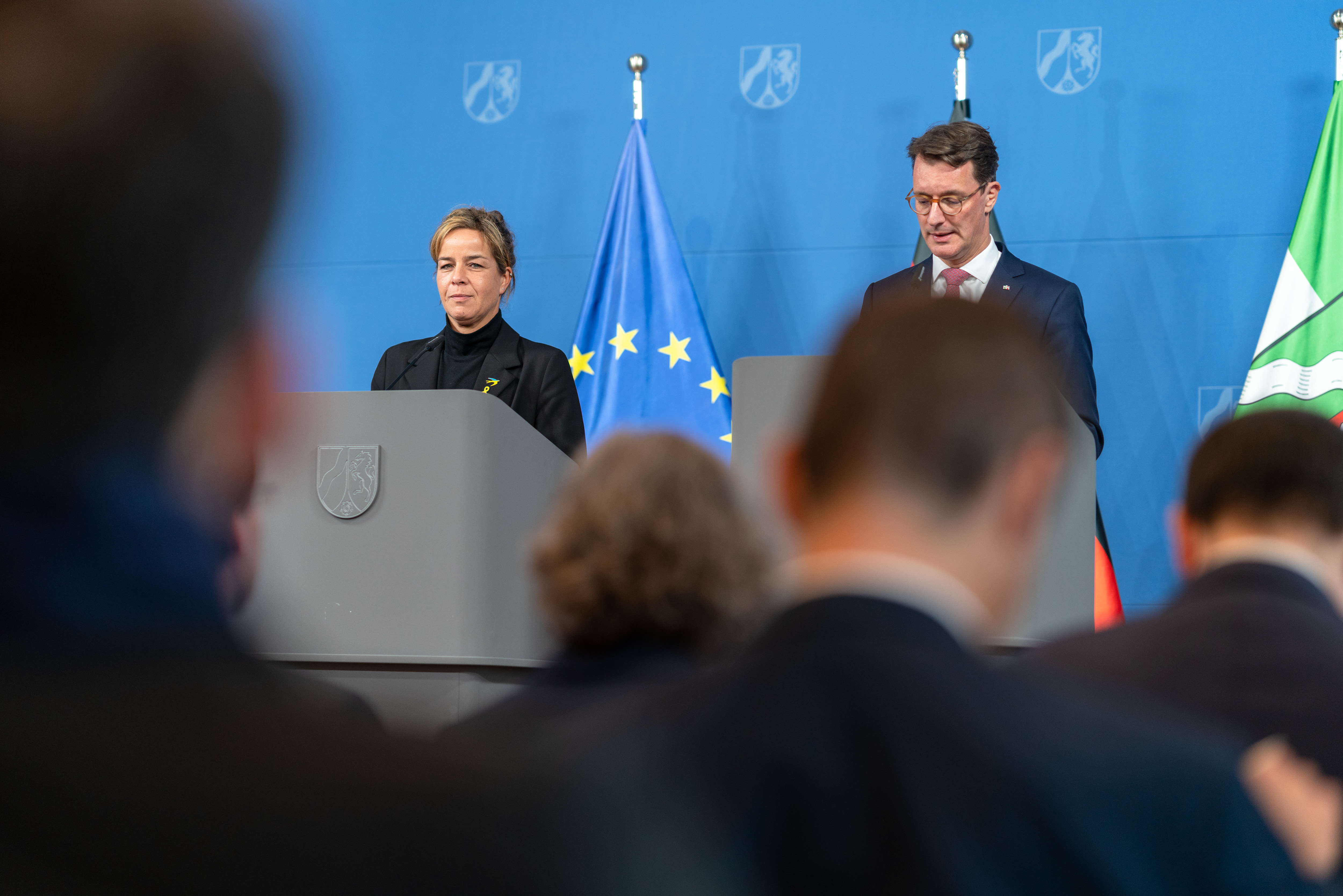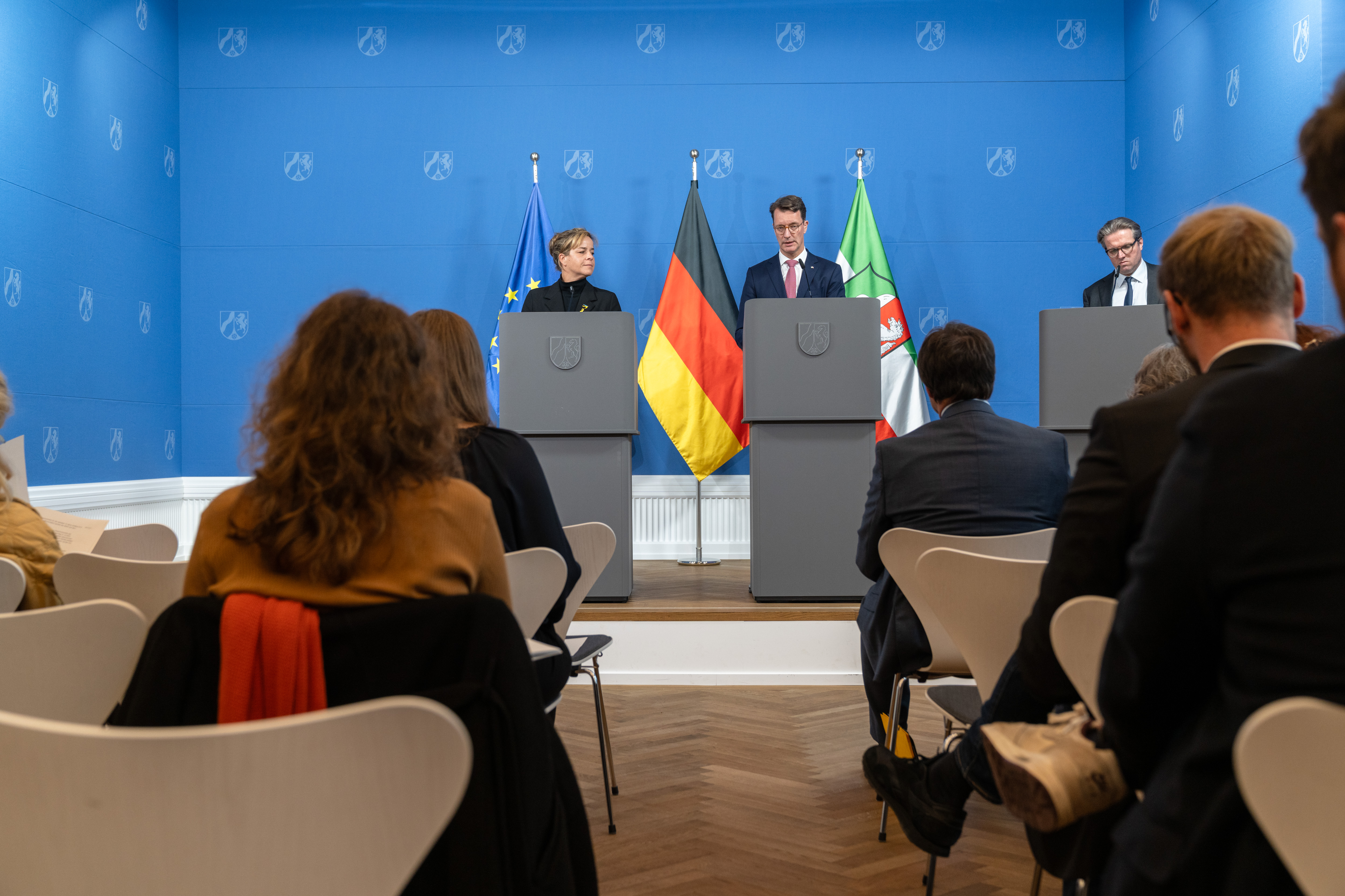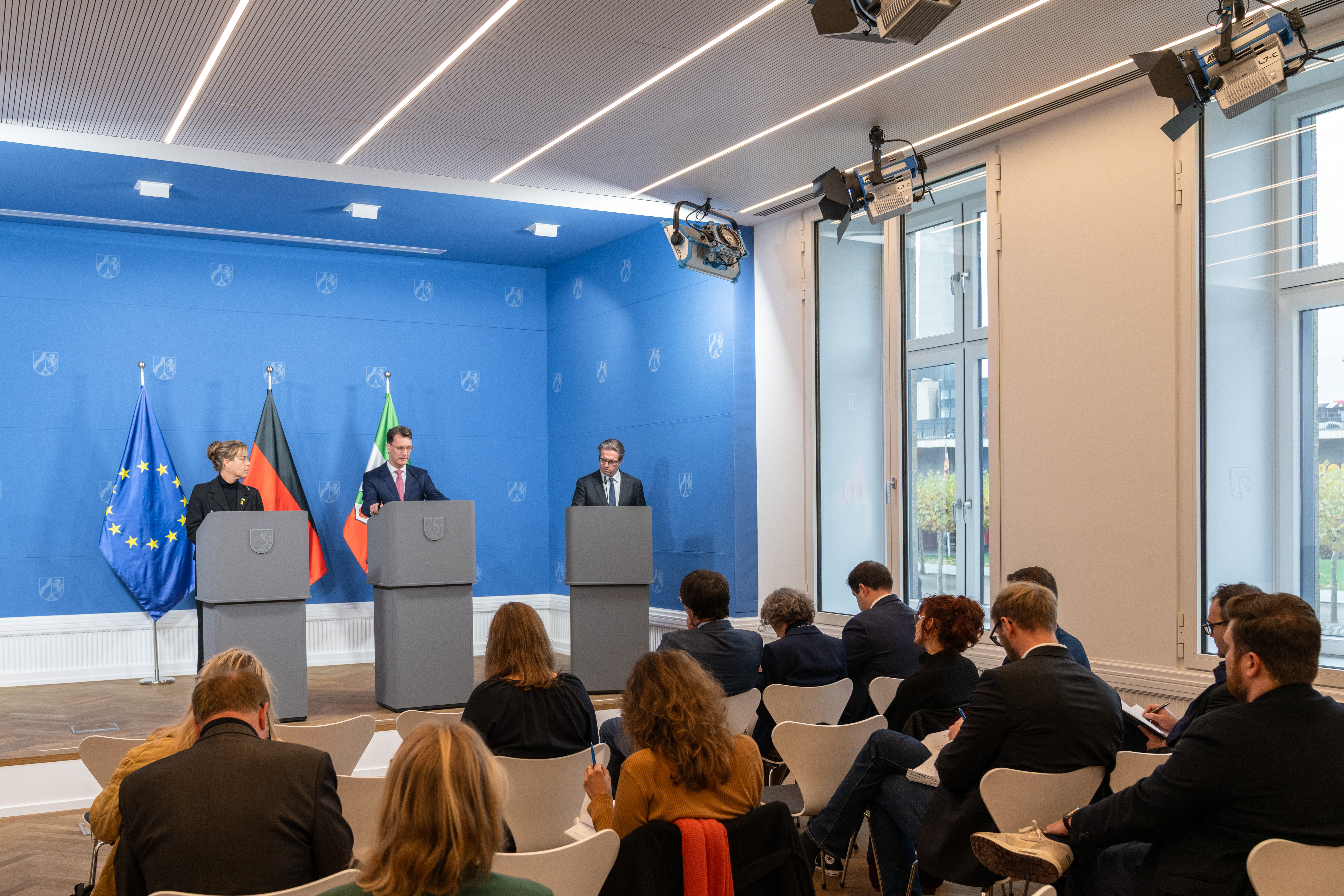 Ministerpräsident Hendrik Wüst hat am Dienstag, 21. Oktober 2025, gemeinsam mit Wirtschaftsministerin Mona Neubaur, Finanzminister Marcus Optendrenk und Kommunalministerin Ina Scharrenbach den „Nordrhein-Westfalen-Plan für gute Infrastruktur“ vorgestellt.