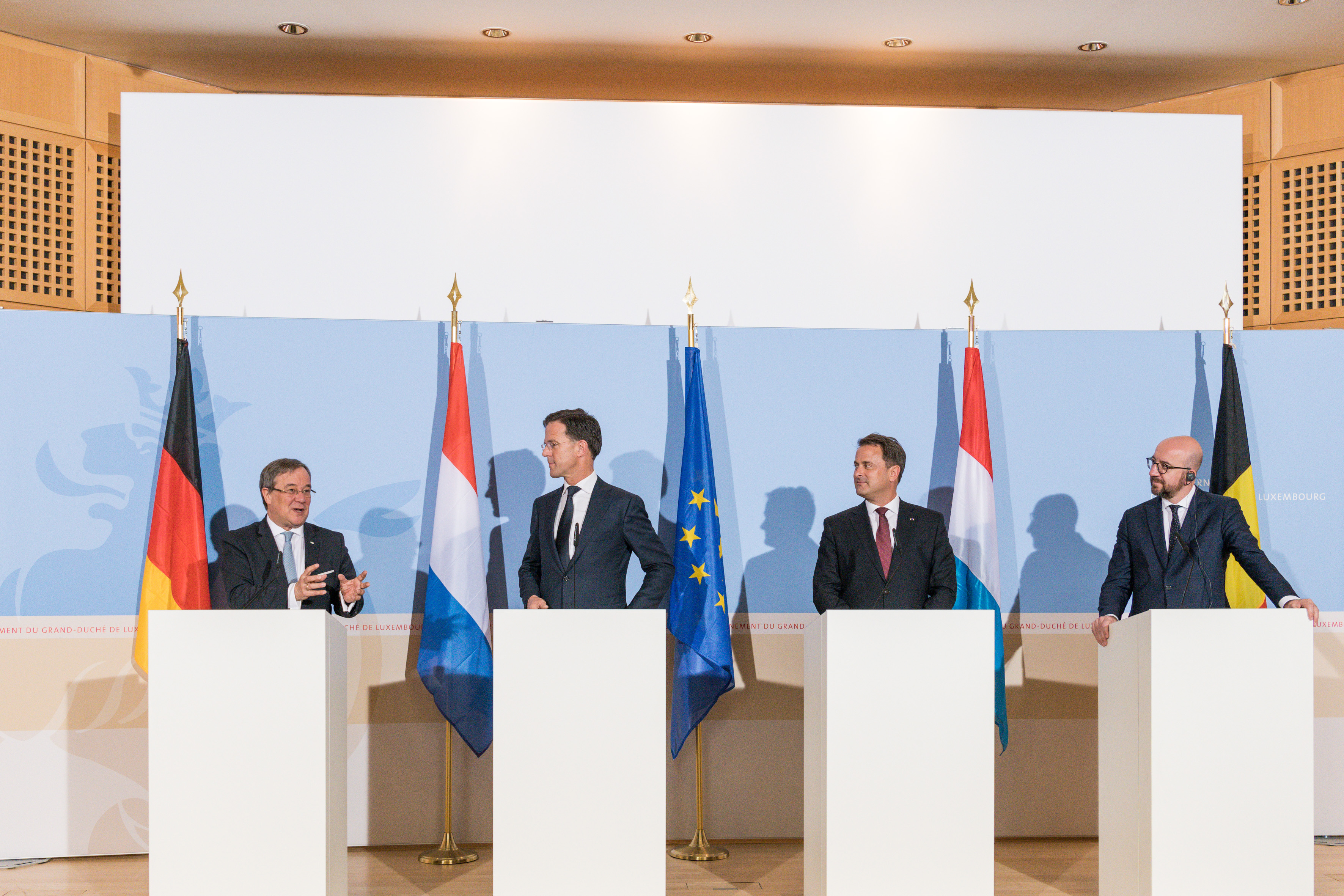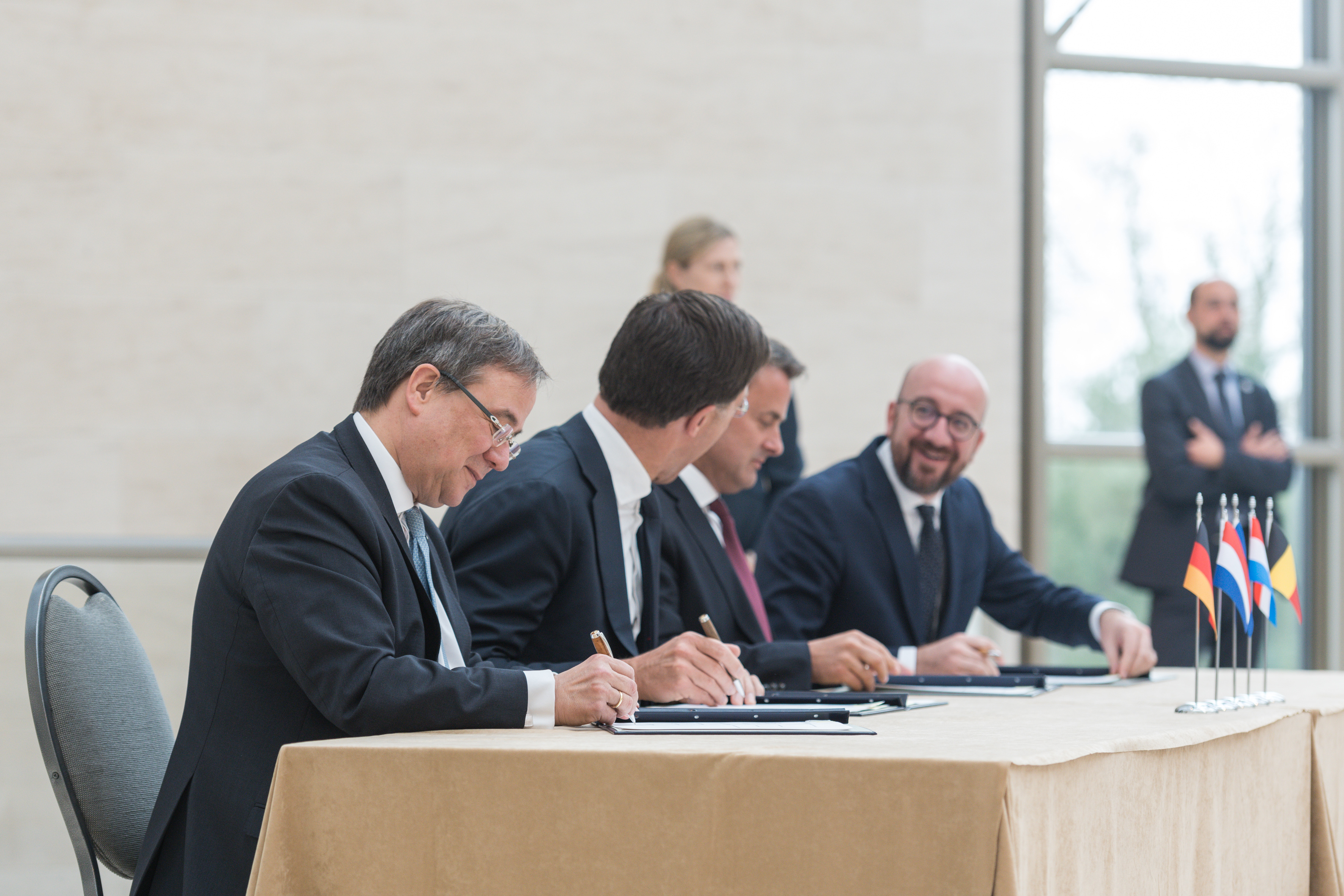 Ministerpräsident Armin Laschet hat gemeinsam mit dem belgischen Premierminister Charles Michel, dem niederländischen Ministerpräsidenten Mark Rutte und dem luxemburgischen Premierminister Xavier Bettel die „Politische Erklärung zur Zusammenarbeit“ zwischen den Benelux-Ländern und Nordrhein-Westfalen erneuert.