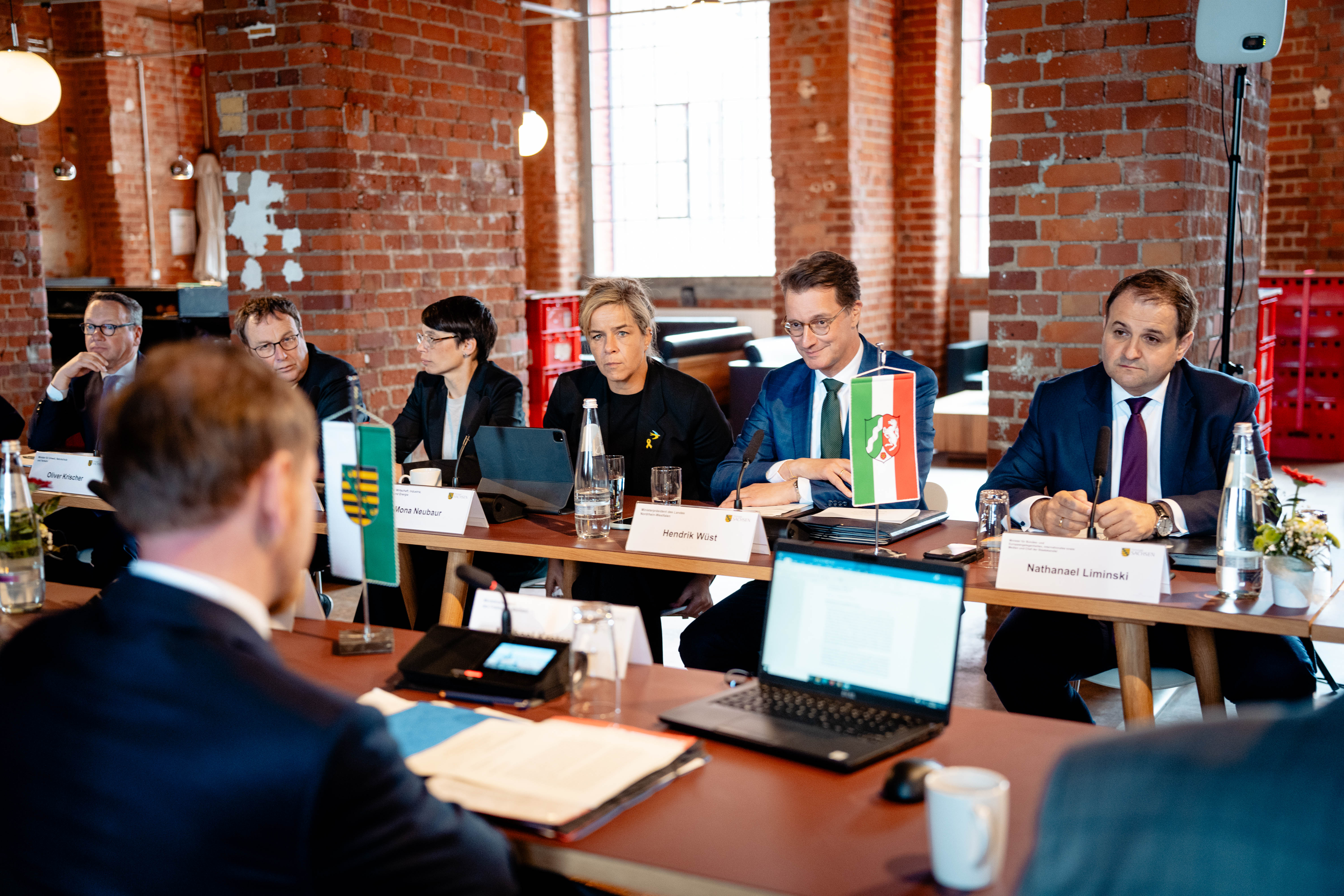 Gemeinsame Sitzung der Landesregierungen in Leipzig: Beschlüsse zu den Themen Wandel durch Technologie, zur Krankenhausreform, zur grenzüberschreitenden Zusammenarbeit und zur Einführung einer Elementarschaden-Pflichtversicherung