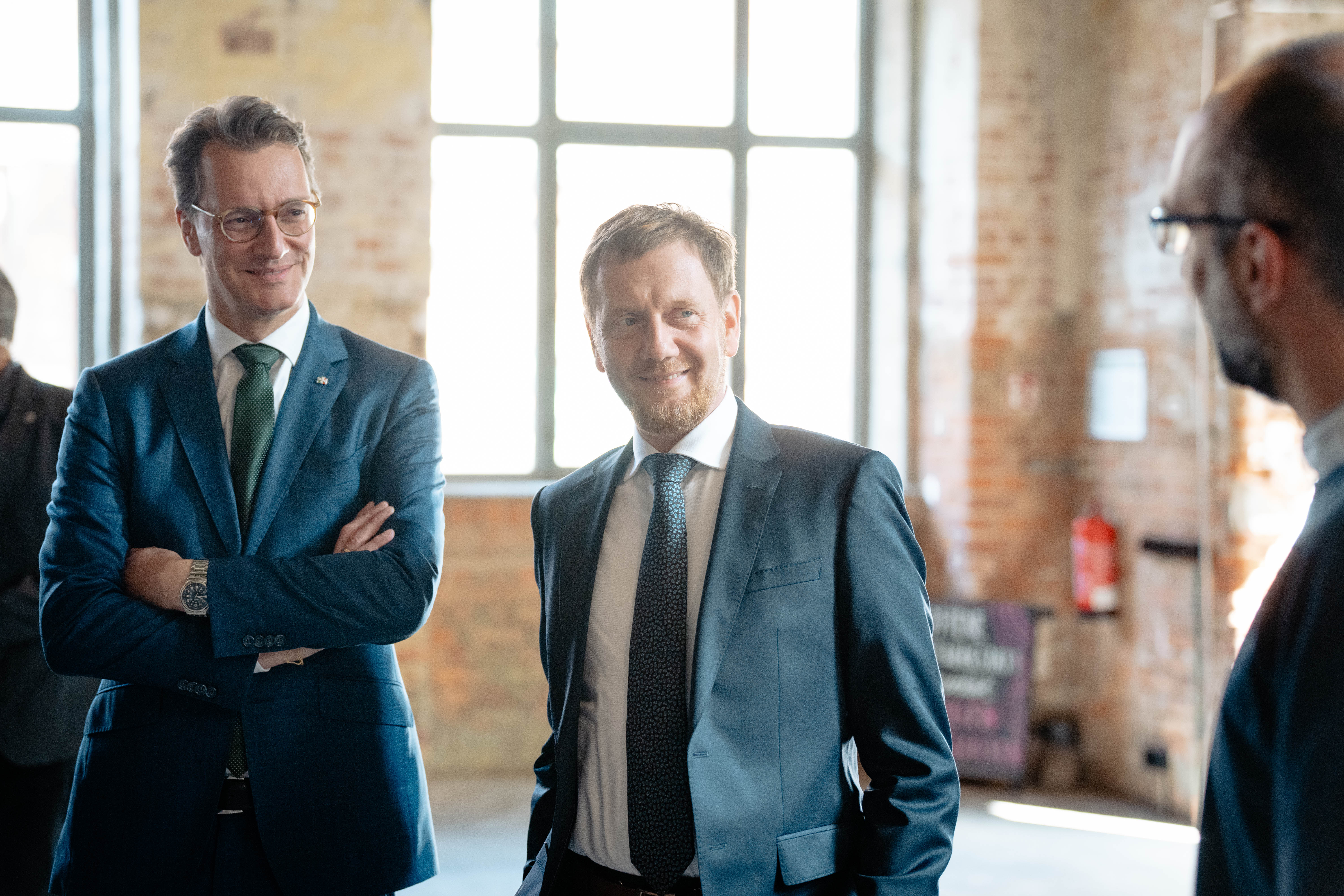 Ministerpräsident Hendrik Wüst: „Nordrhein-Westfalen und Sachsen verbinden gemeinsame Herausforderungen, gerade mit Blick auf den Strukturwandel. Unsere Kooperation zwischen Ost und West hat Tradition. Diese vertrauensvolle Zusammenarbeit wollen wir wahren und ausbauen – gerade mit Blick auf die gemeinsamen Potenziale. Nordrhein-Westfalen und Sachsen gehen gemeinsam einen Weg von der Kohle zur KI. Wir entwickeln uns zu europaweit führenden Standorten für die Entwicklung und Anwendung von KI. Unsere Länder sprechen mit einer gemeinsamen, mit einer starken Stimme beim Bund vor. Wir arbeiten an Politik für die Menschen, für stärkeres Vertrauen und mehr Zusammenhalt zwischen Ost und West.“