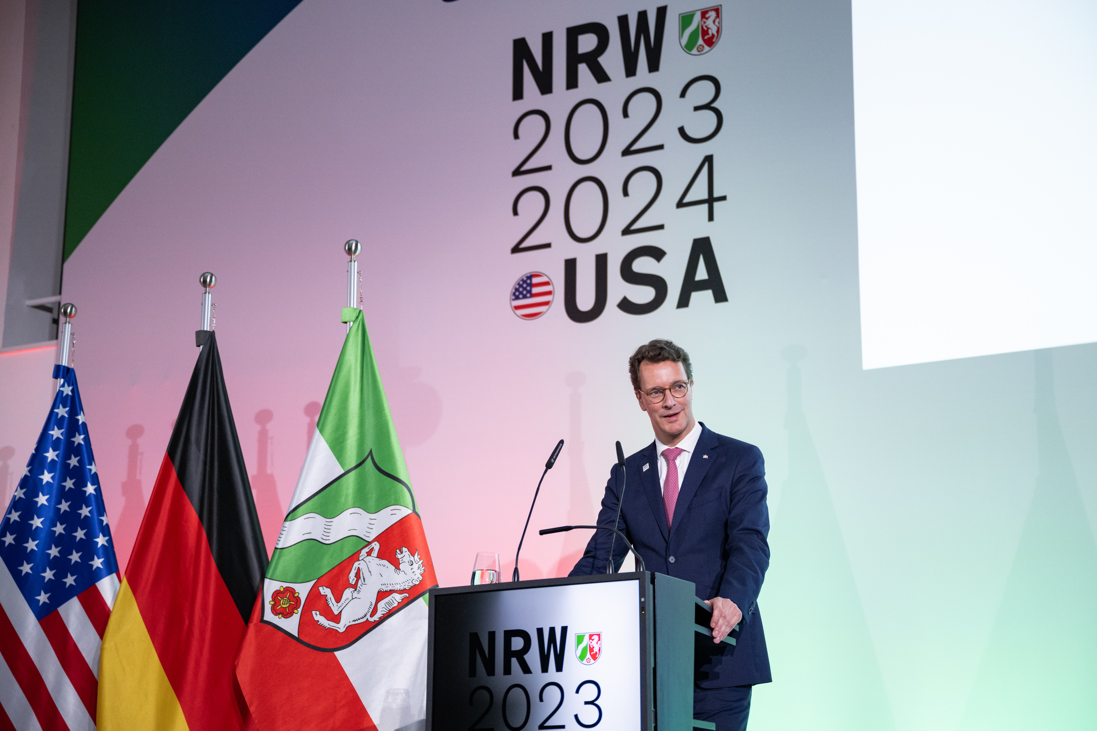 Ministerpräsident Hendrik Wüst: „Nordrhein-Westfalen und die USA sind in tiefer und langjähriger Freundschaft verbunden. Unsere Beziehungen sind heute lebendiger denn je. Zwischen uns passt es einfach – und das wird im NRW-USA-Jahr gefeiert. Gleichzeitig wollen wir in diesem Jahr unser Profil als innovativer und dynamischer Wirtschaftsstandort weiter schärfen und gemeinsam an zukunftsfähigen Lösungen arbeiten, insbesondere mit Blick auf die Transformation unserer Wirtschaft hin zur Klimaneutralität.“