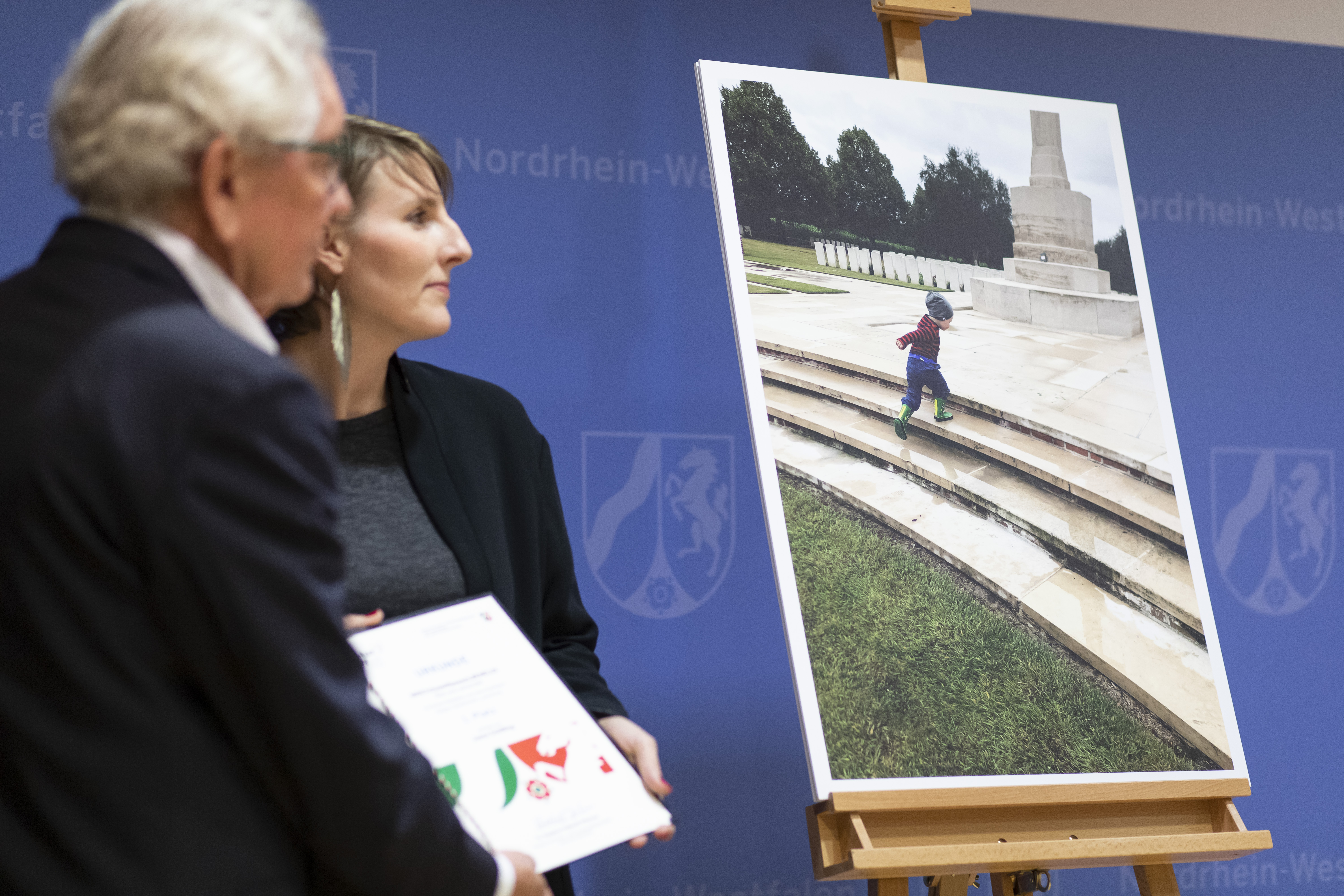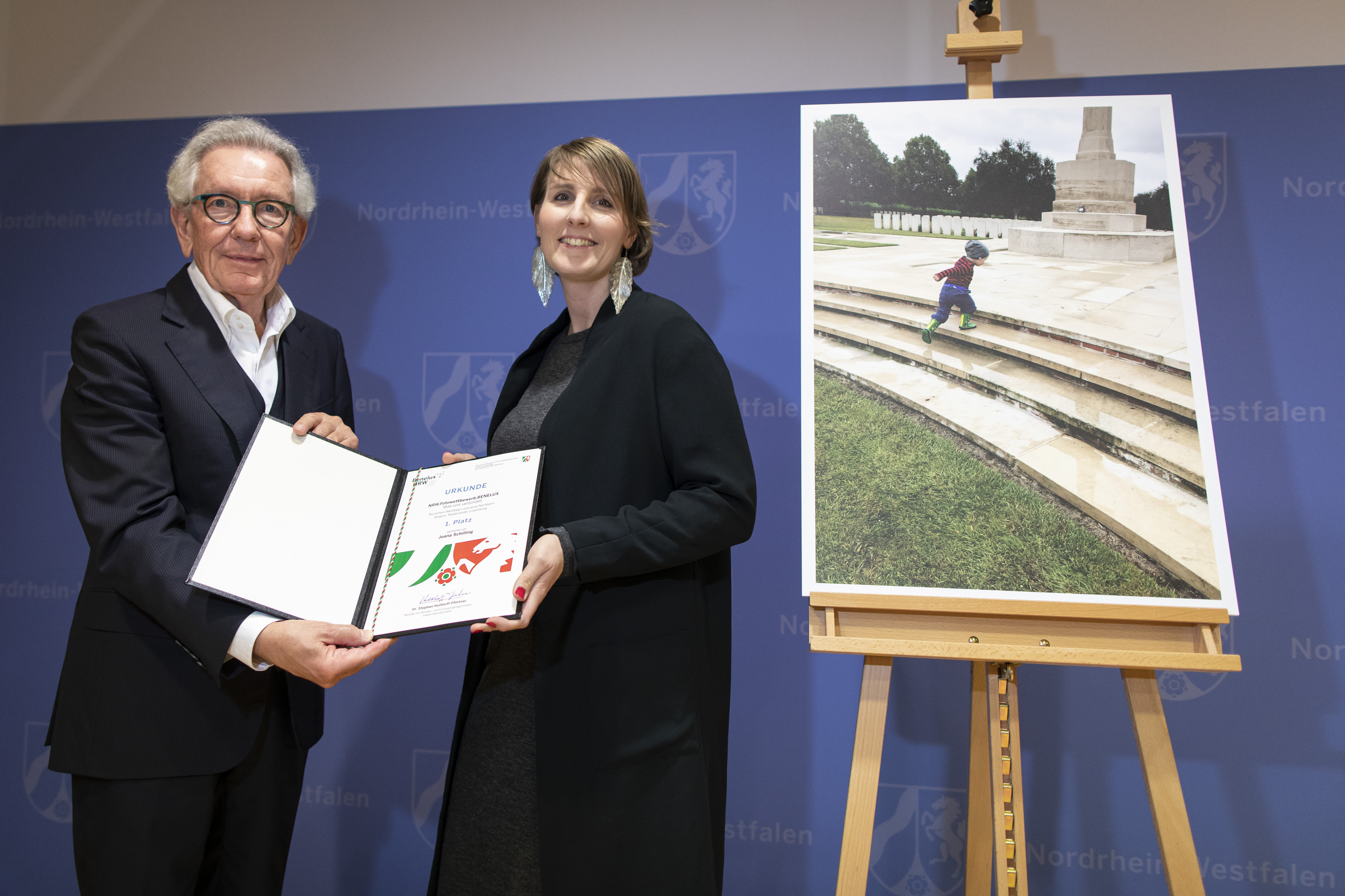 Europaminister Stephan Holthoff-Pförtner hat die Sieger des Fotowettbewerbs zum Beneluxjahr in der Staatskanzlei ausgezeichnet. Mit dem Foto „Europa heute – Kinder statt Krieg“, das ein Kind in der Gedenkstätte im belgischen Ypern zeigt, belegte Joana Schilling aus Ratingen den ersten Platz. Zwei zweite Plätze gingen an die Bilder „Het Gouvernement“ von Cornelia Müller aus Essen und „Das Leben ist schön“ von Güvendik Demirhan aus Lünen.