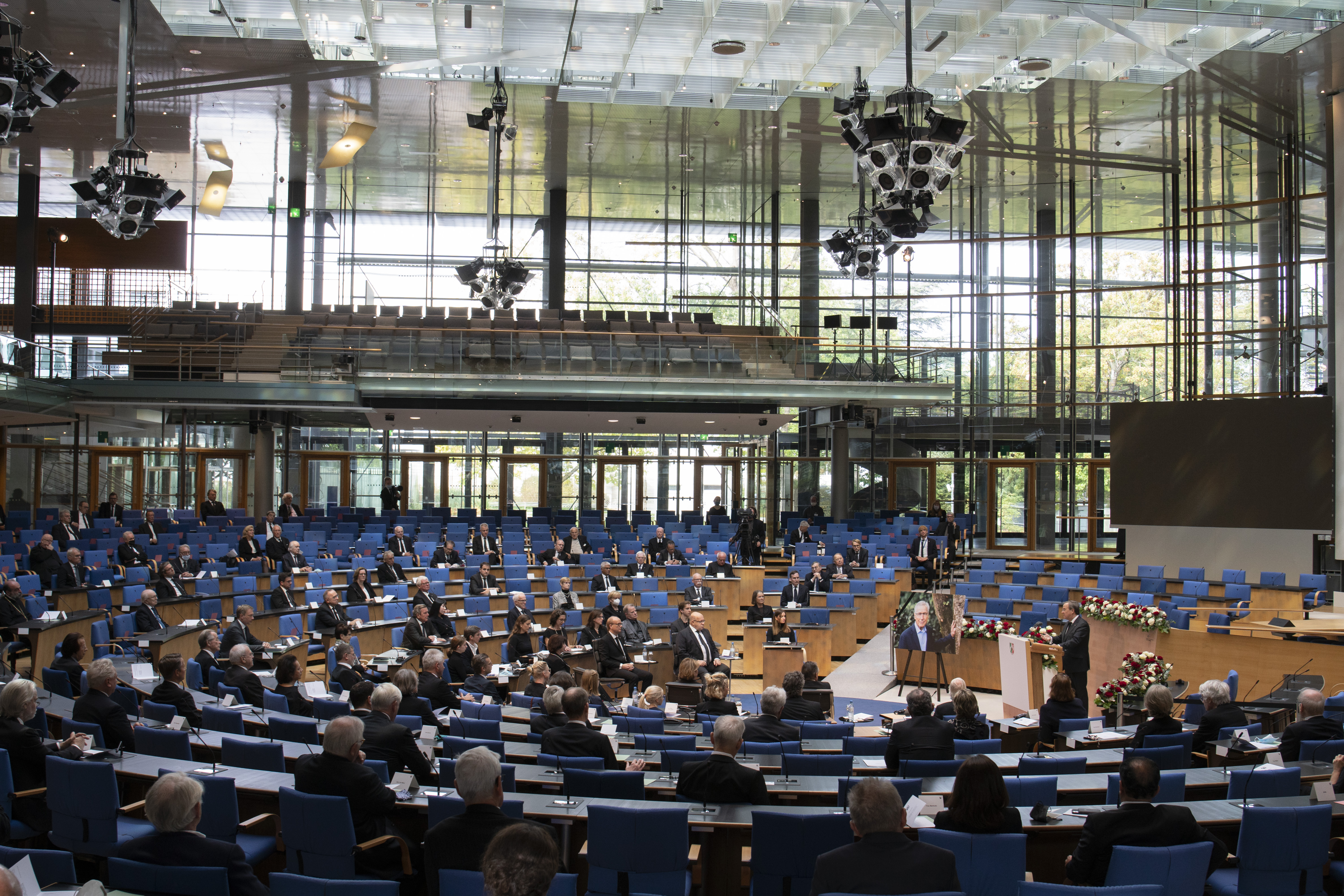Mit einem Staatsakt auf Einladung von Ministerpräsident Armin Laschet und Landtagspräsident André Kuper hat das Land Nordrhein-Westfalen am Dienstag, 13. Oktober 2020, Abschied von Ministerpräsident a.D. Wolfgang Clement genommen.