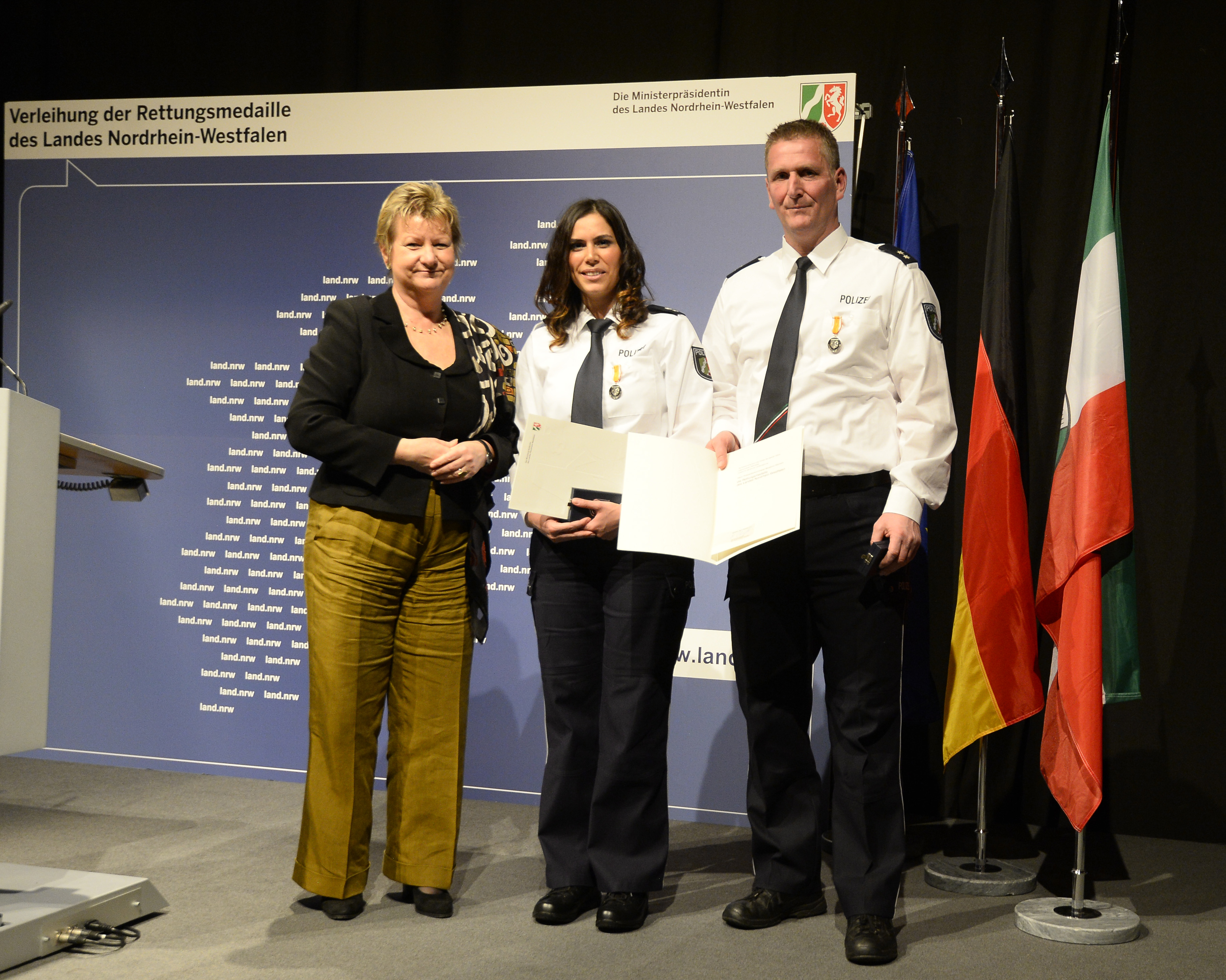 Stellvertretende Ministerpräsidentin Löhrmann zeichnet 31 Lebensretter mit der Rettungsmedaille des Landes Nordrhein-Westfalen aus