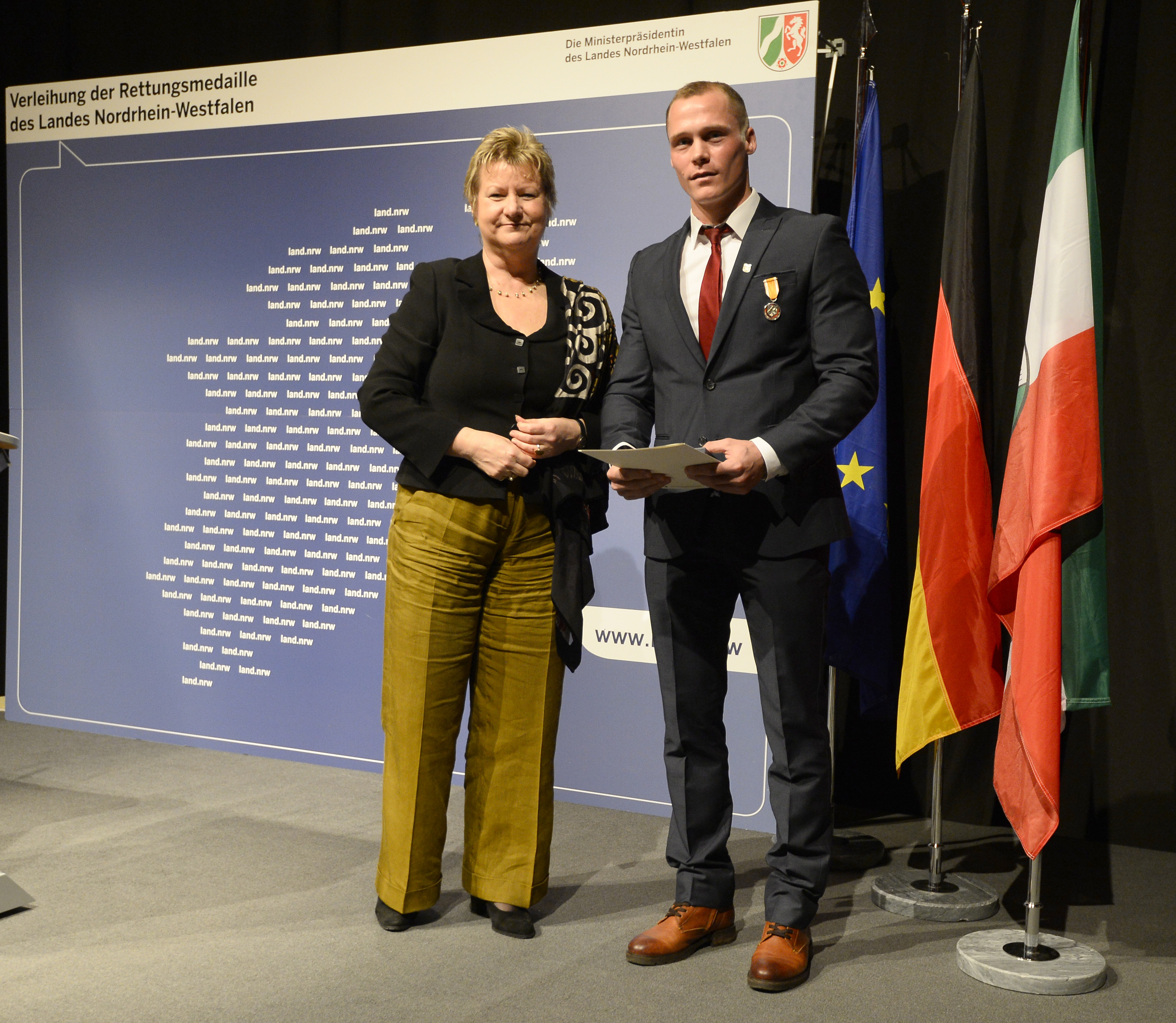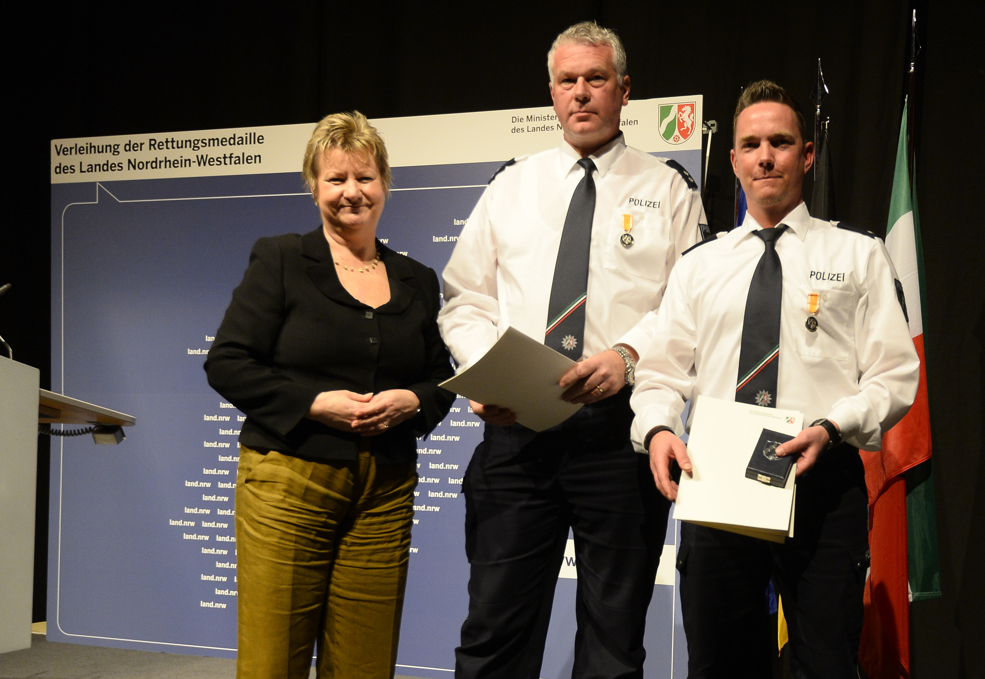 Rettungsmedaille für Polizeioberkommissar Thomas Erdlenbruch aus Essen und Polizeikommissar Sascha Sven Weirauch aus Bottrop