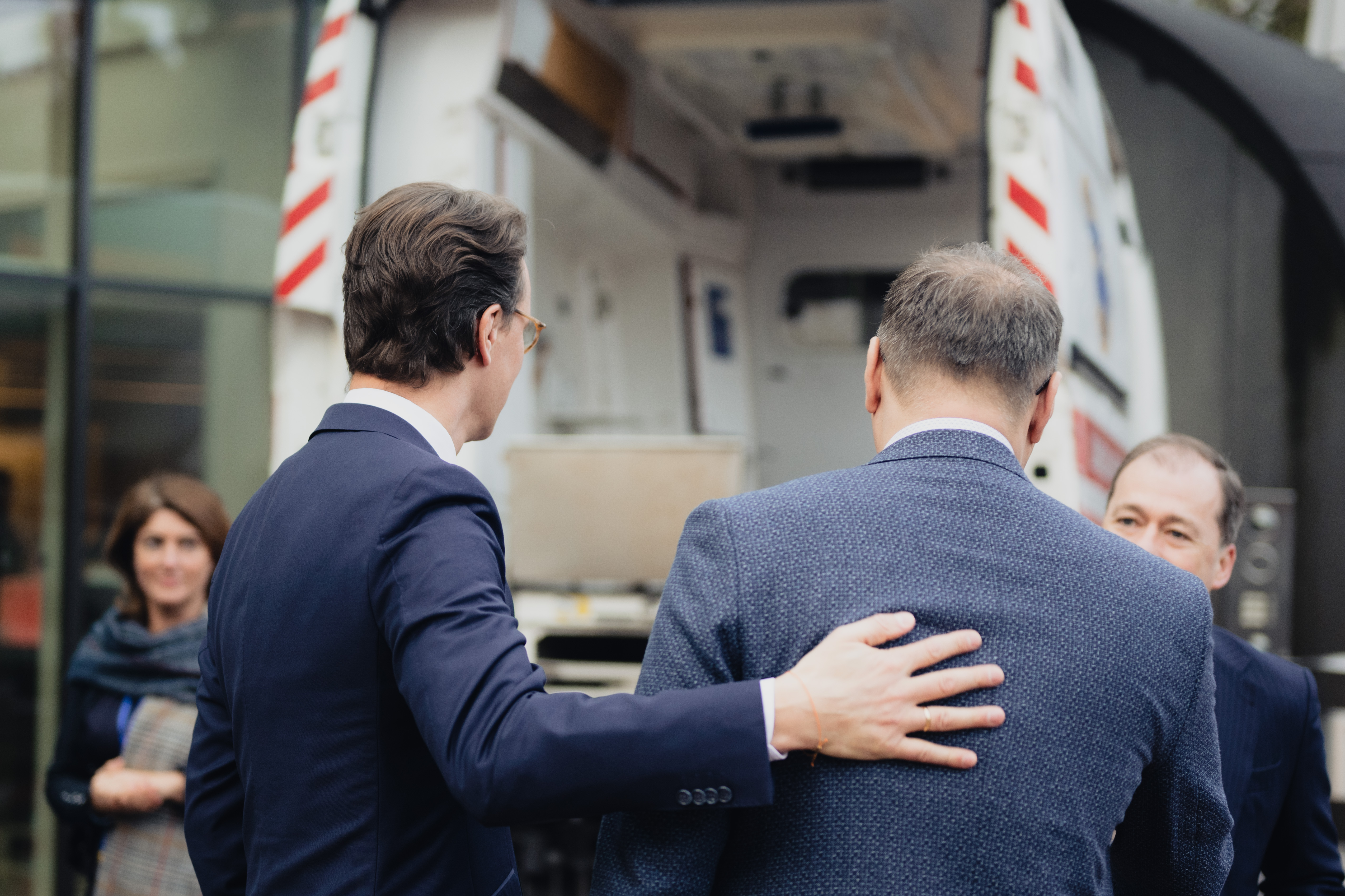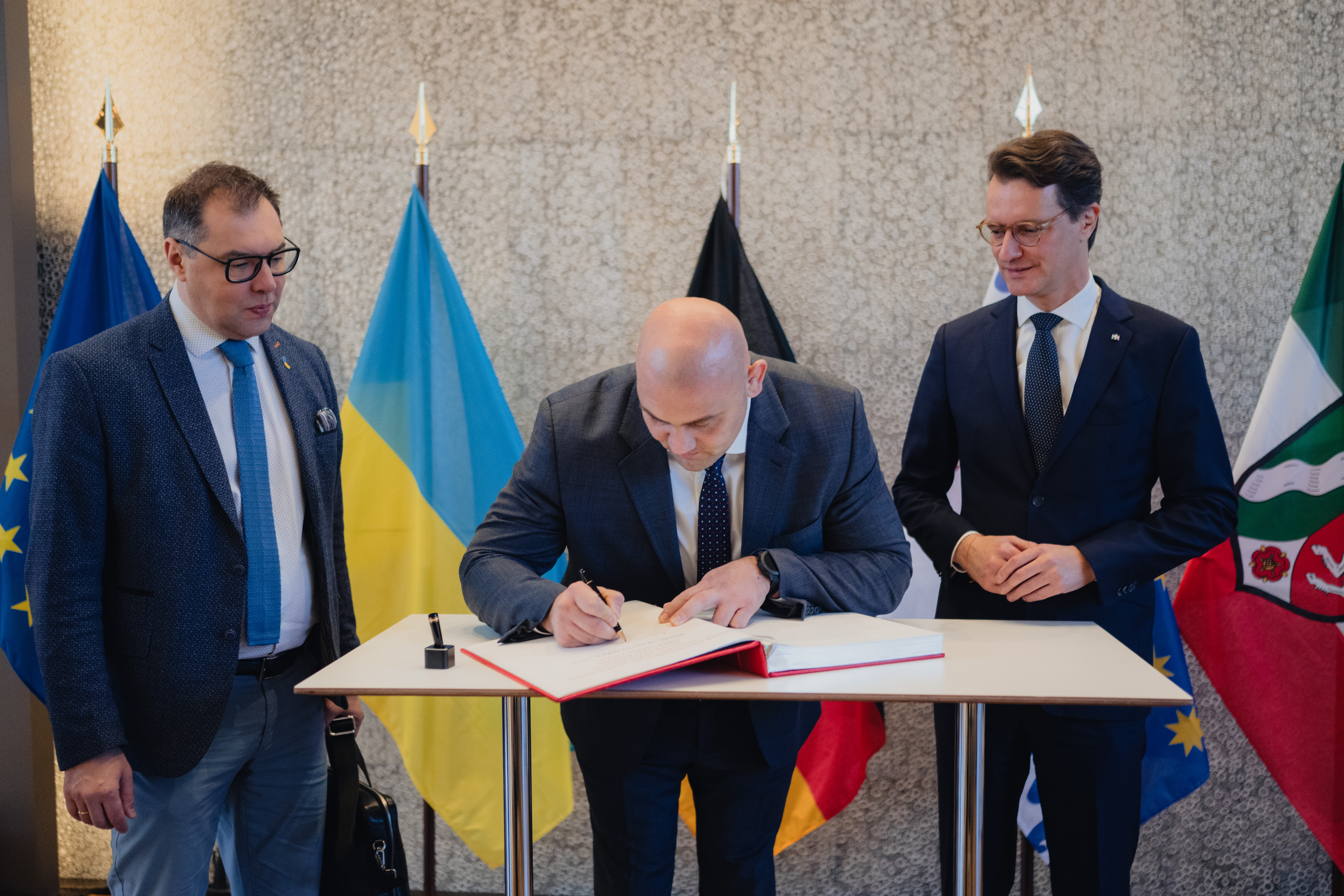 Am Nachmittag wird Europaminister und Chef der Staatskanzlei Nathanael Liminski symbolisch sechs Feuerwehr- und Polizeifahrzeuge an den Gouverneur der Oblast Dnipropetrowsk, Serhii Lysak, übergeben.