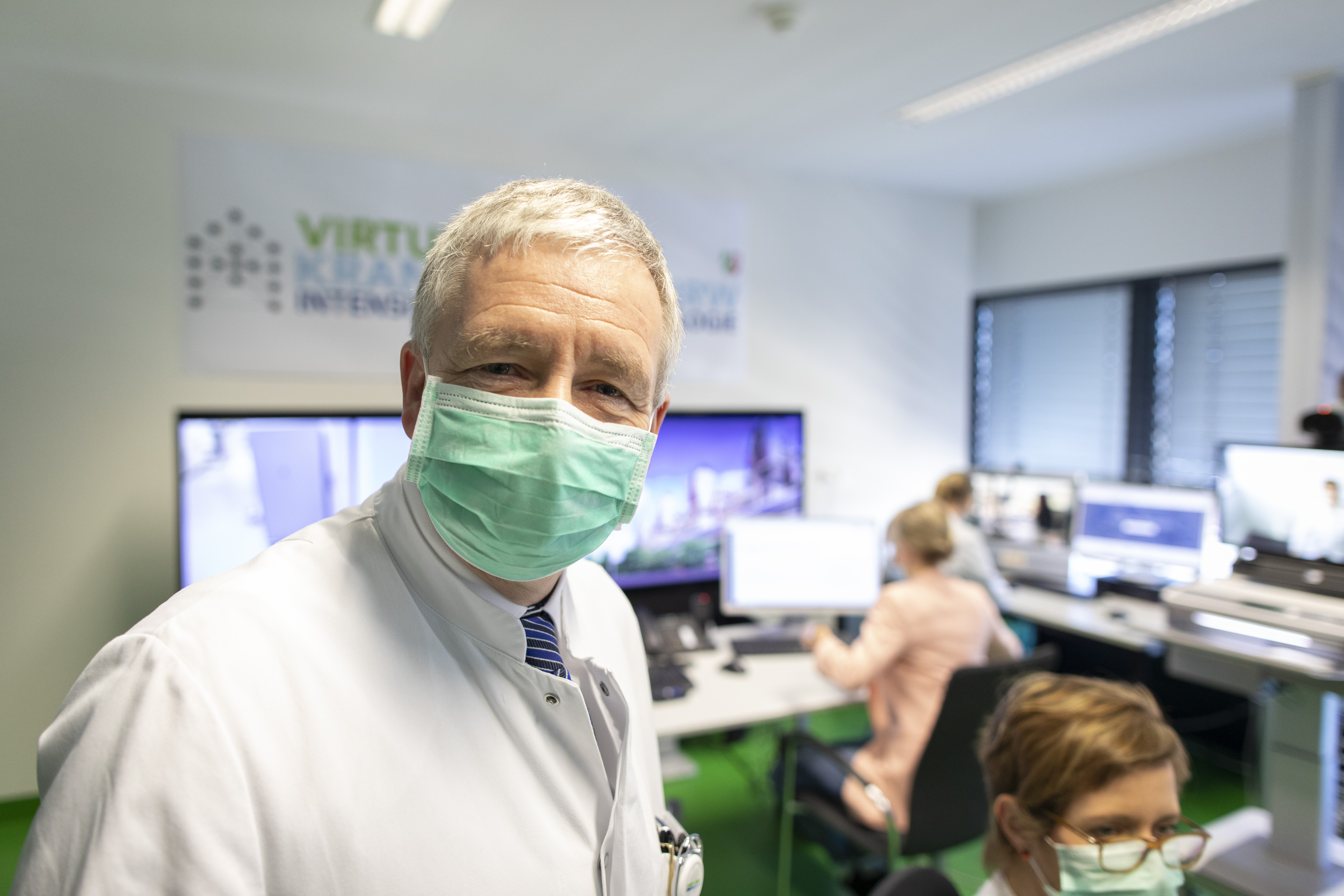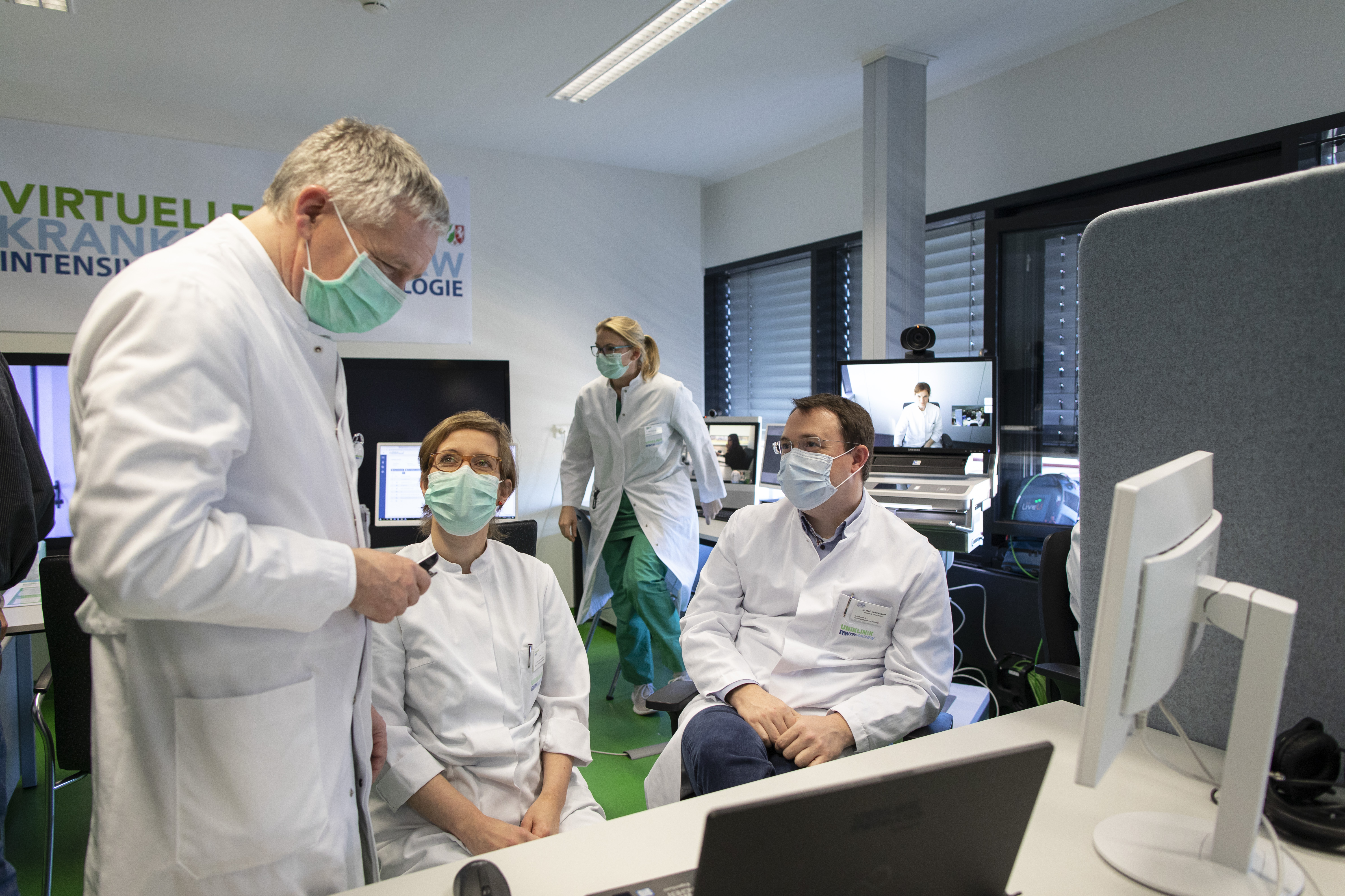 Für den zu erwartenden Bedarf im Rahmen der Covid-19-Pandemie muss deshalb die Behandlungsexpertise der Maximalversorger auch für die Häuser der Grund- und Regelversorgung und den dort befindlichen über 3.000 Intensivbetten so umfassend wie möglich verfügbar gemacht werden. Durch den Einsatz von Tele-Intensivmedizin kann die Zahl erforderlicher Intensivbetten mit adäquater medizinischer Expertise kurzfristig effektiv gesteigert und die erforderliche Behandlungsressource für Nordrhein-Westfalen im Idealfall mehr als verdoppelt werden. Durch den Rückgriff auf die eingespielten Ressourcen der beiden Unikliniken Aachen und Münster ist mit dem jetzt startenden Virtuellen Krankenhaus kurzfristig eine erhebliche Steigerung des in Nordrhein-Westfalen nutzbaren Intensivbettenpotentials möglich.