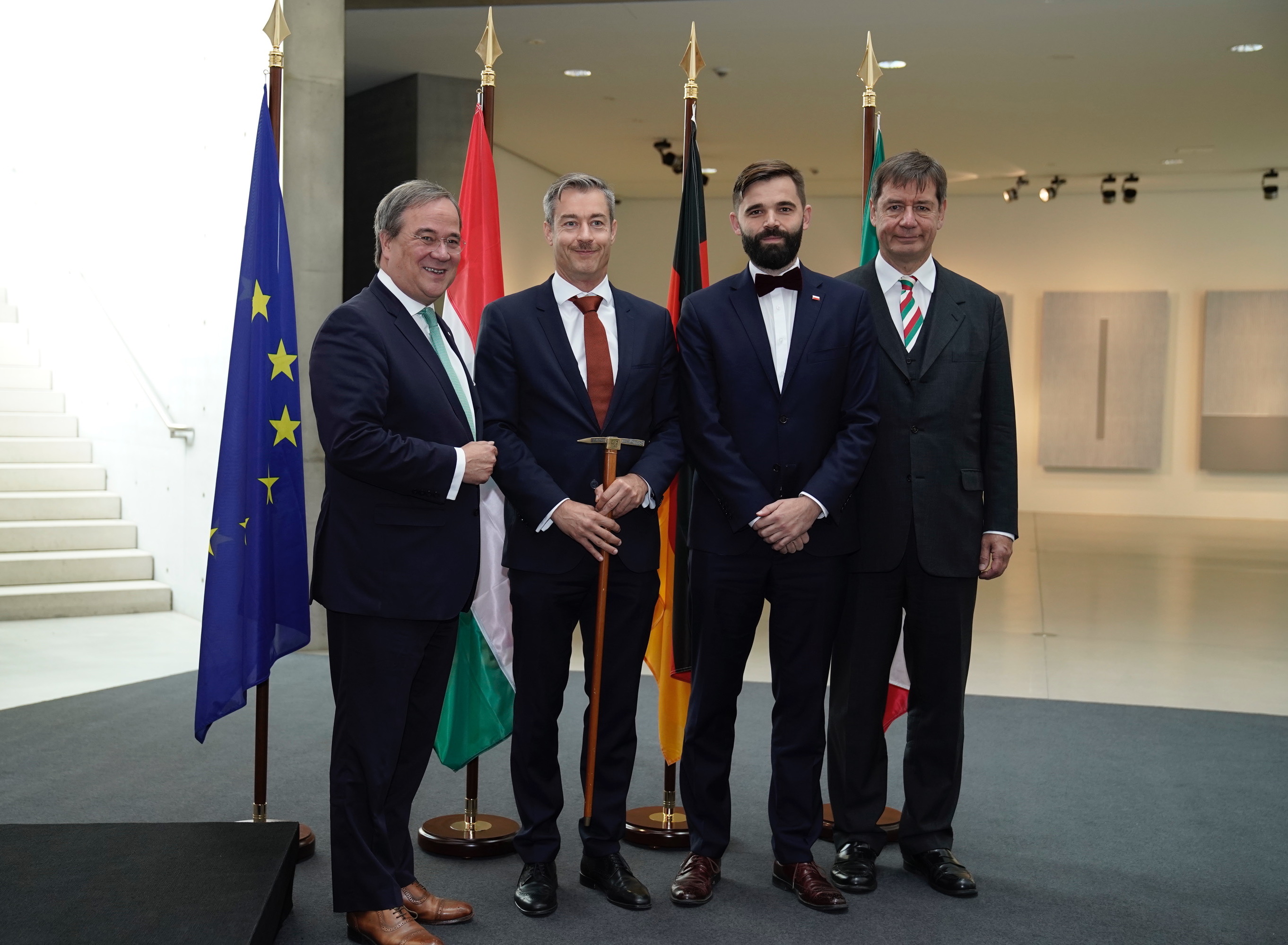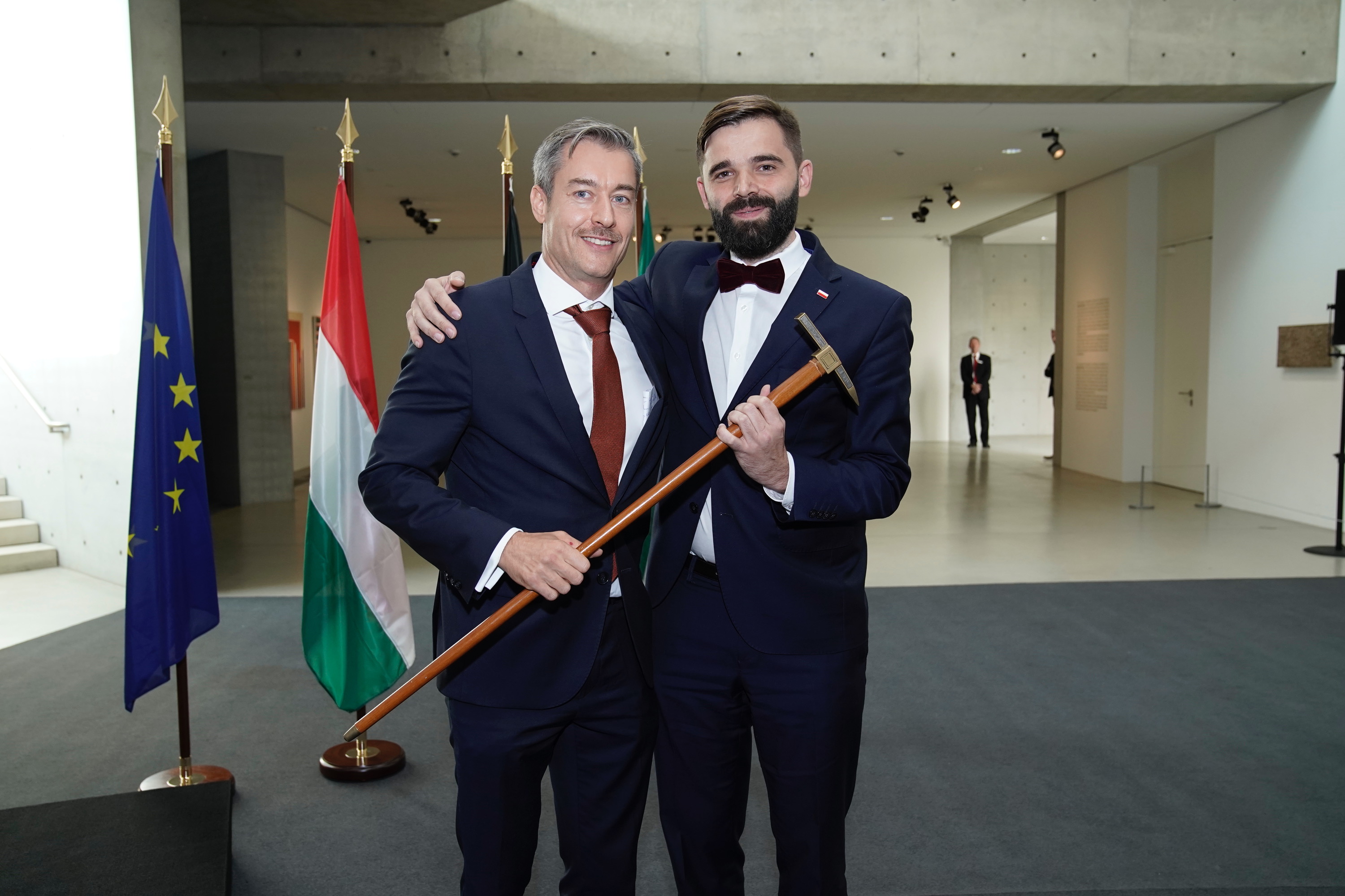 Bei der Feierstunde in der Langen Foundation, an der neben Vertreterinnen und Vertretern des Konsularischen Korps auch Repräsentanten aus der Landespolitik, Wirtschaft und Kultur teilnahmen, übergab der scheidende Doyen Szegner den symbolischen Doyenstab – eine Bergmannshacke – an den neuen Doyen Wawrzyniak.