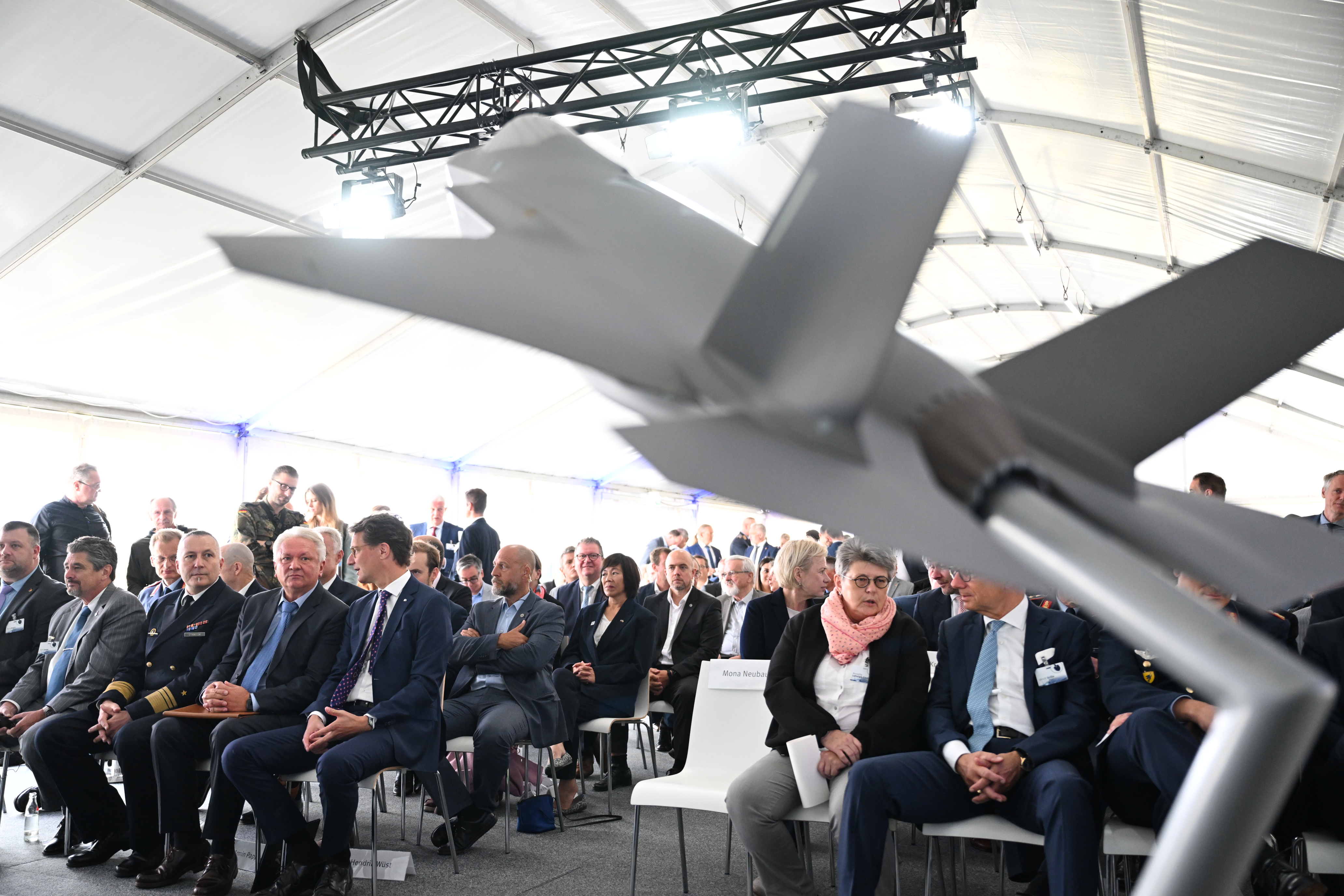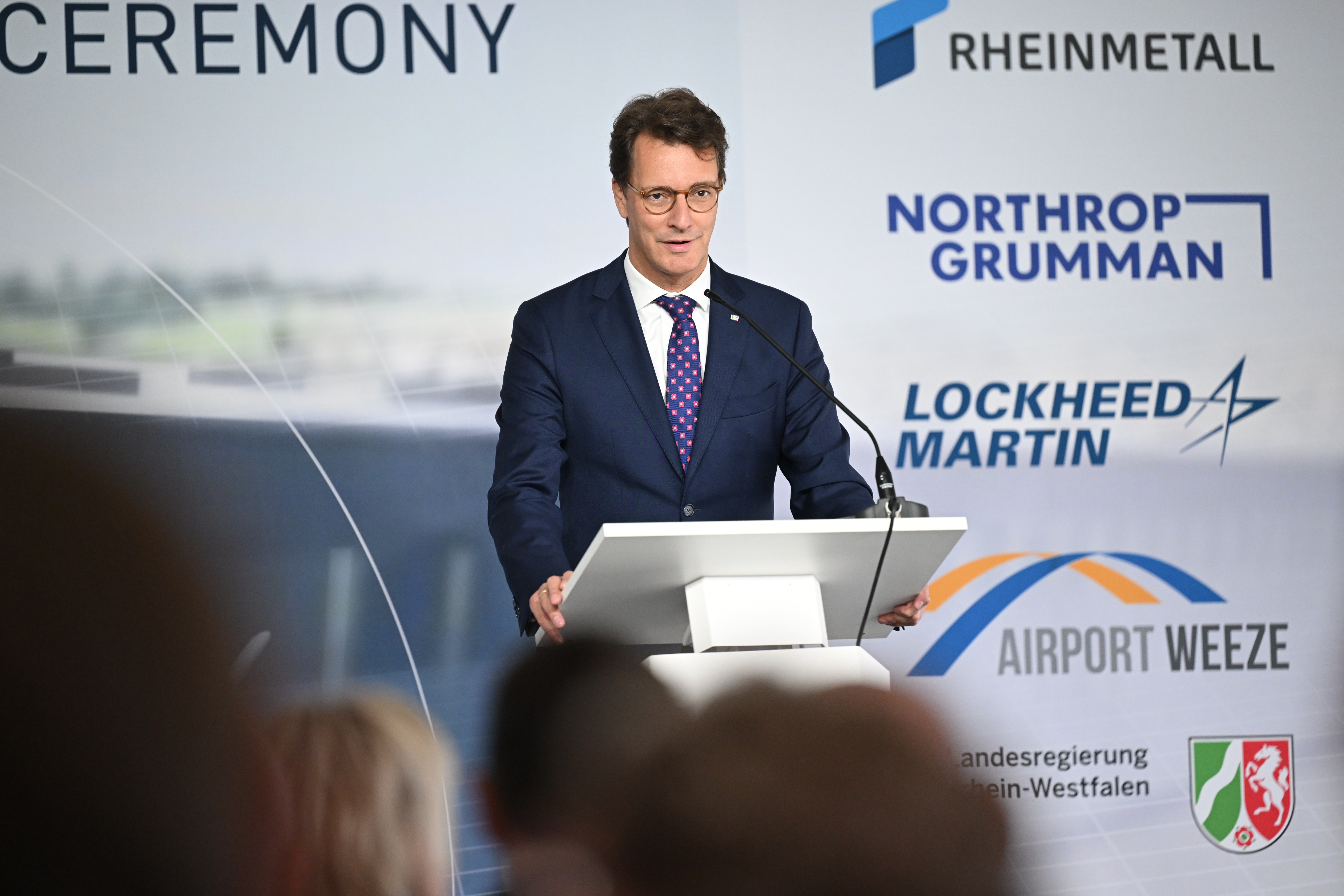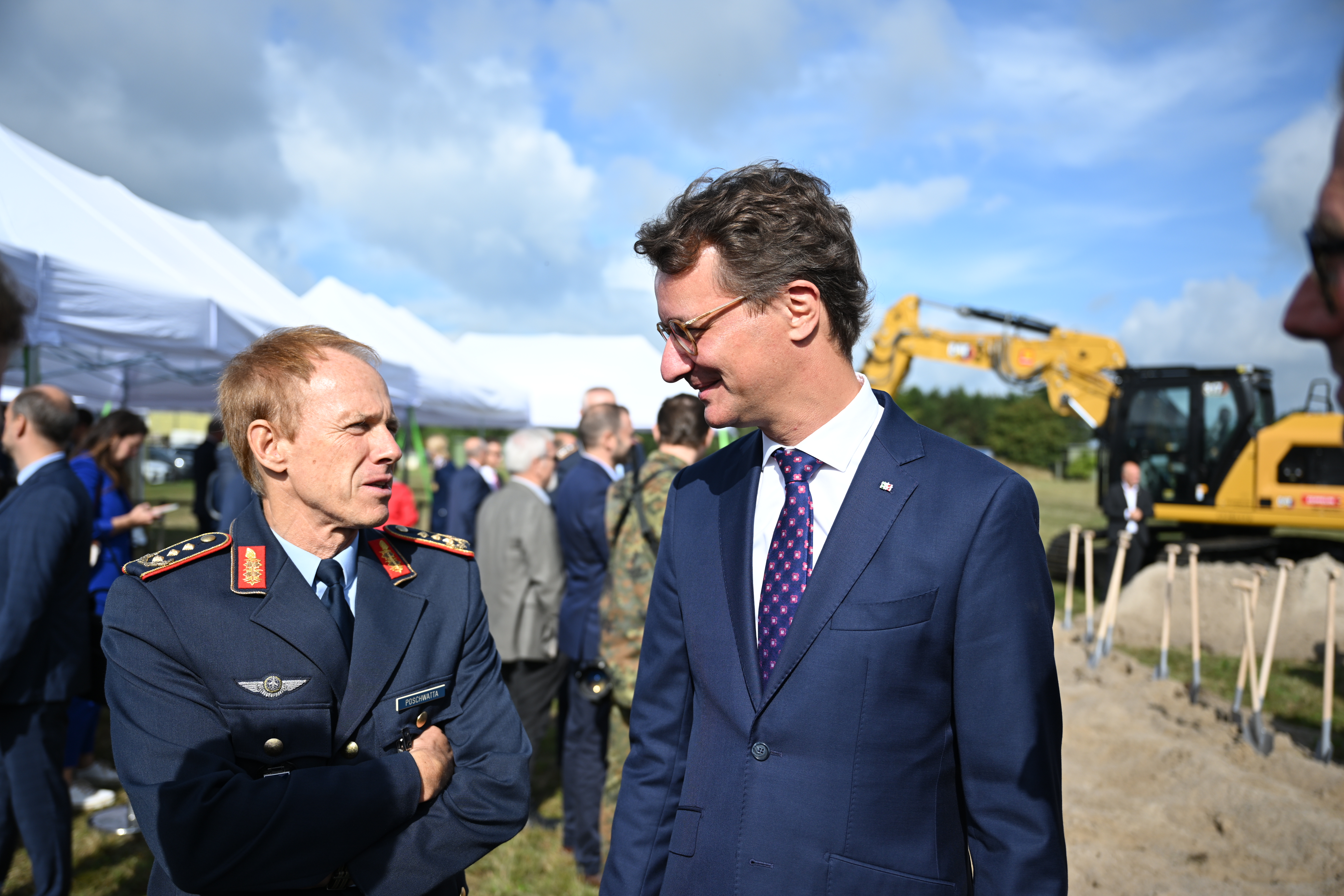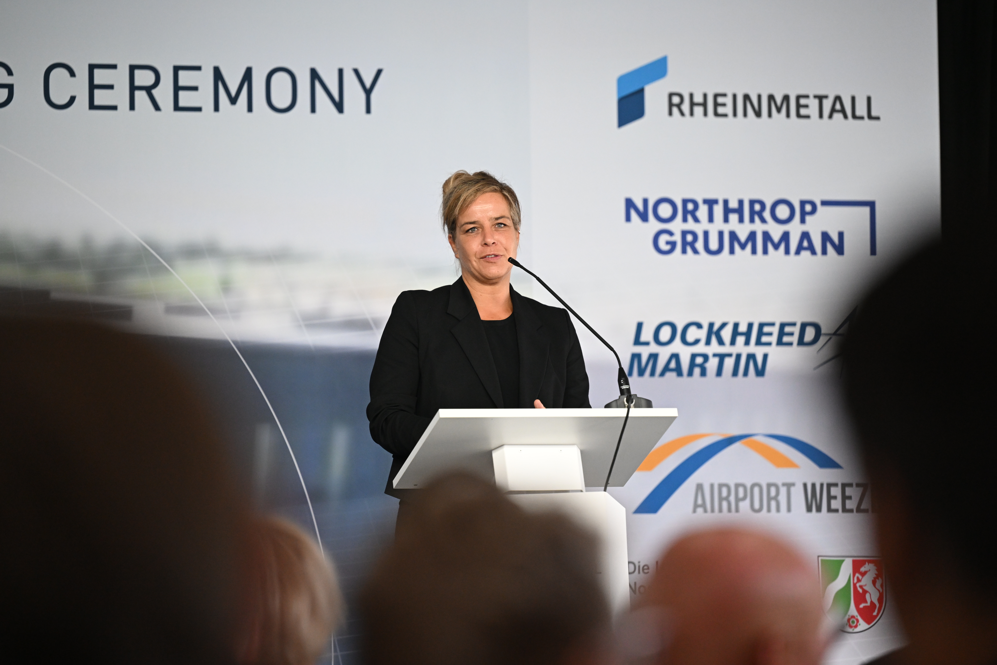 Den Auftakt des Tages bildet der symbolische erste Spatenstich für eine neue hochmoderne Fabrik von Rheinmetall in Weeze. Auf einer Fläche von rund 60.000 Quadratmetern wird hier ein Werk zur Fertigung von Rumpfmittelteilen des derzeit leistungsfähigsten Kampfflugzeugs der Welt, dem F-35A Lightning II, entstehen.