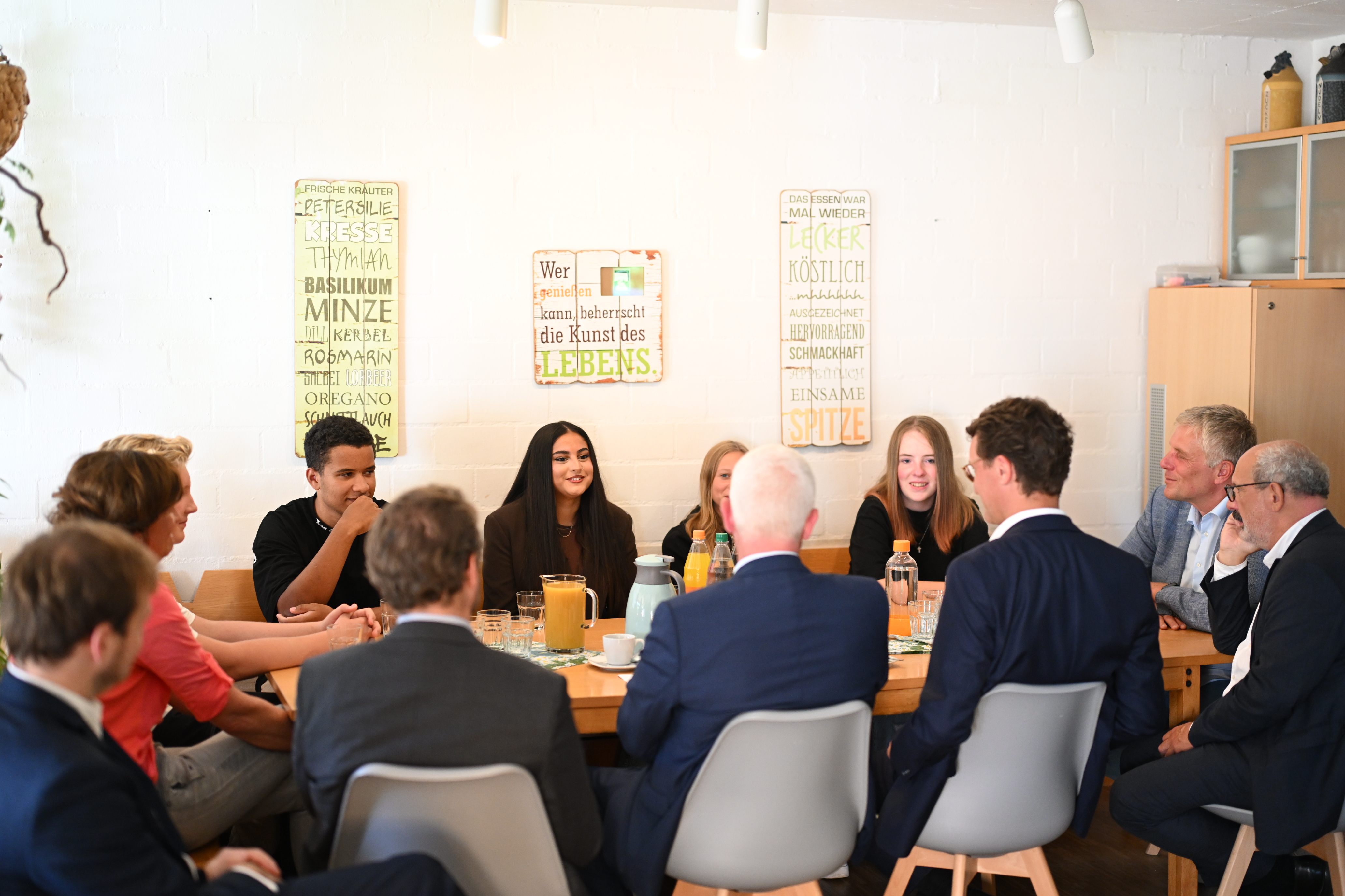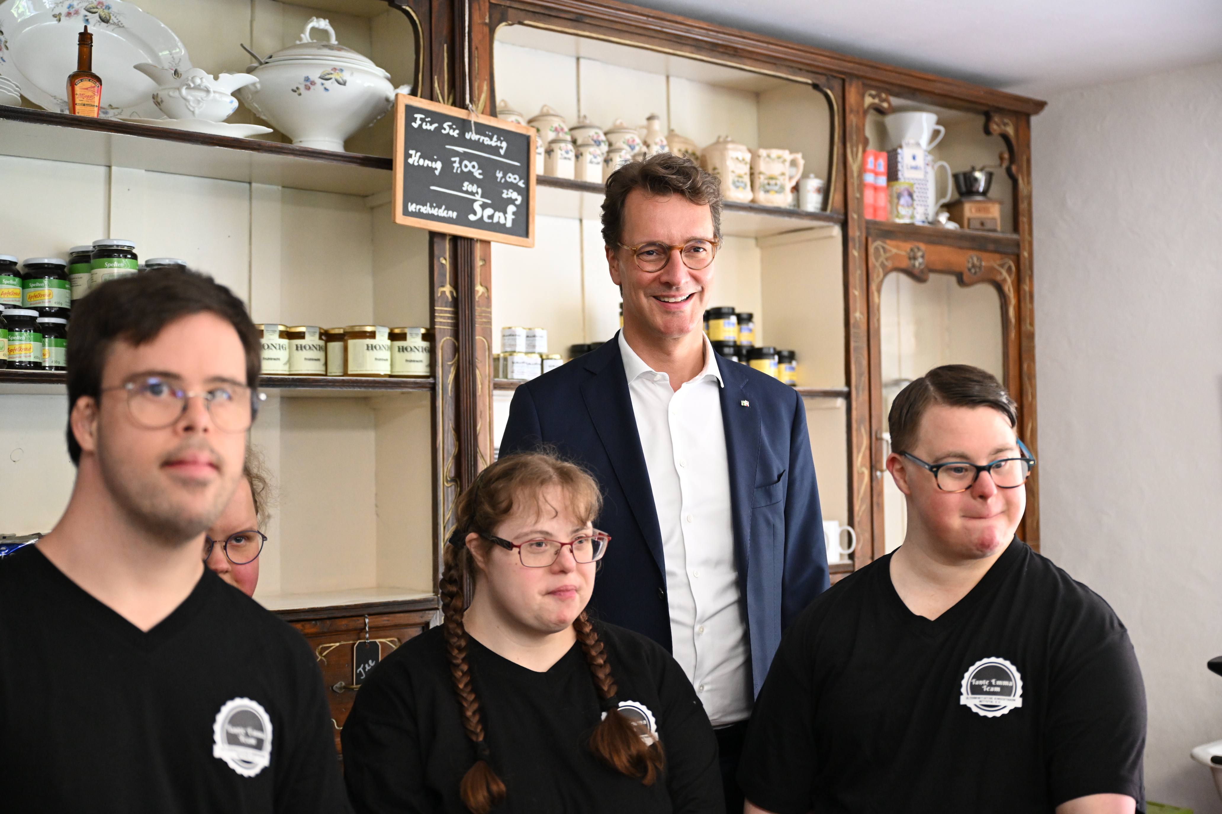 „Unser Ziel ist eine inklusive Gesellschaft, geprägt von Vielfalt, Individualität und gegenseitiger Wertschätzung. Wir wollen, dass jedes Kind und jeder junge Mensch seine Talente entdeckt und zur vollen Entfaltung bringen kann, mit oder ohne Behinderung“, sagt Ministerpräsident Hendrik Wüst über seinen Besuch im Freilichtmuseum Dorenburg. Seit 2017 arbeiten hier im „Tante Emma Laden“ Menschen mit und ohne Behinderung gemeinsam und verkaufen regionale Produkte, Kaffee und Kuchen. Übernommen wurde der Laden vom 1994 gegründeten Verein „Kindertraum“, der das Ziel verfolgt, dass Kinder mit und ohne Behinderung gemeinsam leben, lernen und Berufsperspektiven erhalten. Der Verein hat dafür zahlreiche Kooperationen aufgebaut und arbeitet sowohl mit Schulen, kommunalen Partnern sowie behindertenspezifischen Einrichtungen und Arbeitgebern zusammen. In Dorenburg tauscht sich der Ministerpräsident mit dem Vorstand und der Geschäftsführung des Vereins aus.