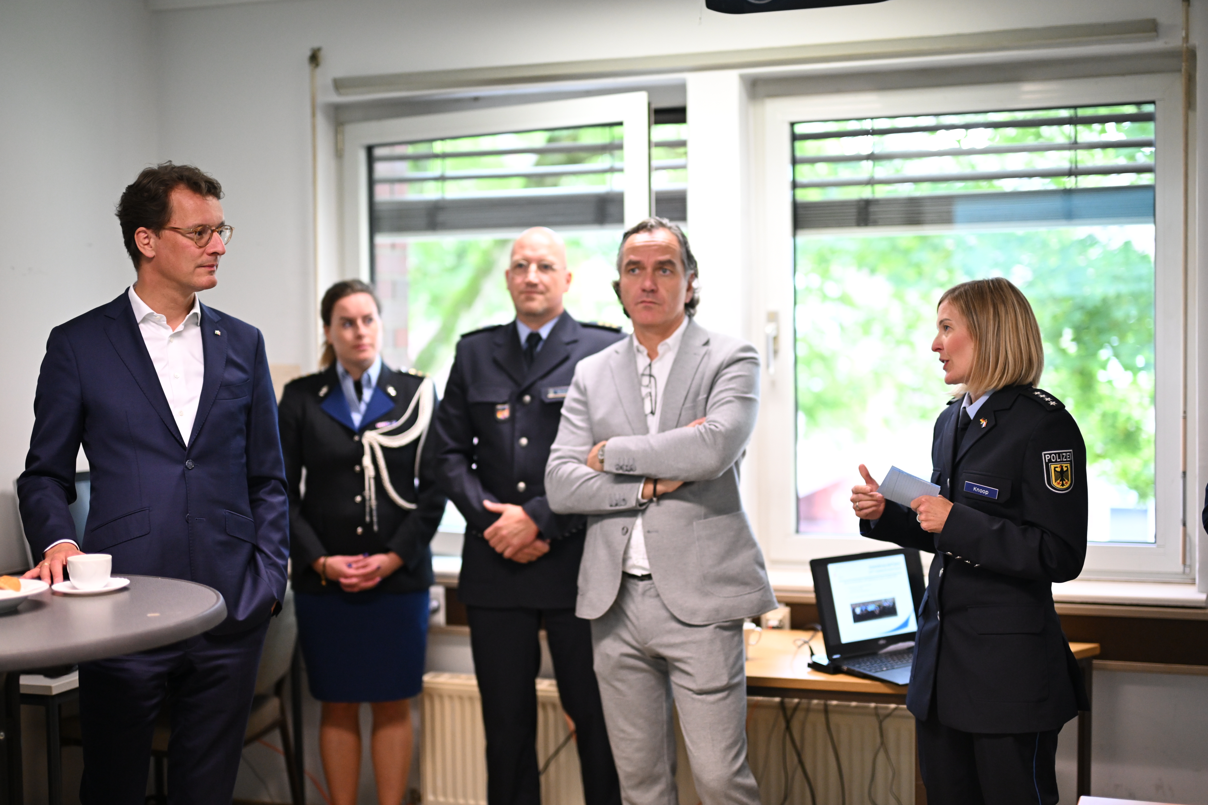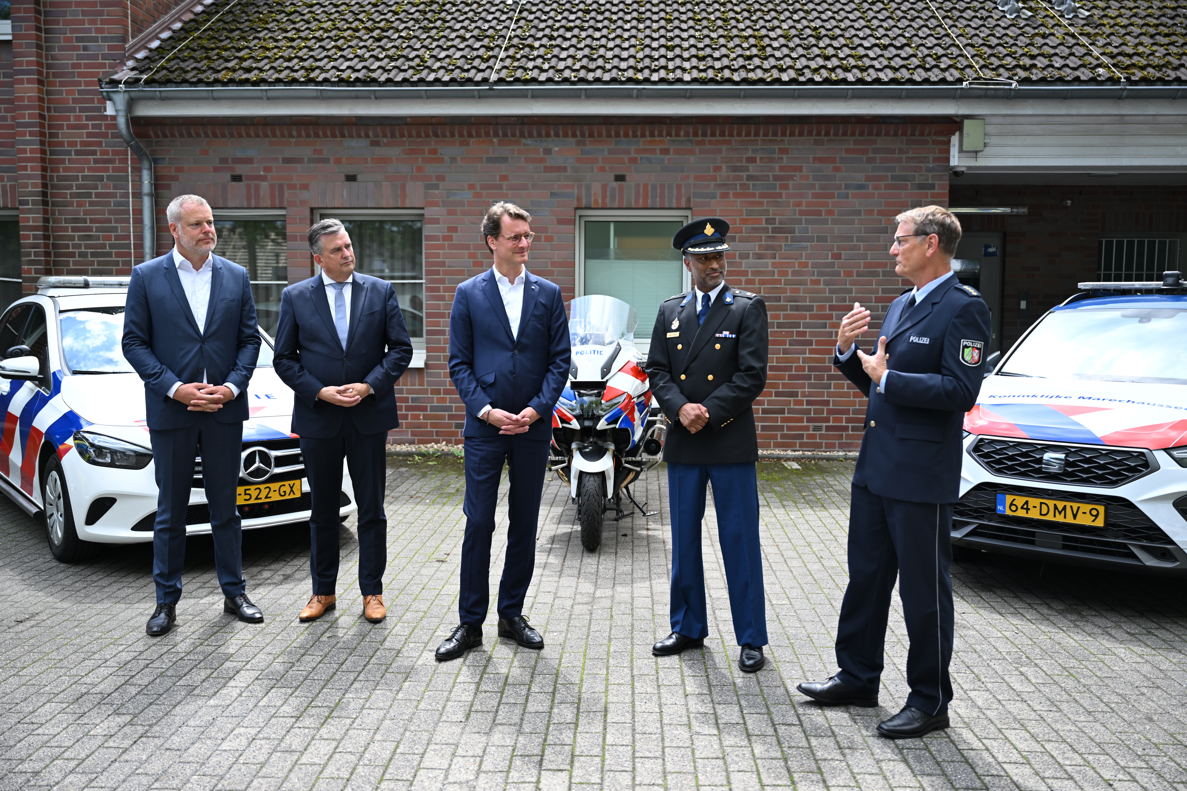 In Kaldenkirchen besucht der Ministerpräsident das grenzüberschreitende Polizeiteam (GPT) Rijn-Maas-Waal. Dieses wurde im Oktober 2021 auf Initiative von Innenminister Herbert Reul und des damaligen niederländischen Justizministers Ferdinand Grapperhaus als Pilotprojekt am Niederrhein eingerichtet. Insgesamt 29 deutsche und niederländische Polizistinnen und Polizisten unterschiedlicher Einheiten arbeiten im Grenzgebiet Hand in Hand. Dadurch enden Polizeieinsätze nicht an der jeweiligen Landesgrenze, sondern können ohne Zuständigkeits- und Kompetenzkonflikte fortgesetzt werden.