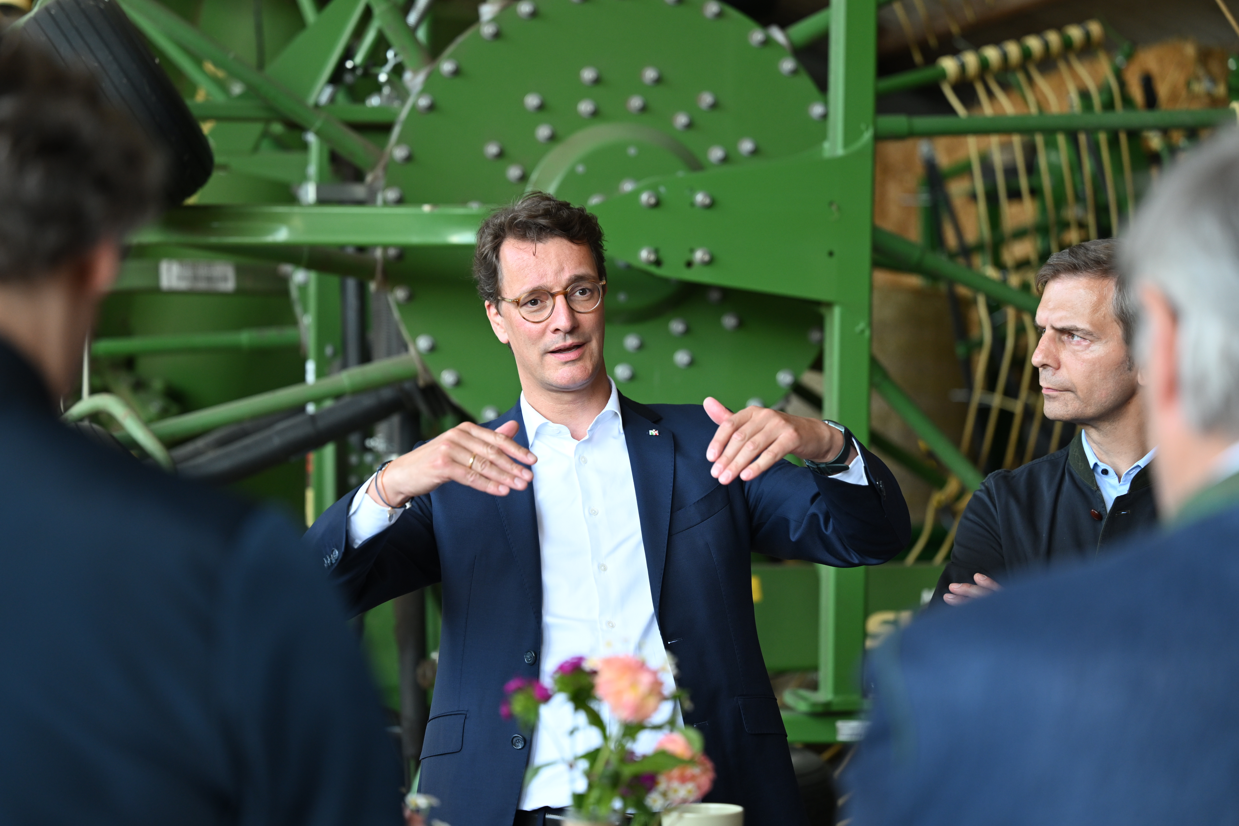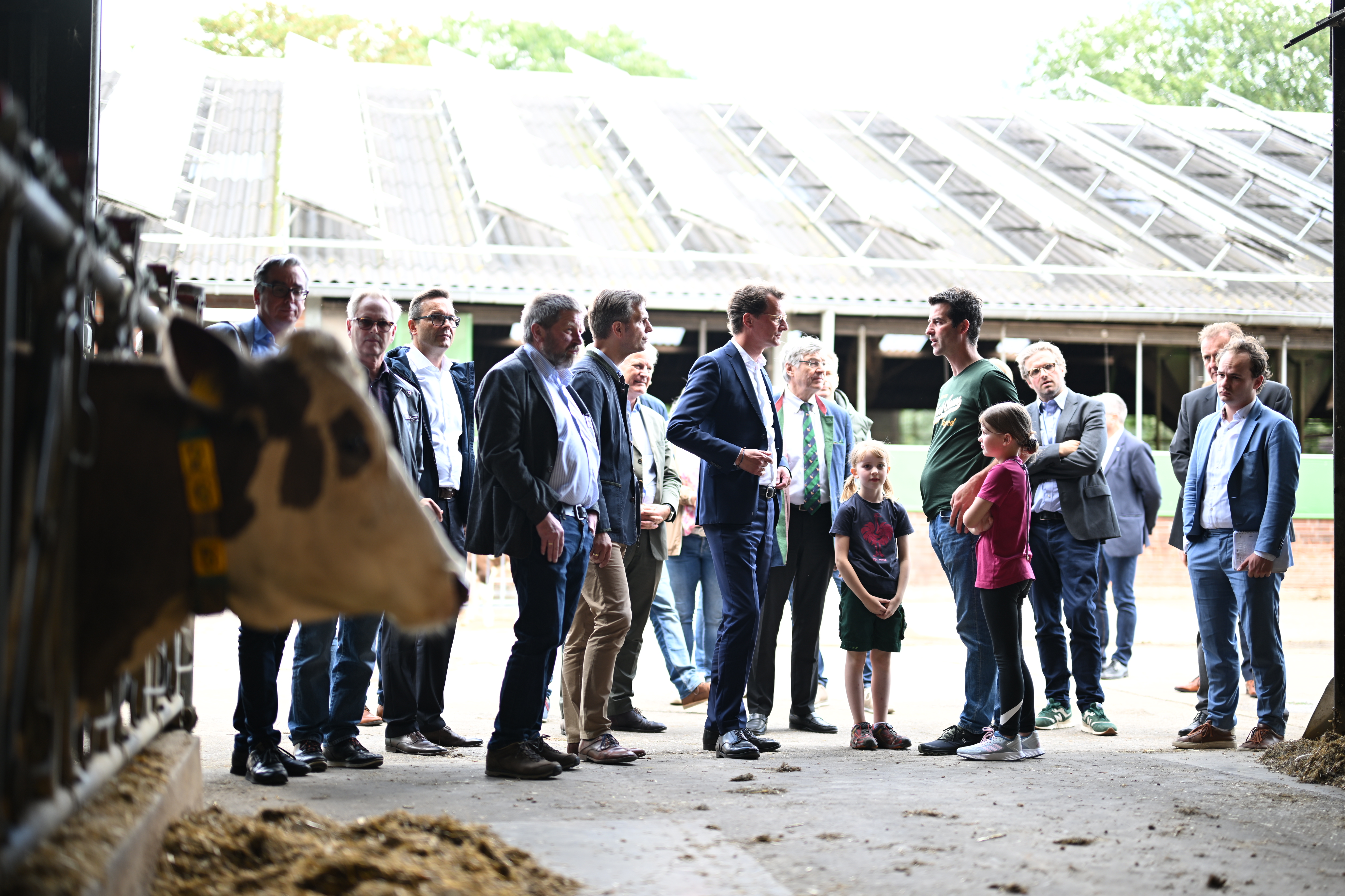 Nordrhein-Westfalen ist das drittgrößte Agrarland Deutschlands. Die Hälfte der Landesfläche wird landwirtschaftlich genutzt. In Geldern besucht Ministerpräsident Wüst den landwirtschaftlichen Betrieb von Markus Baumann. Der familiengeführte Hof mit Milchvieh, Mastbullen und landwirtschaftlicher Nutzfläche ist einer von insgesamt fast 1.700 landwirtschaftlichen Betrieben im Kreis Kleve. Gemeinsam mit der örtlichen Kreisbauernschaft spricht Wüst über aktuelle Herausforderungen für die Landwirtschaft, unter anderem über faire Wettbewerbsbedingungen und den Abbau bürokratischer Hürden bei der Lebensmittelerzeugung.