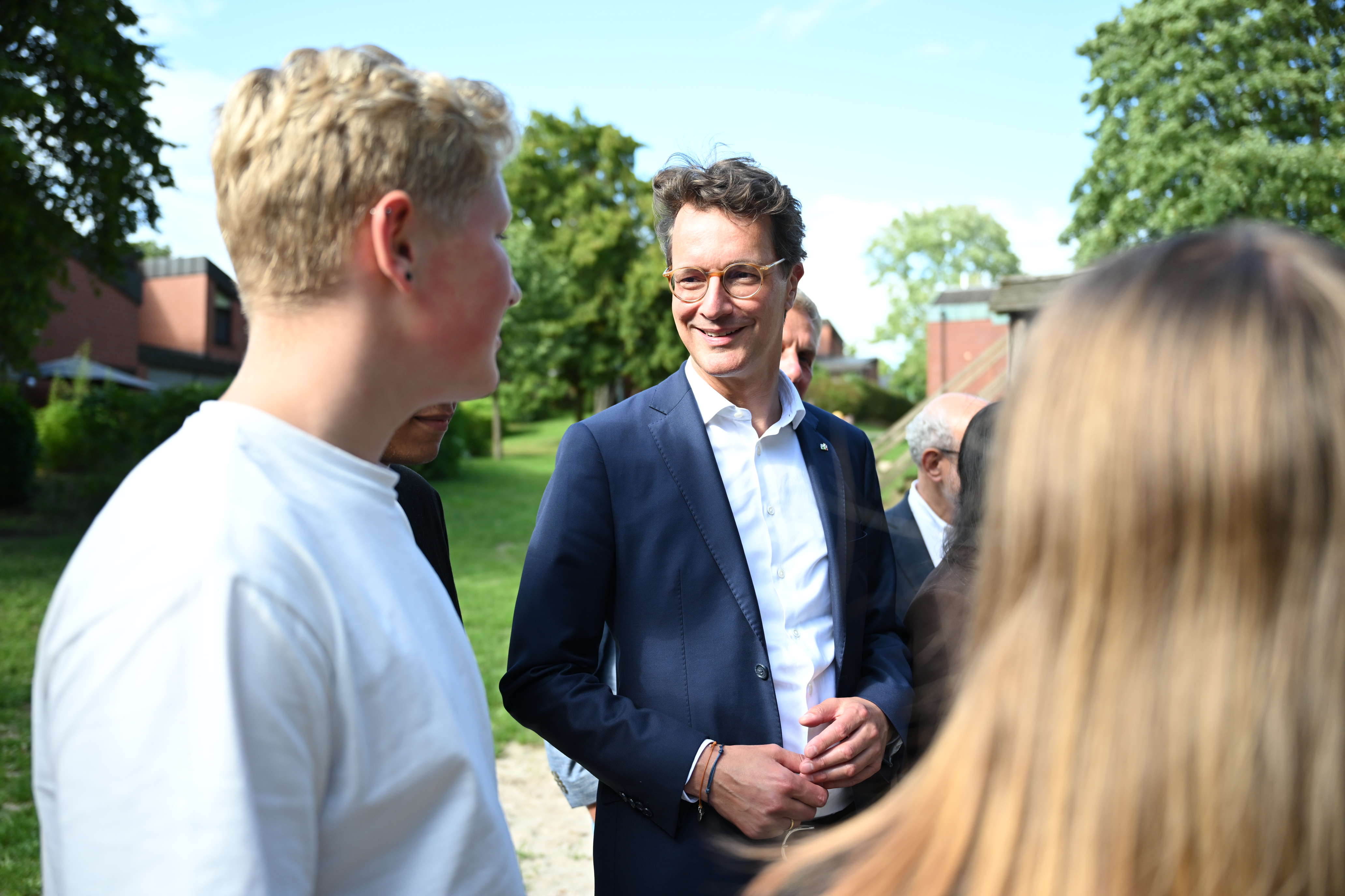 Gemeinsam mit Bürgerinnen und Bürgern der Region lässt Ministerpräsident Hendrik Wüst den Tag bei einem Empfang in Xanten ausklingen. Er hat dafür ehrenamtlich Engagierte aus der Region in das neue Entdeckerforum des Archäologischen Parks eingeladen. Dort will Wüst mit den Menschen ins Gespräch kommen. Nach einem kurzen offiziellen Teil steht die Begegnung mit den Gästen und die Würdigung des ehrenamtlichen Engagements im Vordergrund.