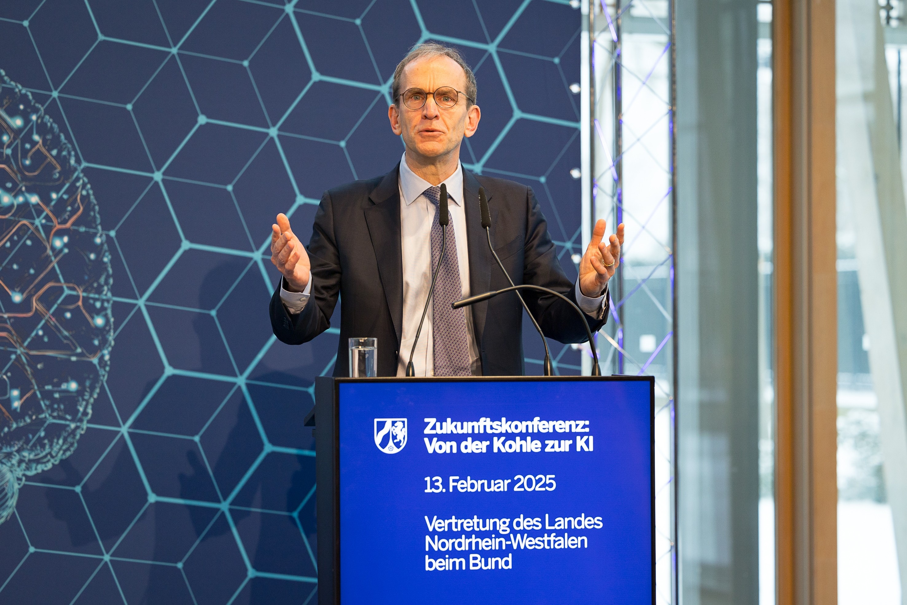 Nordrhein-Westfalen geht den Weg von der Kohle zur KI: Mit großen Zukunftsinvestitionen ist Nordrhein-Westfalen heute Vorreiter bei der Entwicklung und Anwendung Künstlicher Intelligenz. Als Innovationszentrum und dichtester Forschungs- und Wissenschaftsraum Europas ist das Land zudem attraktiver Standort für Unternehmen, Industrie und damit auch für Investitionen. Auf Einladung von Ministerpräsident Hendrik Wüst kommen am Donnerstag, 13. Februar 2025, führende Köpfe aus Wirtschaft, Industrie, Politik und Forschung in der Vertretung des Landes Nordrhein-Westfalen in Berlin zusammen, um im Rahmen der Zukunftskonferenz „Von der Kohle zur KI“ die Potenziale von Künstlicher Intelligenz in den unterschiedlichen Bereichen zu beleuchten und zu diskutieren.