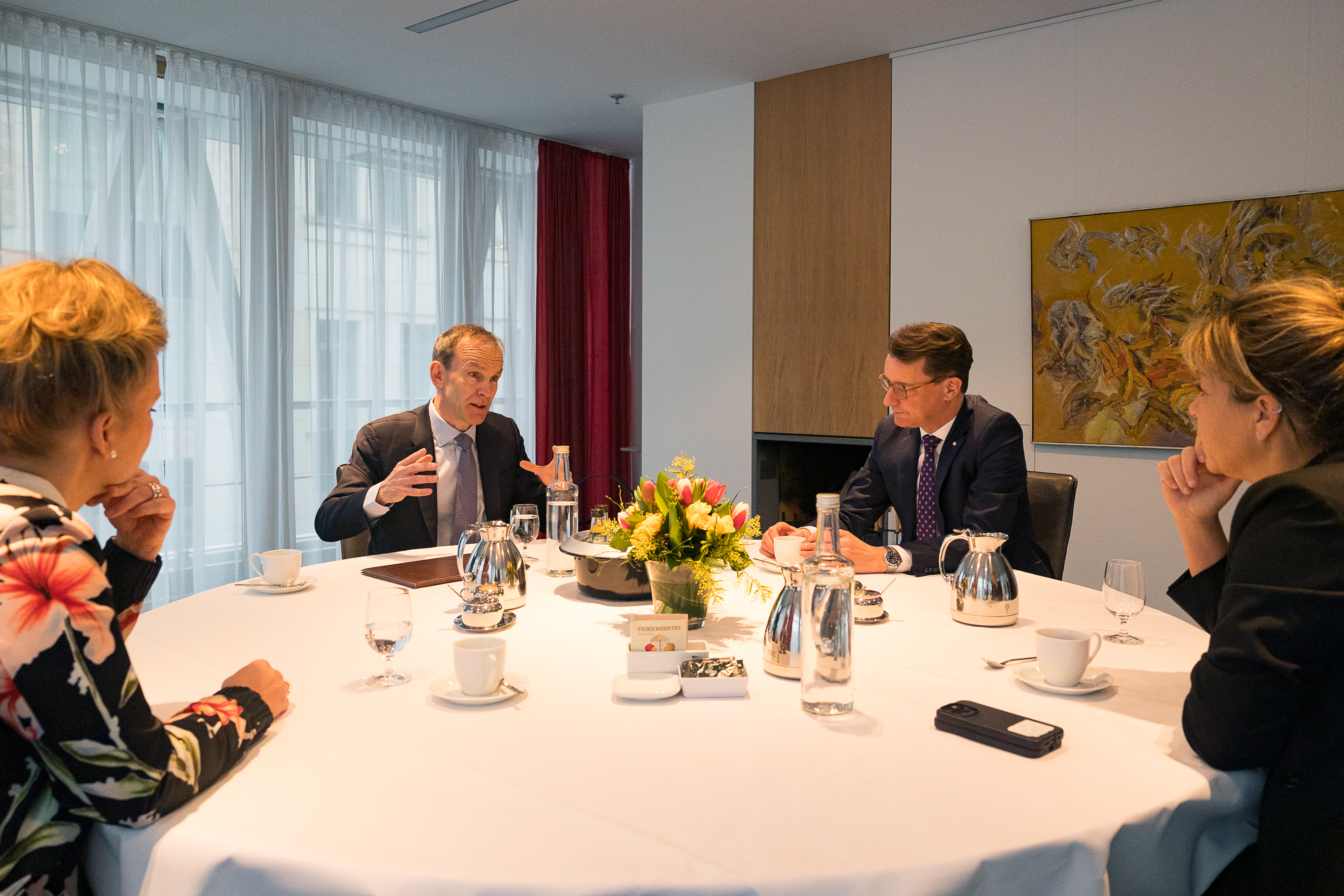 Ina Brandes (Ministerin für Kultur und Wissenschaft), Prof. Dr. Holger Hoos (Fellow der Association for Computing Machinery (ACM), der Association for the Advancement of Artificial Intelligence (AAAI) sowie der European Association for Artificial Intelligence (EurAI), Mitbegründer und Vorstandsvorsitzender der Confederation of Laboratories for AI Research in Europe (CAIRNE)), Prof. Dr. Kristel Michielsen (Physikerin und Professorin für Quanteninformationsverarbeitung an der RWTH Aachen und Leitung Jülich UNified Infrastructure for Quantum Computing (JUNIQ) am Jülich Supercomputing Centre/Forschungszentrum Jülich), Prof. Dr. Stefan Wrobel (Fellow der Association for Computing Machinery (ACM), der Association for the Advancement of Artificial Intelligence (AAAI) sowie der European Association for Artificial Intelligence (EurAI), Mitbegründer und Vorstandsvorsitzender der Confederation of Laboratories for Artificial Intelligence Research in Europe (CAIRNE))