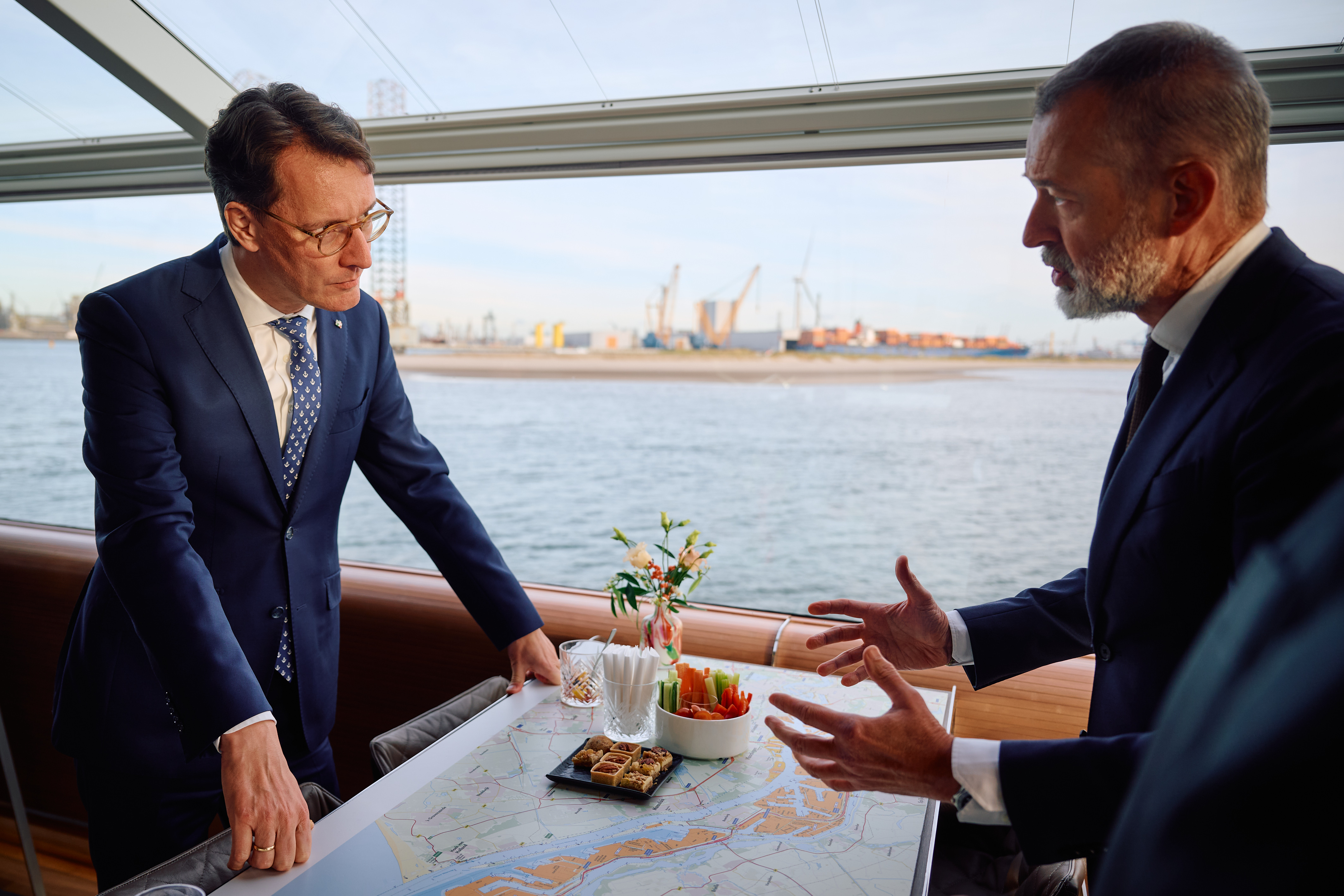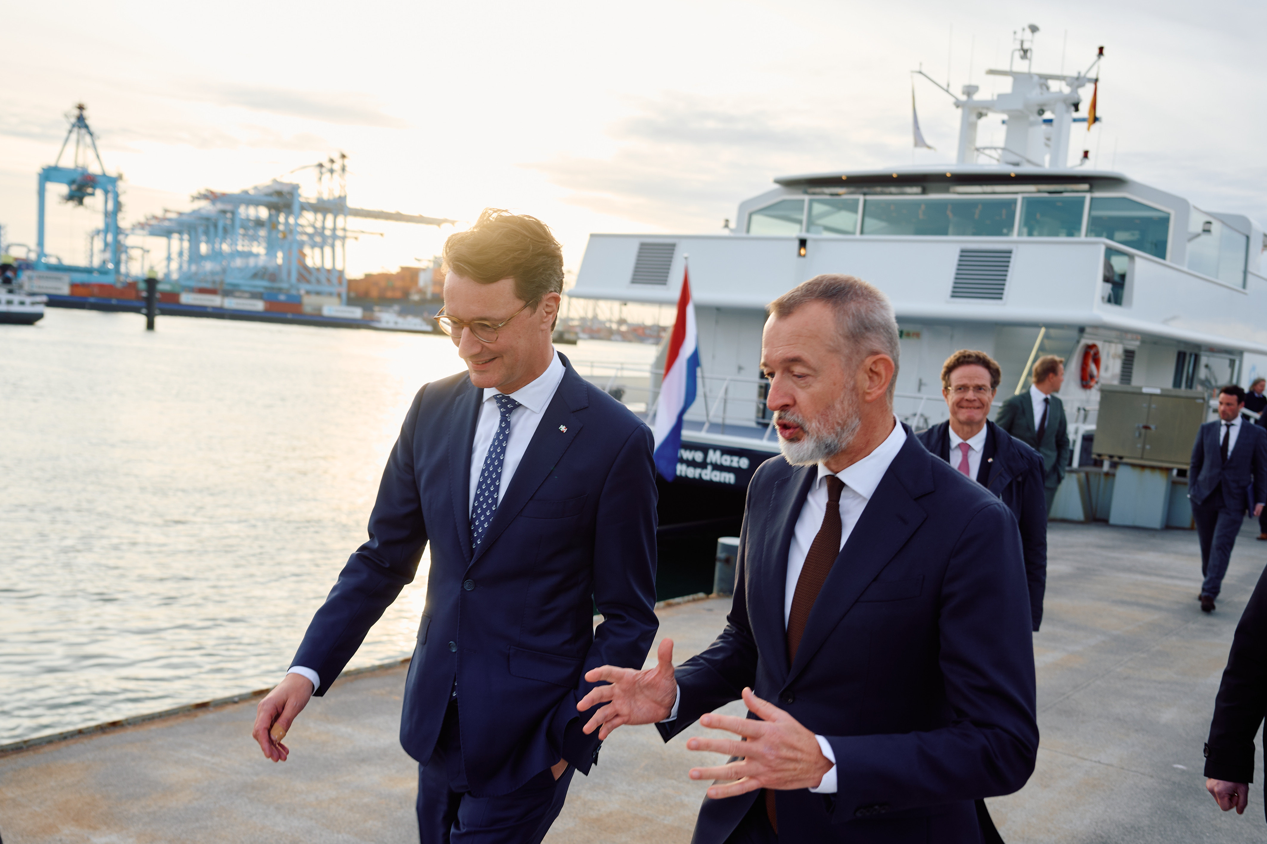 Und wie sieht diese Partnerschaft in der Praxis und abseits der Grenzregion aus? Im Anschluss an das Forum wurde im Hafen von Rotterdam eine Absichtserklärung zwischen den Häfen Rotterdam und Duisburg unterzeichnet. Der Schwerpunkt: Wasserstoff, CO₂-Transport und der Ausbau grenzüberschreitender Infrastruktur. „Rotterdam und Duisburg werden zu zentralen Umschlagplätzen für Wasserstoff und CO₂. Ihre Kooperation stärkt Wettbewerbsfähigkeit und Resilienz unserer Lieferketten“, so Ministerpräsident Wüst.