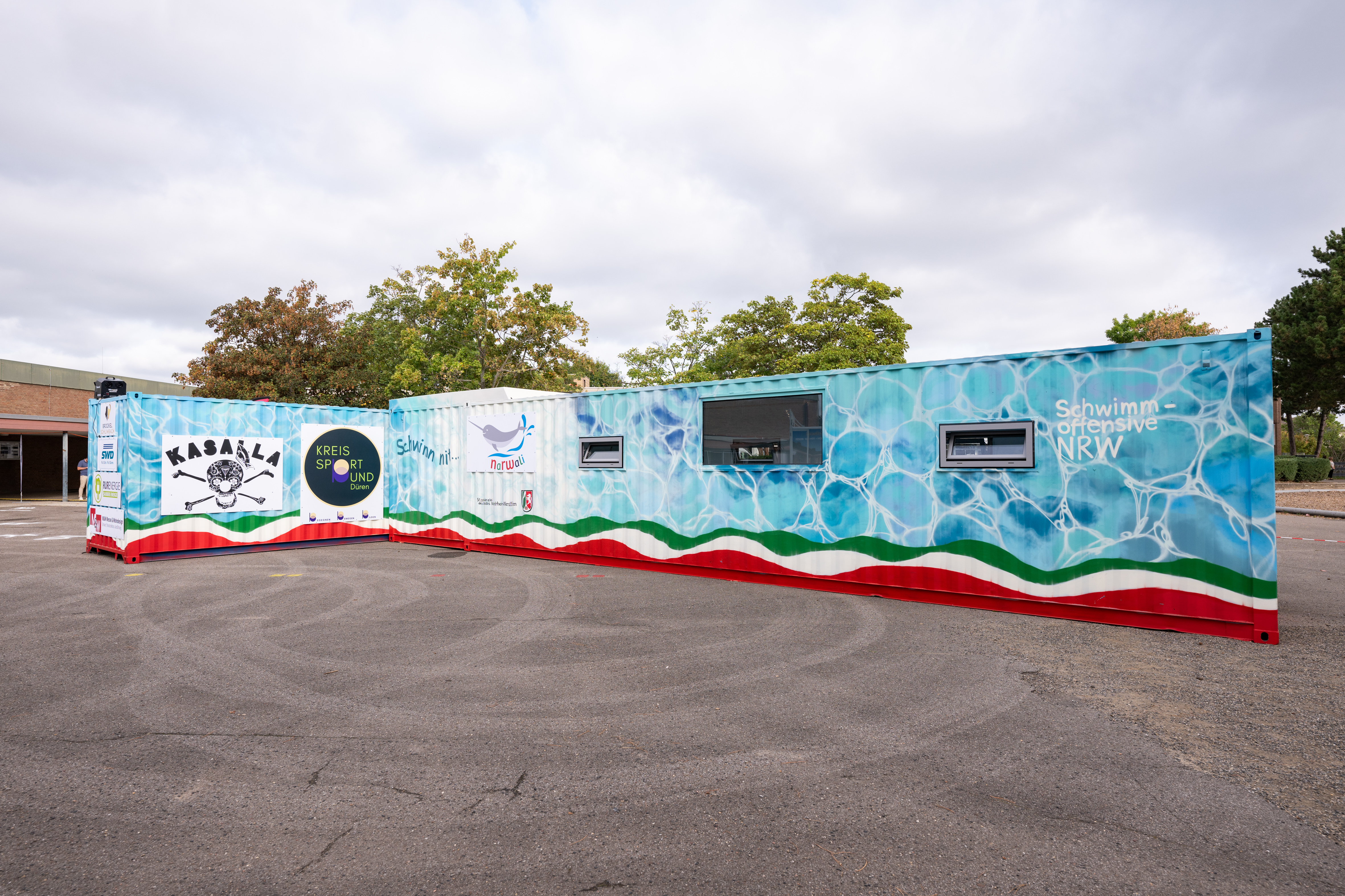 Pro Regierungsbezirk wird ein Schwimmcontainer zum Einsatz kommen. Projektträger aus dem organisierten Sport werden mit den Schwimmcontainern zwei Jahre lang durch die fünf Regierungsbezirke touren. Schrittweise werden in den kommenden Wochen die fünf Schwimmcontainer vom nordrhein-westfälischen Hersteller ausgeliefert und zum Einsatz kommen.
