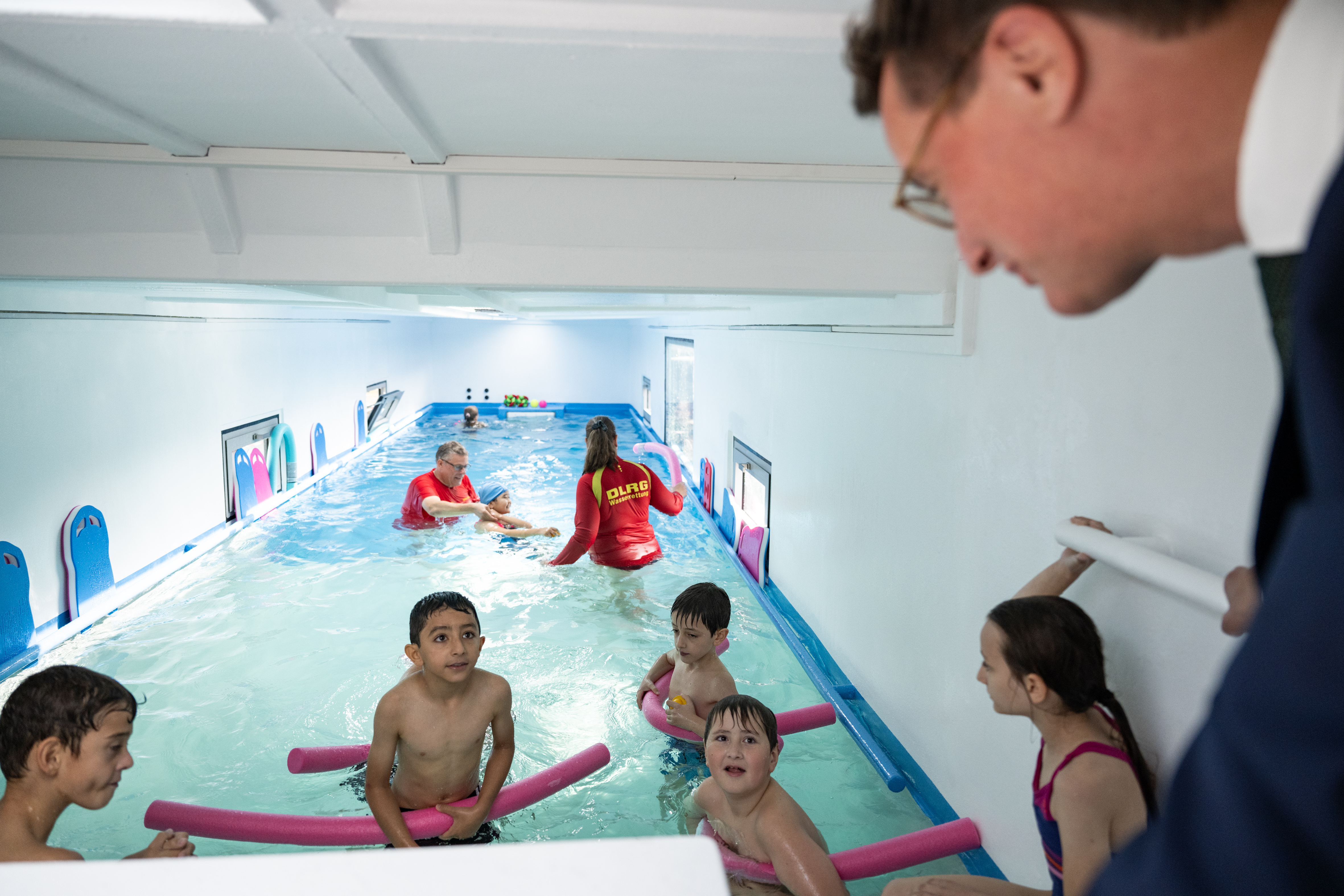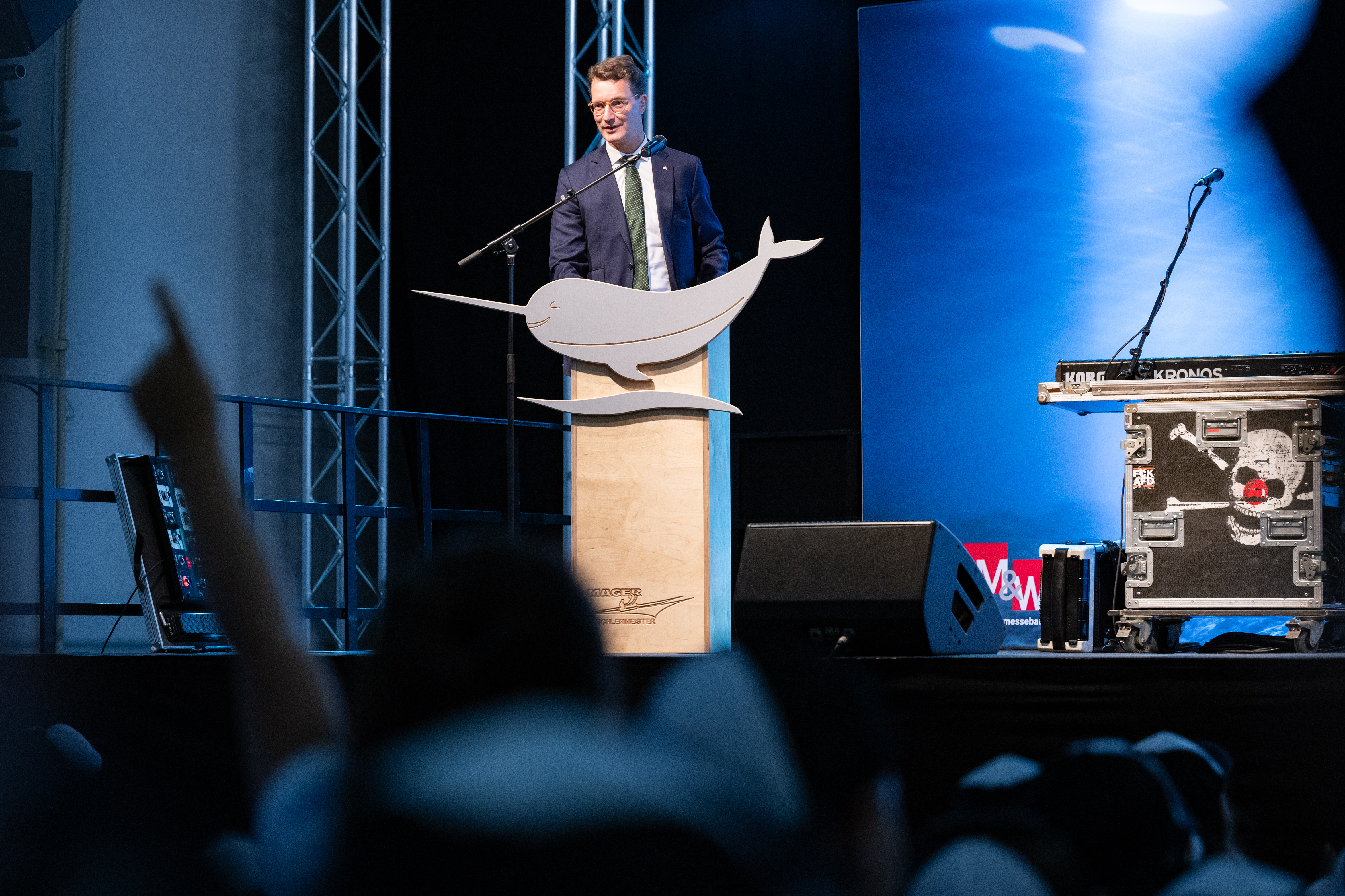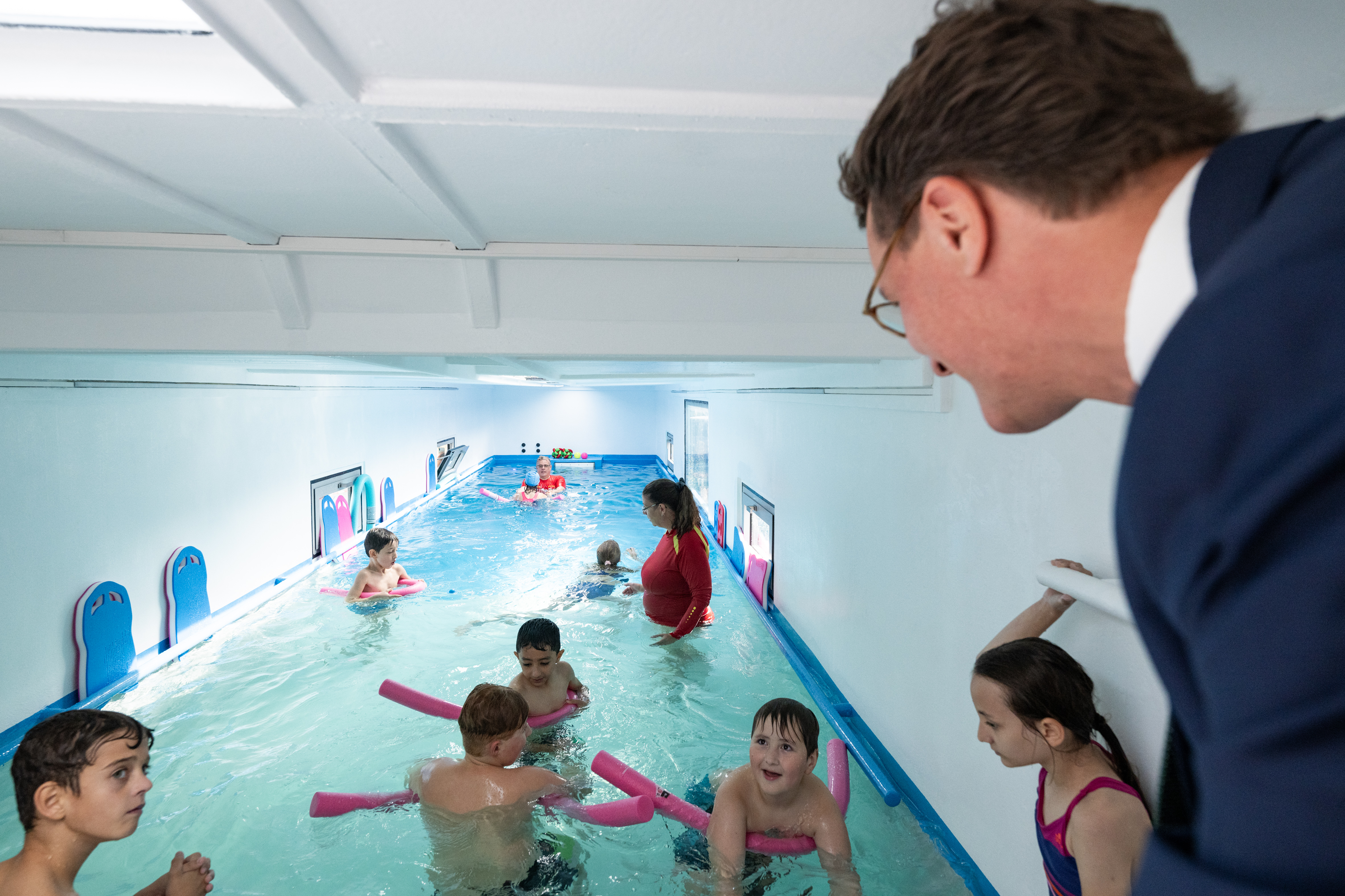 Ministerpräsident Hendrik Wüst hat in Düren den ersten mobilen Schwimmcontainer des Projekts „narwali“ eingeweiht. Wichtigstes Ziel des Modellvorhabens ist die Schaffung eines niedrigschwelligen Angebots zur Wassergewöhnung – damit Kinder lernen, sich sicher im nassen Element zu bewegen.