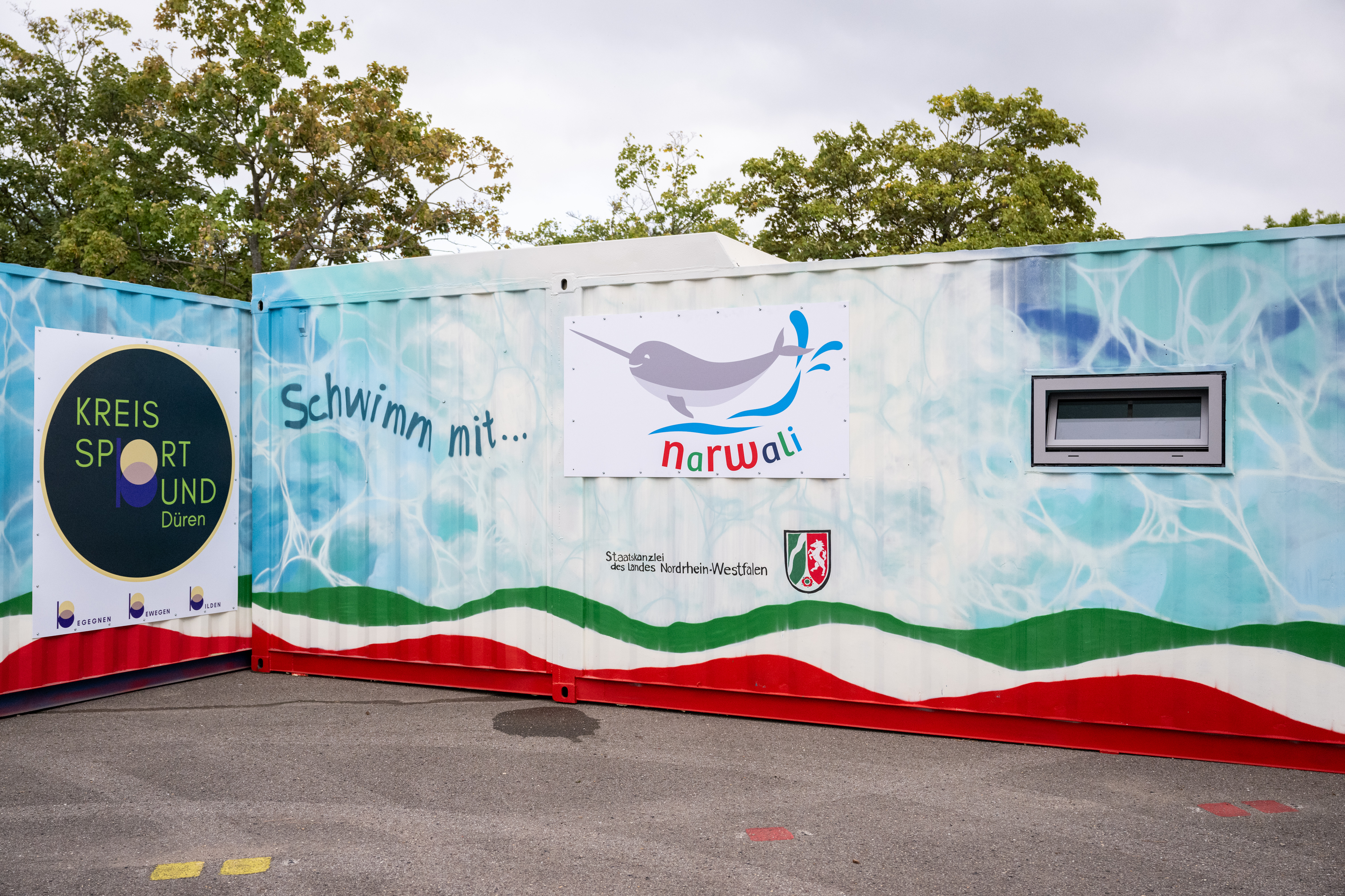 Der umgebaute Seefrachtcontainer wird nun für die kommenden zwei Jahre durch den Regierungsbezirk Köln touren und Kindern aus dem Vorschul- sowie Grundschulbereich kostenfreie Kurse zum Erlernen der Grundtechniken des Schwimmens anbieten. „Sicher schwimmen macht nicht nur Spaß, es ist auch die Grundlage für viele Freizeitaktivitäten und Berufe – vor allem kann es aber überlebenswichtig sein. Mit dem Modellvorhaben der mobilen Schwimmcontainer „narwali“ wollen wir Signalwirkung erzeugen: Jedes Kind sollte schwimmen können. Umso wichtiger ist es, frühzeitig passende und vielfältige Angebote zu schaffen. Dafür sind die mobilen Schwimmcontainer ein wichtiger Baustein. Es ist großartig zu erleben, mit welcher Begeisterung Kinder das Schwimmen erlernen wollen. Ich bin überzeugt, dass mit diesem neuen Angebot viele Kinder großen Spaß haben werden und zugleich lernen, sich im Wasser sicher zu bewegen“, erklärte Ministerpräsident Wüst.
