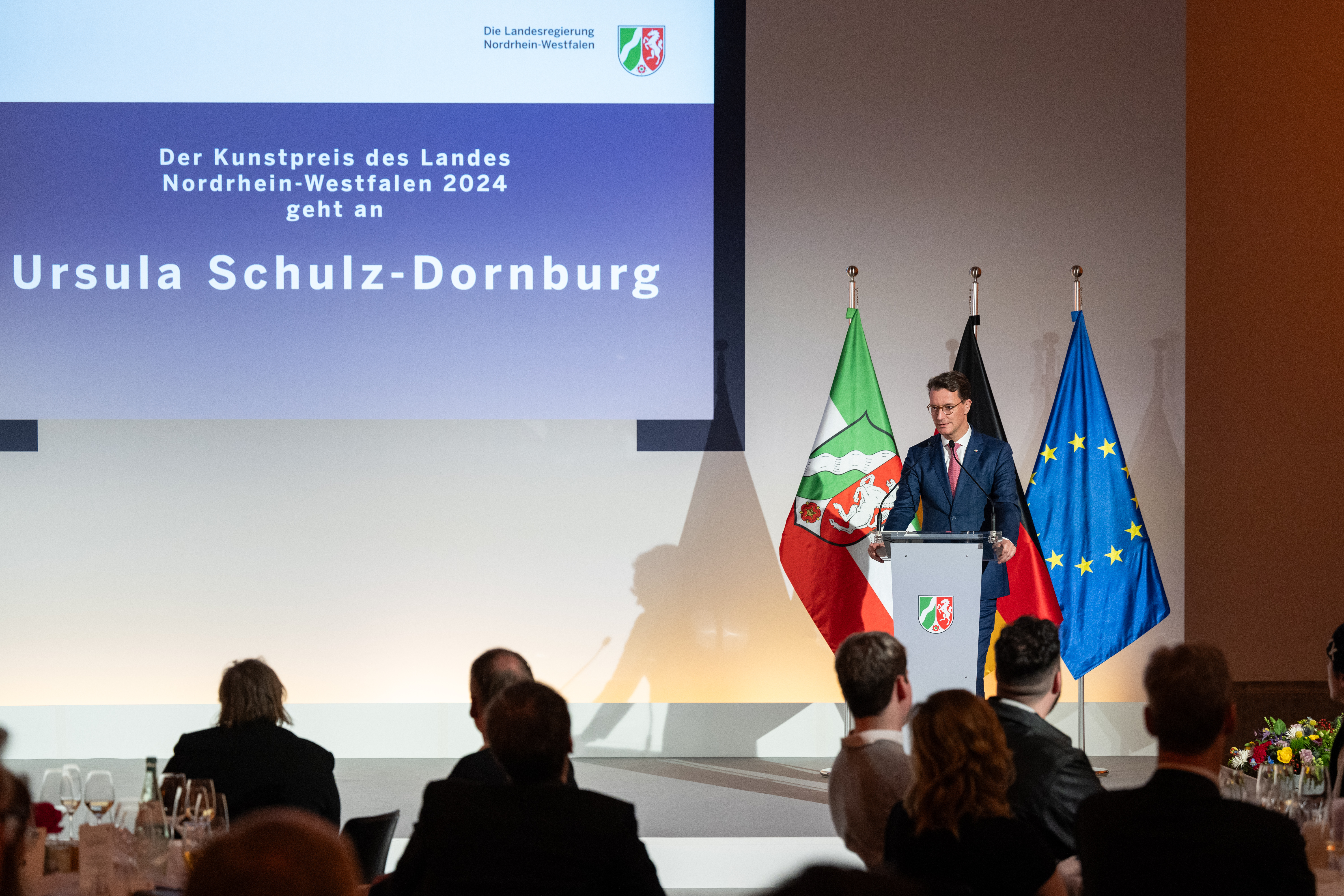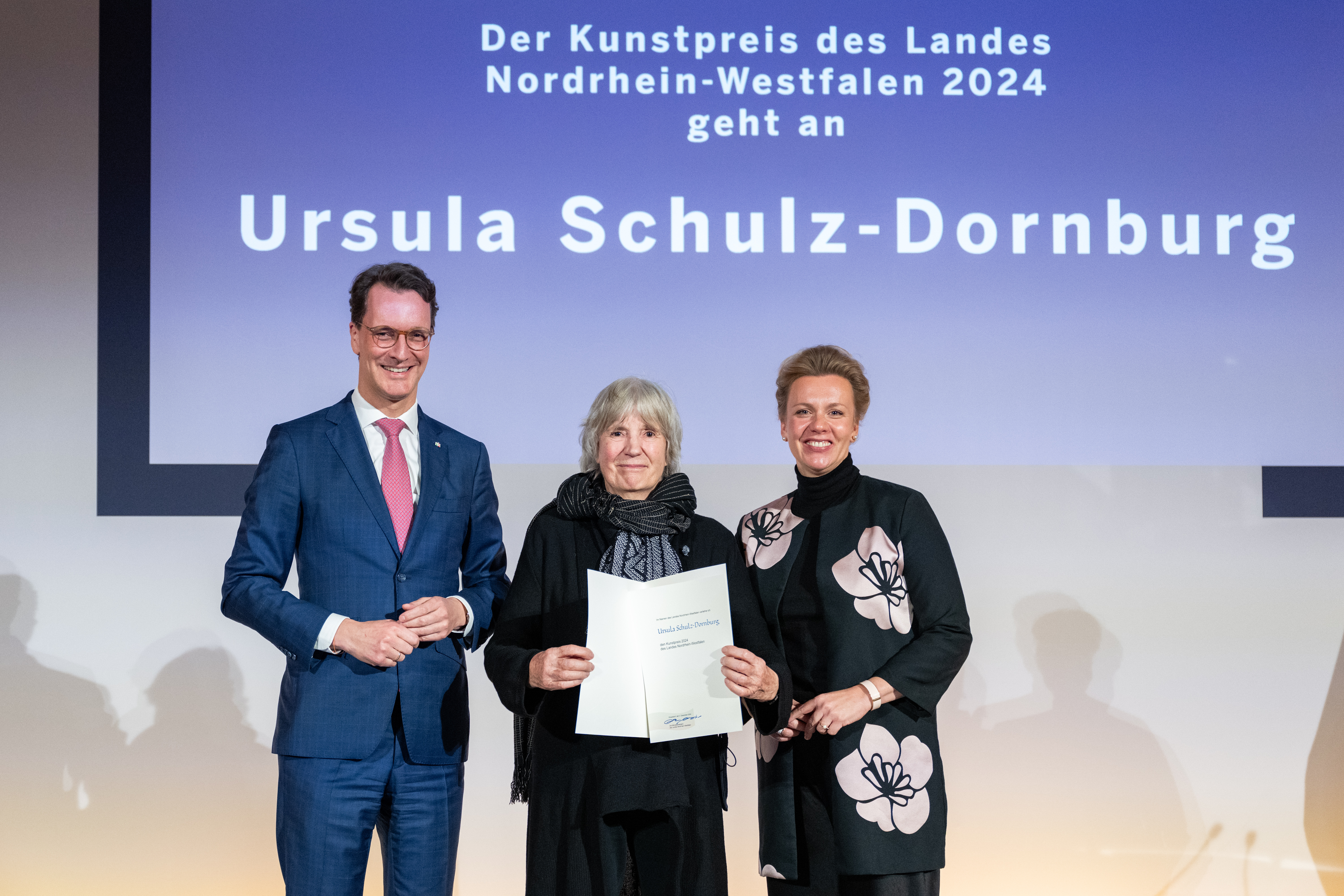 Am Montag, 2. Dezember 2024, hat Ministerpräsident Hendrik Wüst der Fotografin Ursula Schulz-Dornburg den Kunstpreis des Landes Nordrhein-Westfalen 2024 verliehen. Schulz-Dornburg überzeugte die Jury mit ihrem herausragenden fotografischen Werk. Seit Jahrzehnten reist die 86-Jährige Fotokünstlerin in die Länder Europas, Asiens und des Nahen Ostens, um das dort Gesehene in Bildzyklen fotografisch festzuhalten. Besonders die Landschaftsbilder haben die Jury um Kulturministerin Ina Brandes überzeugt.