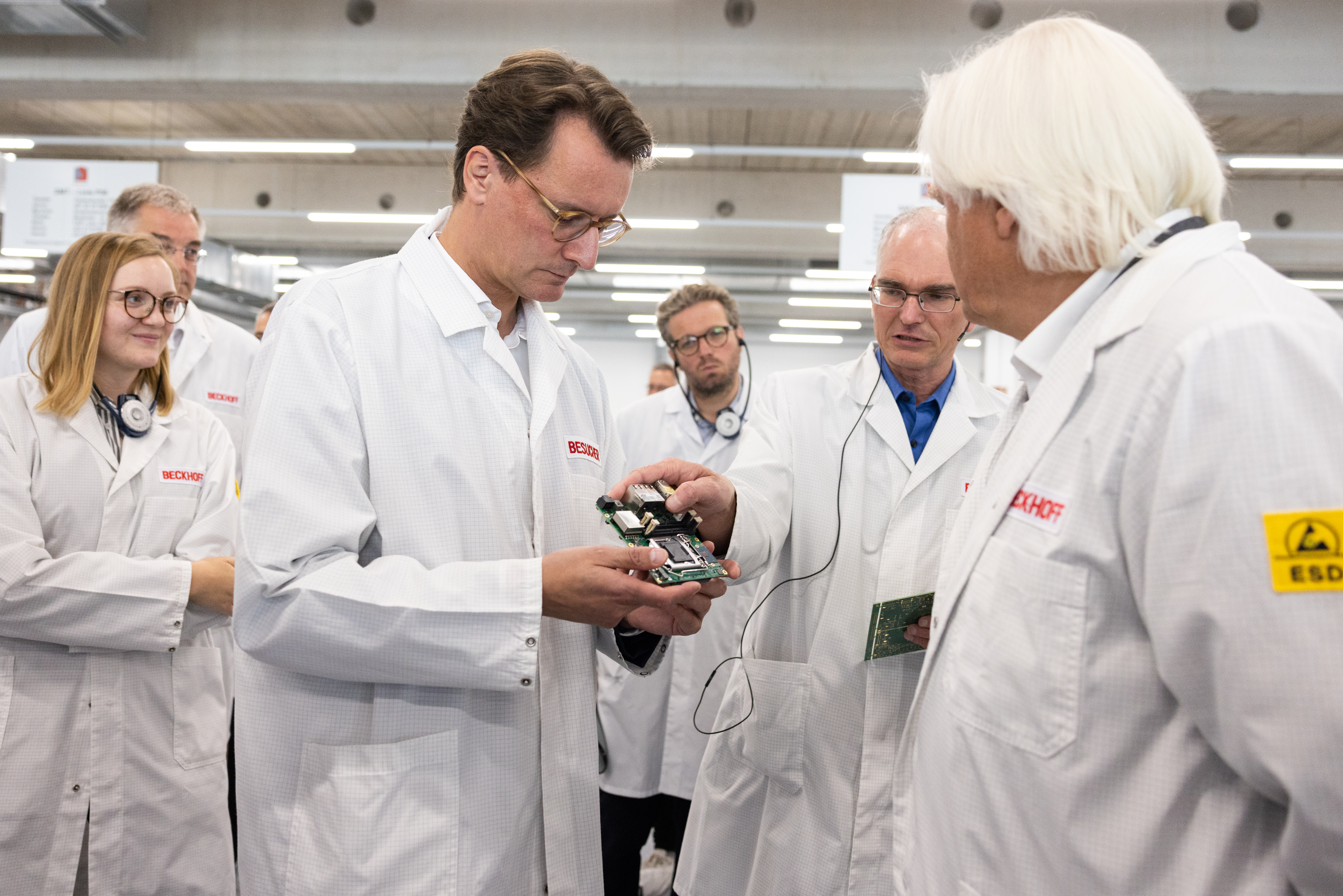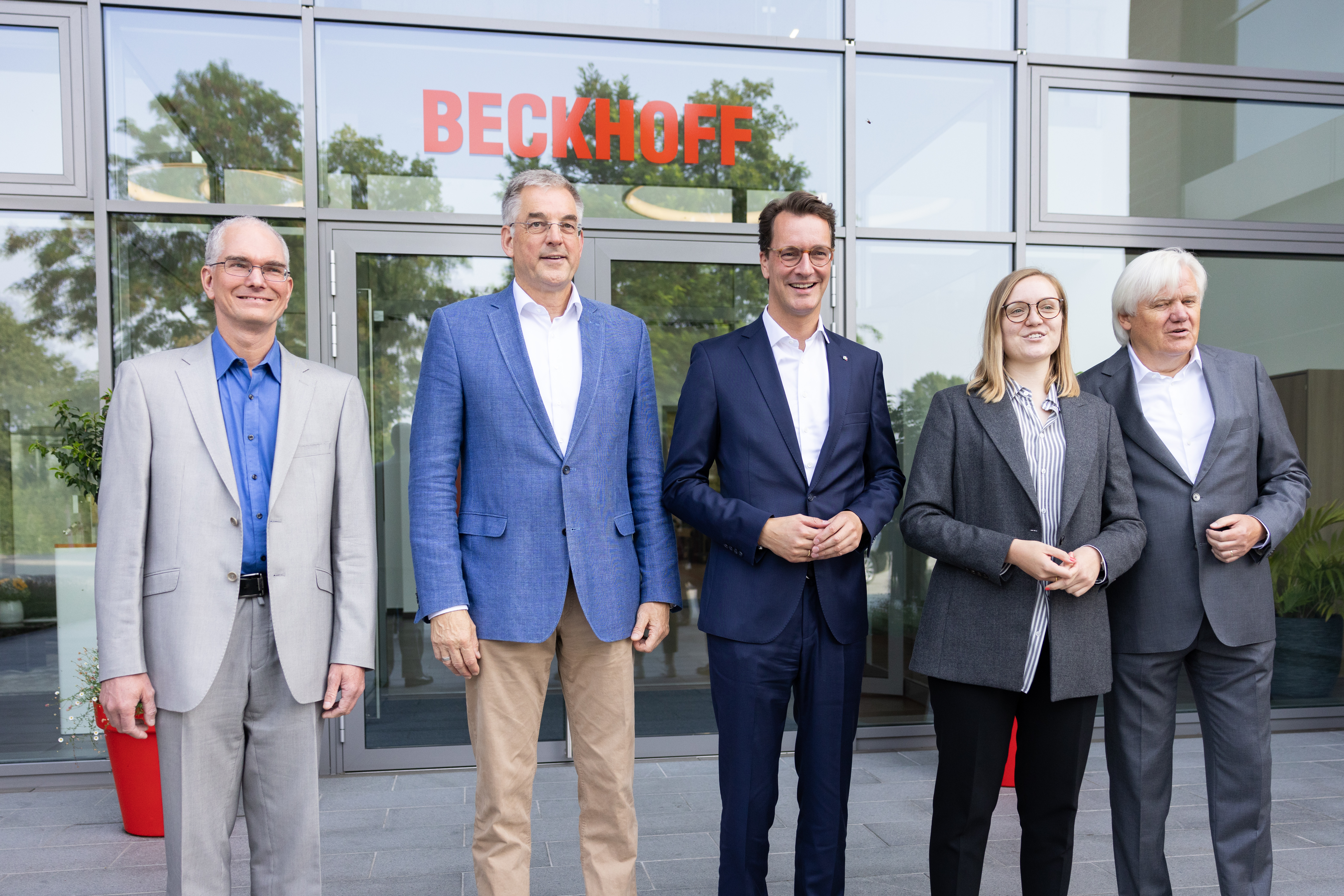 Ministerpräsident Hendrik Wüst besucht das 1980 gegründete Unternehmen Beckhoff Automation am Stammsitz in Verl.