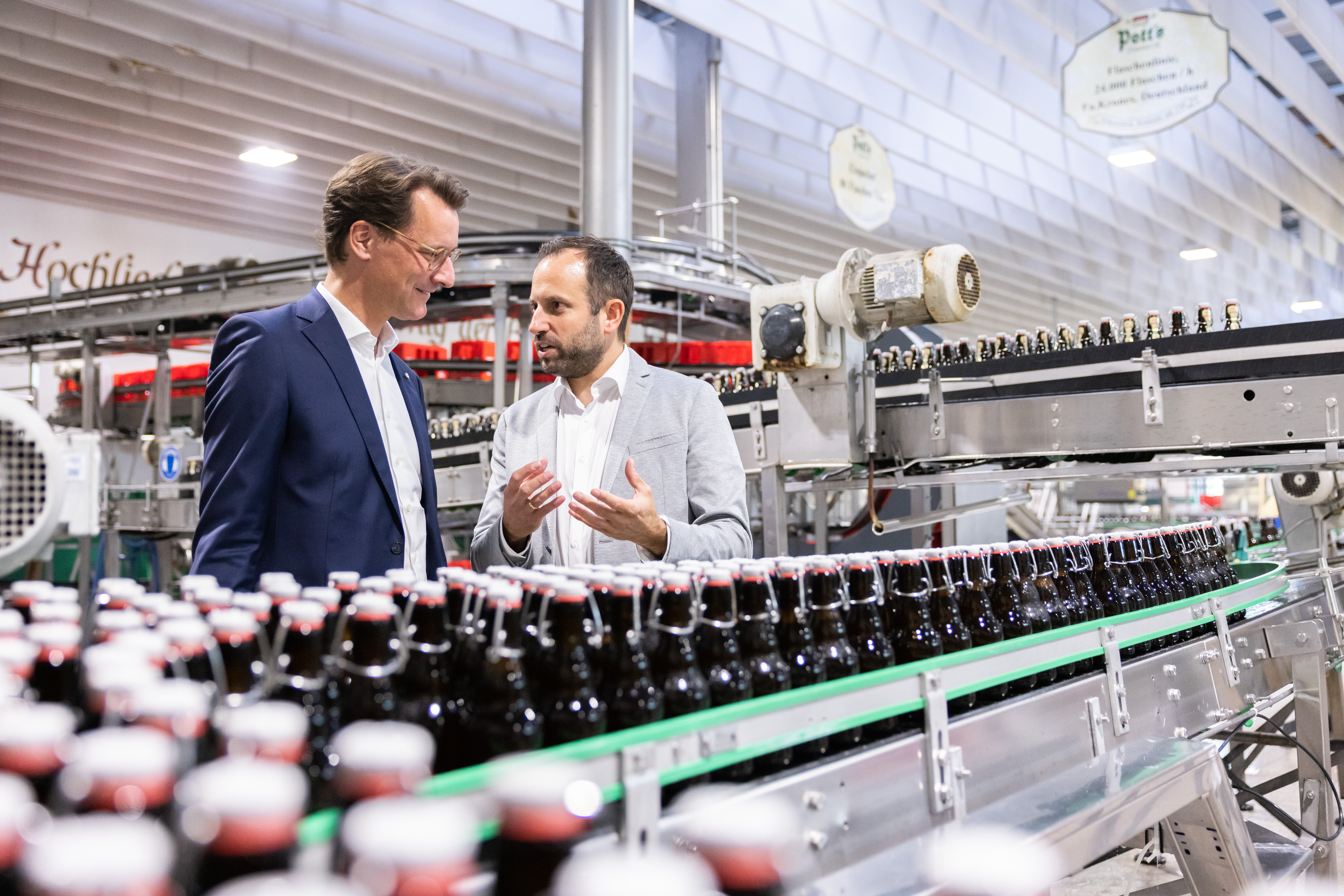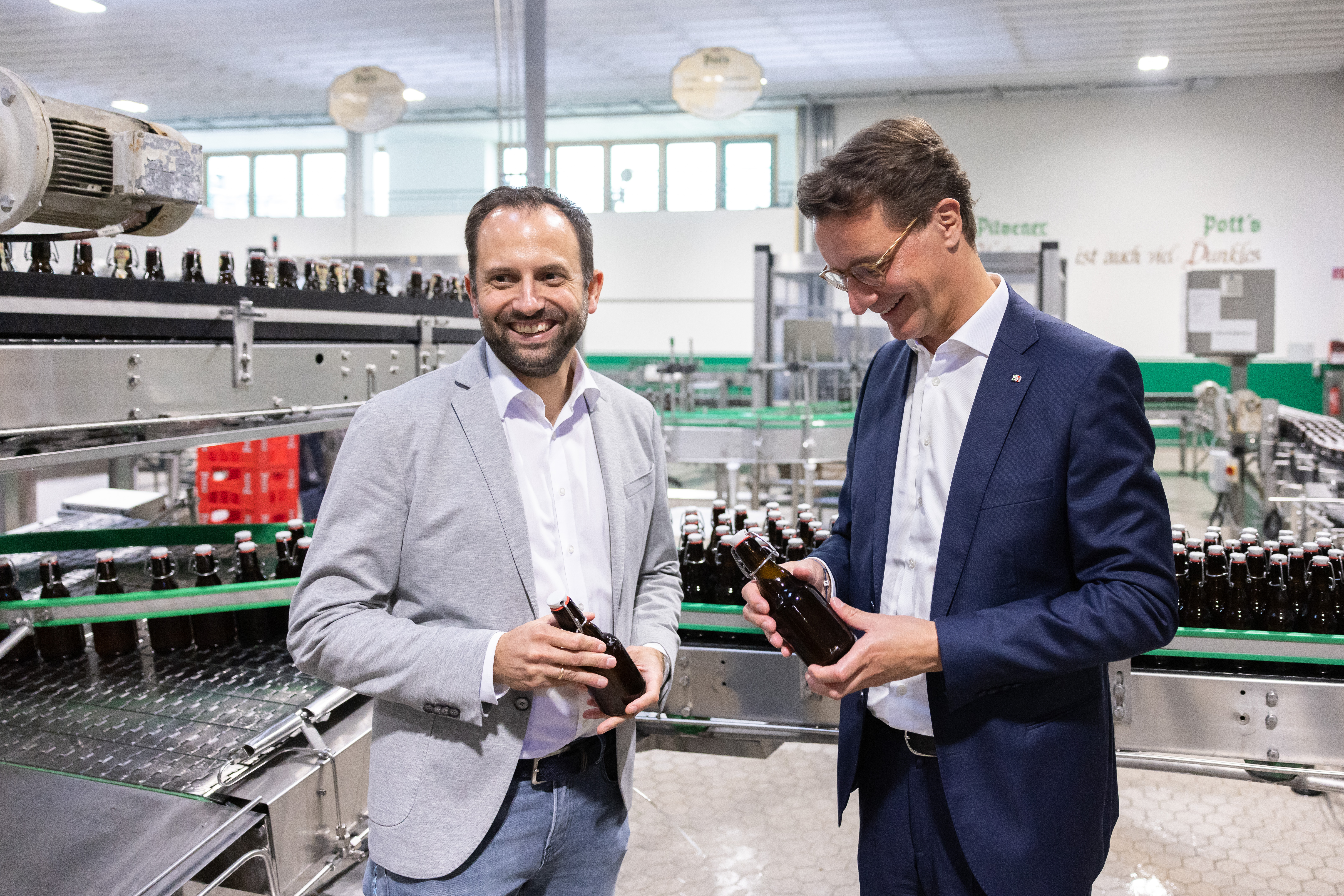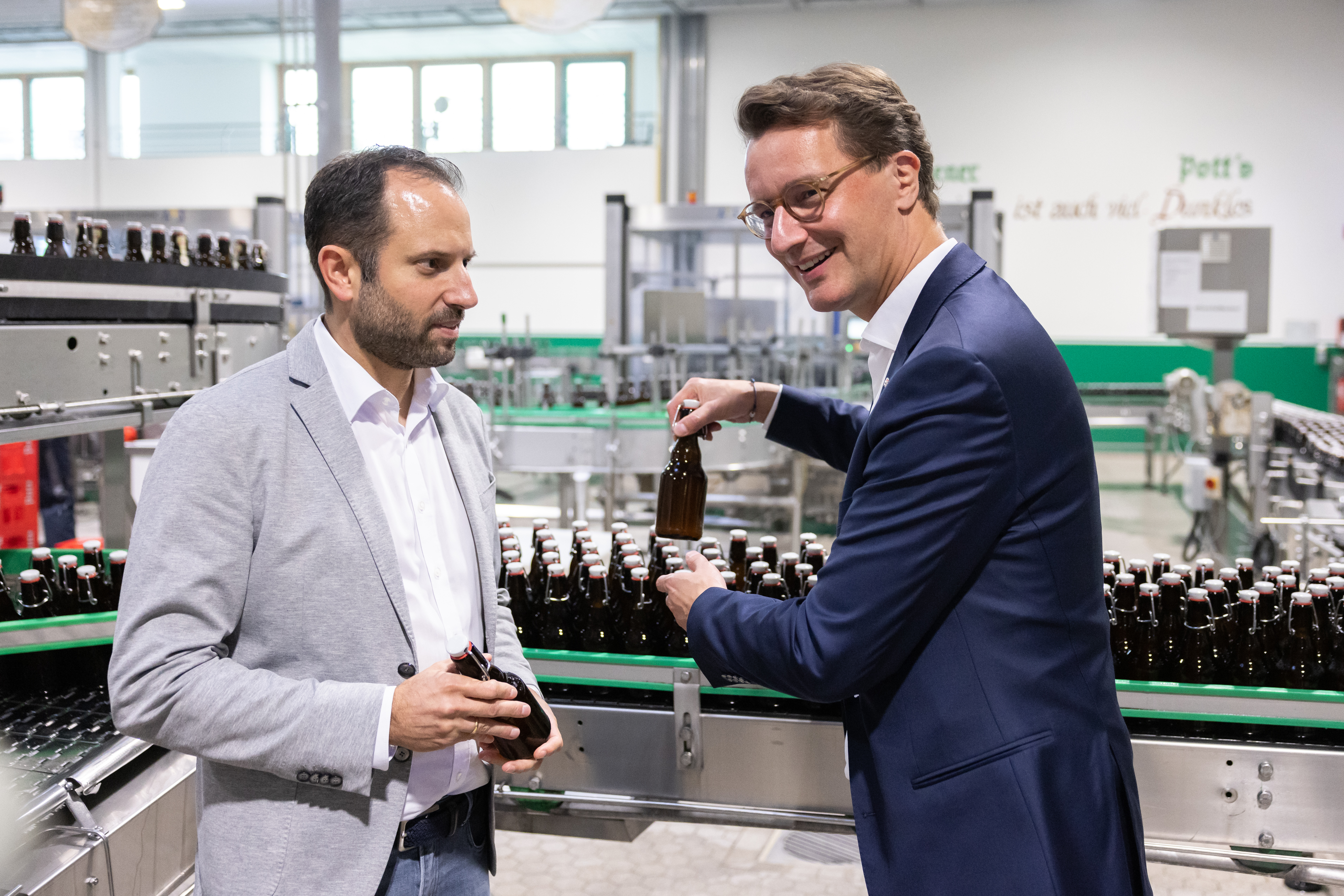 Ministerpräsident Hendrik Wüst besucht die seit 1769 bestehende Pott’s Brauerei in Oelde.