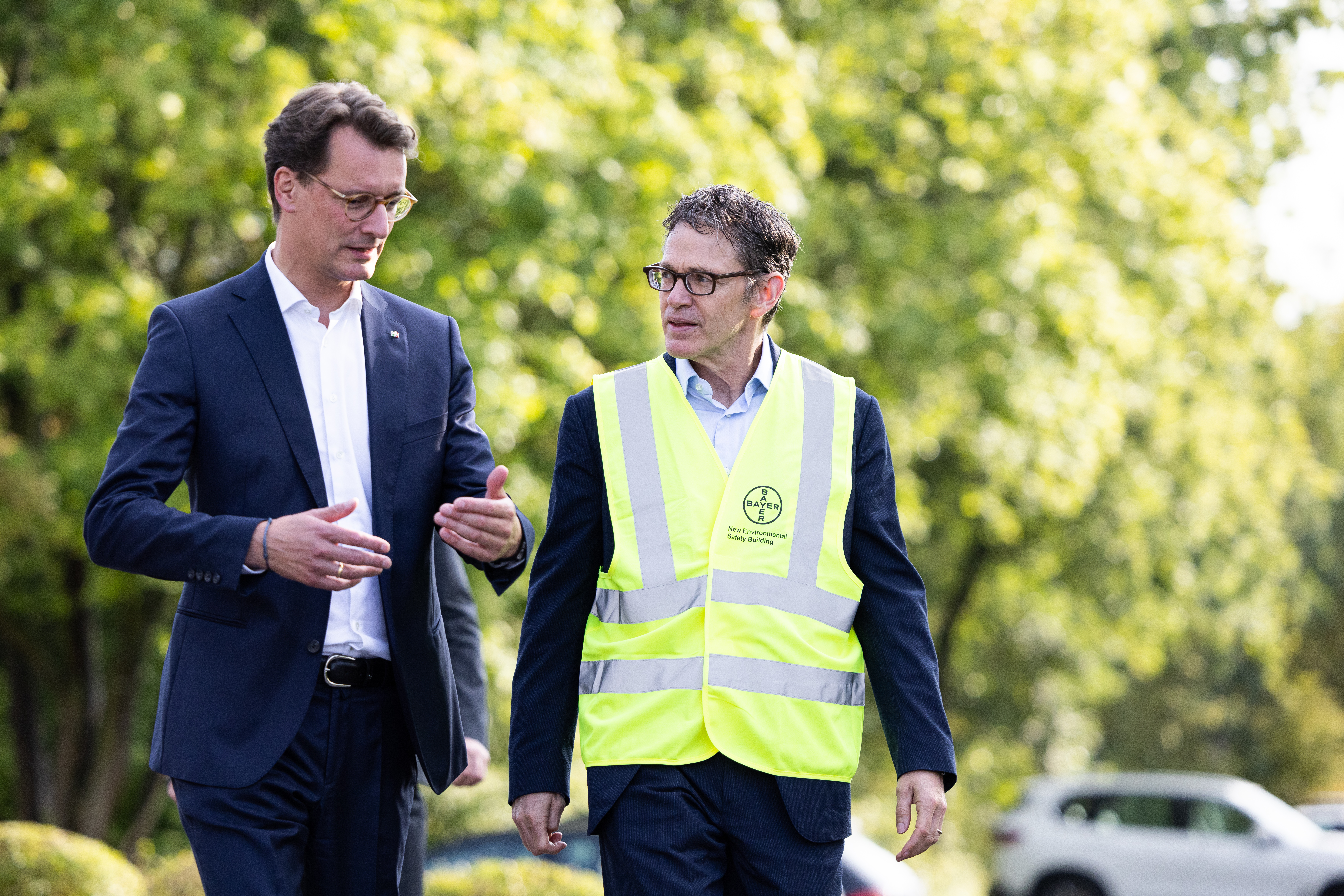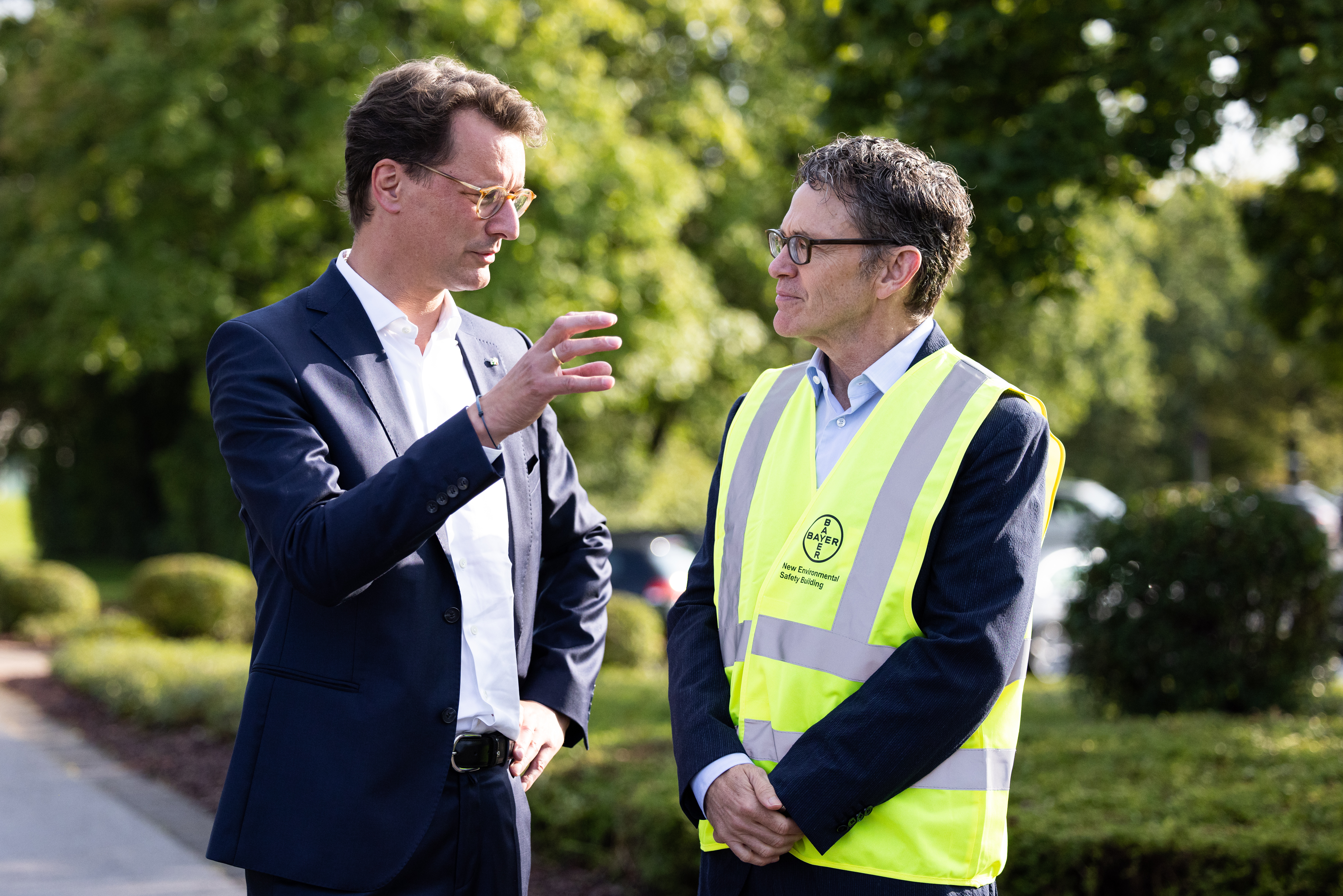 Ministerpräsident Hendrik Wüst besucht Agrarsparte der Bayer AG in Monheim und trifft Bayer-CEO Bill Anderson. In Monheim am Rhein befindet sich der weltweite Sitz der Bayer-Agrarsparte. Das Unternehmen ist Vorreiter bei der Entwicklung von nachhaltigen Pflanzenschutzprodukten. Nun investiert das Unternehmen in ein neues Forschungsgebäude am Standort.