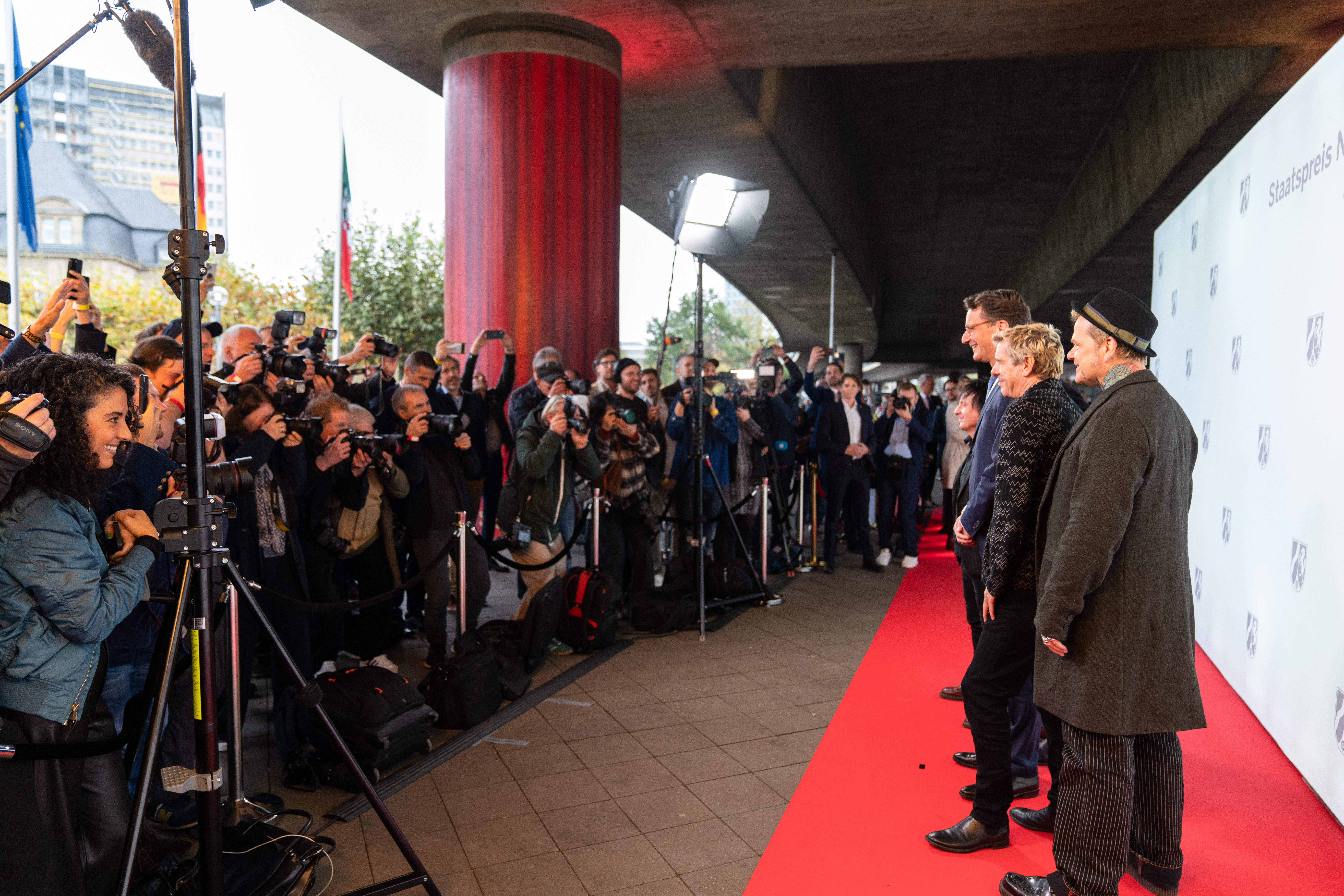 Rund 300 Gäste kamen zur Verleihung des Staatspreises in das Apollo Varieté am Rheinufer in Düsseldorf, darunter viele persönliche Gäste der Toten Hosen. Die Laudatio auf die Preisträger hielt auf Wunsch der Toten Hosen der Düsseldorfer Starregisseur Wim Wenders, der der Band seit vielen Jahren eng verbunden ist. 1999 lernten sich Wenders und Die Toten Hosen bei Dreharbeiten zu einem Musikvideo kennen, daraus entstanden viele weitere Kollaborationen.